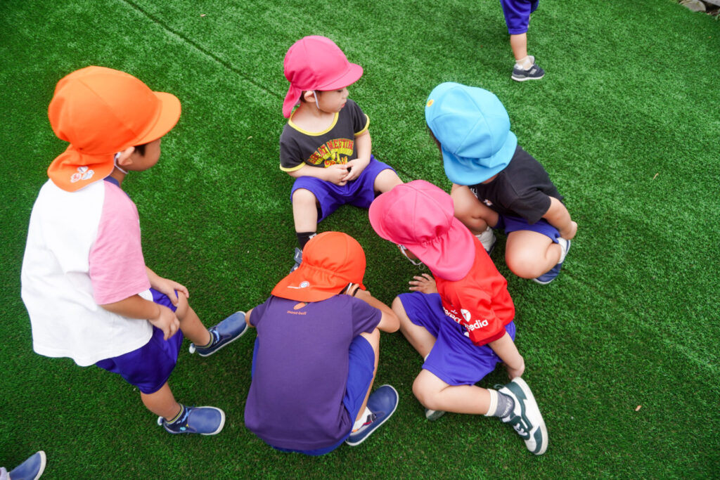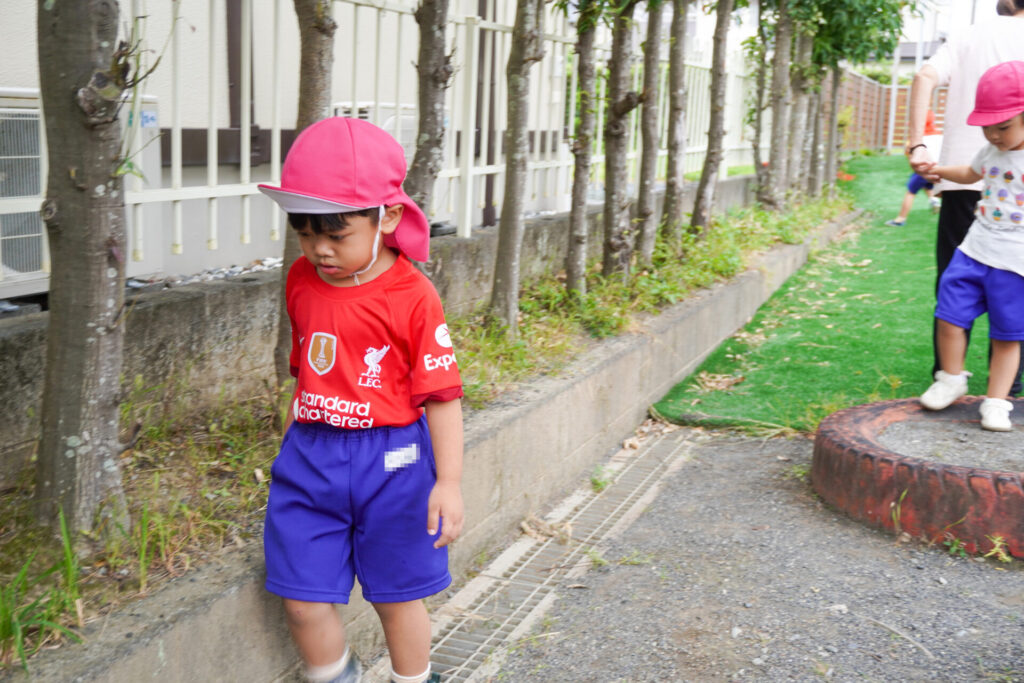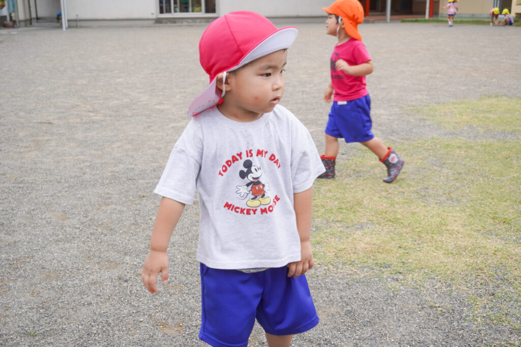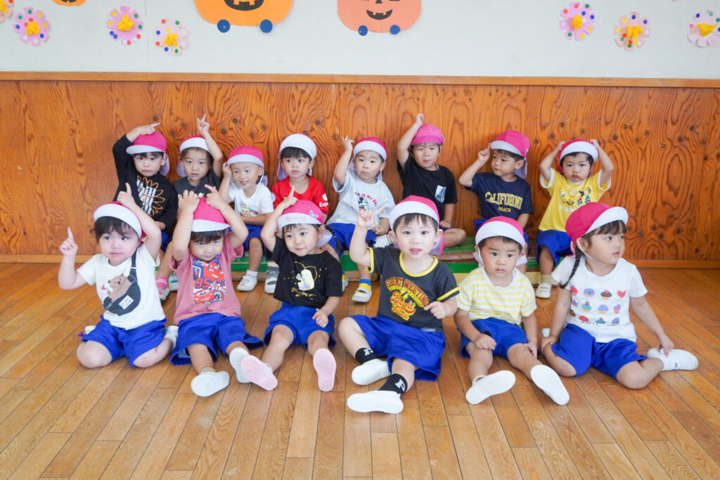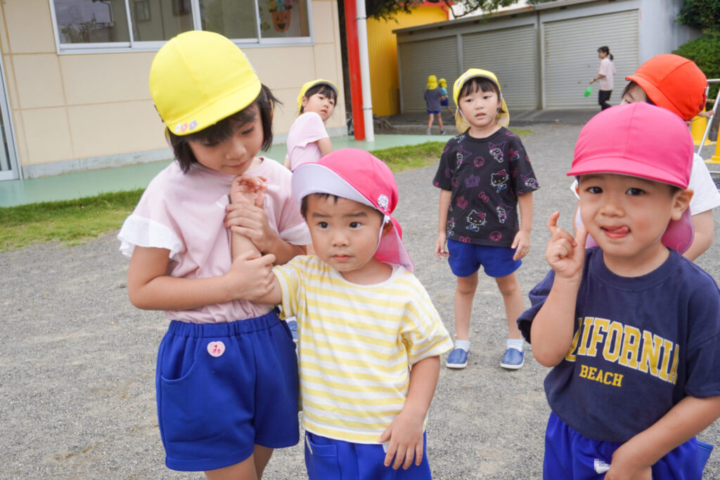 クラス帽子をかぶって戸外でも遊びました。お兄さん・お姉さんが気にかけてくれました。これからのバンビ組での生活が楽しみですね。明日からも元気に登園してくださいね。