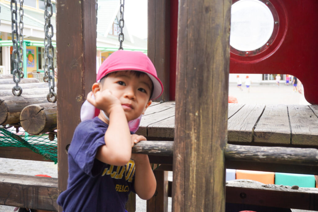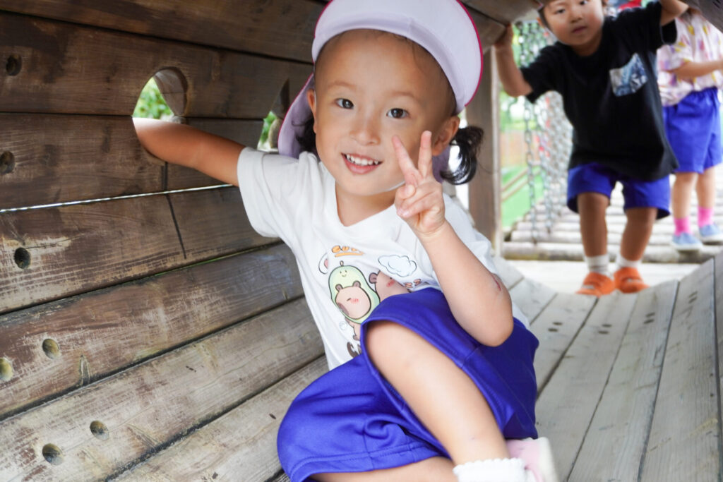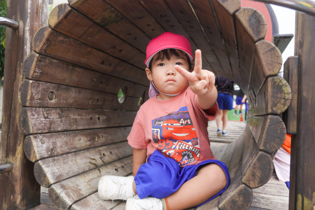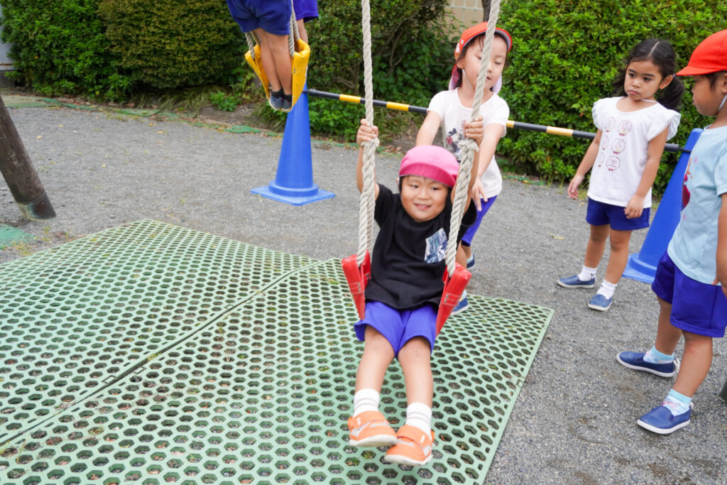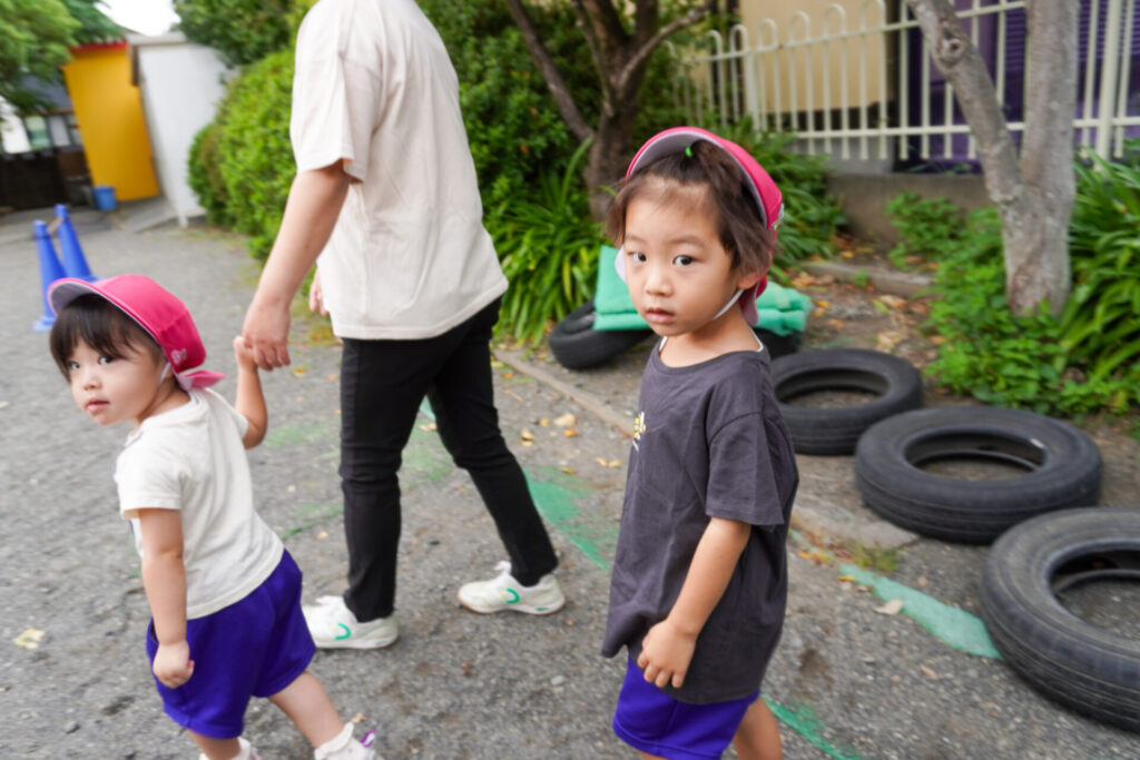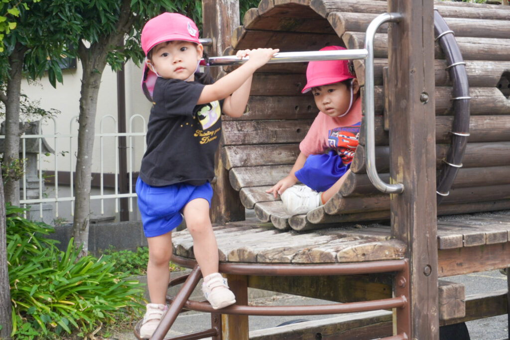 クラス帽子をかぶって戸外でも遊びました。お兄さん・お姉さんが気にかけてくれました。これからのバンビ組での生活が楽しみですね。明日からも元気に登園してくださいね。