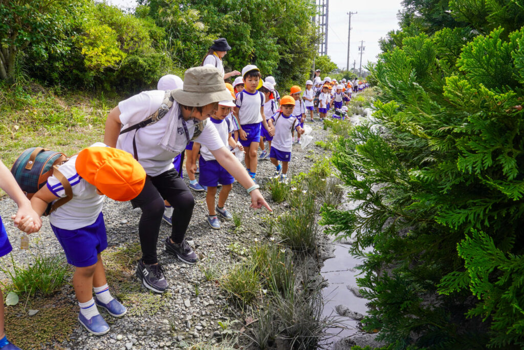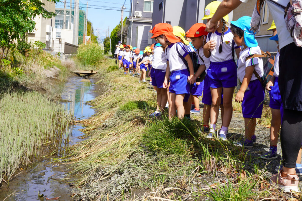また、道中には「カニ」がいっぱい!まどかっこの元気な声を聞いて巣穴から出てきたり、隠れたり…「カニさんもお散歩してるね」「一緒だね」と話も弾みました。来週はいよいよ「大型バス遠足」です!今から楽しみですね。