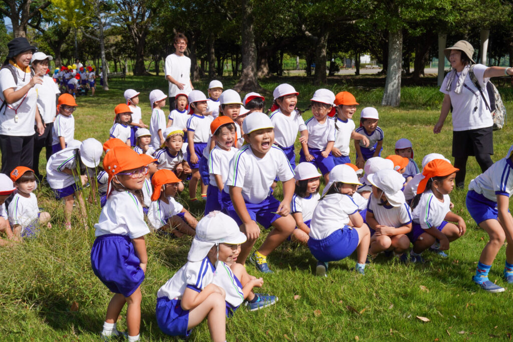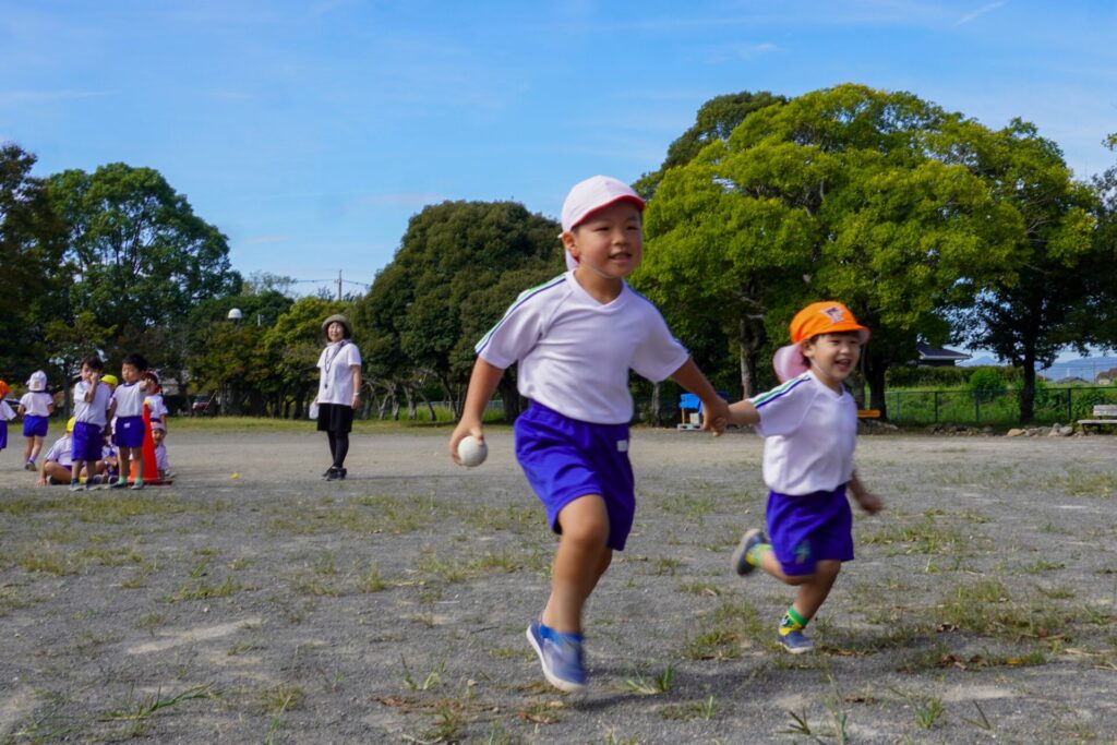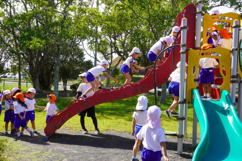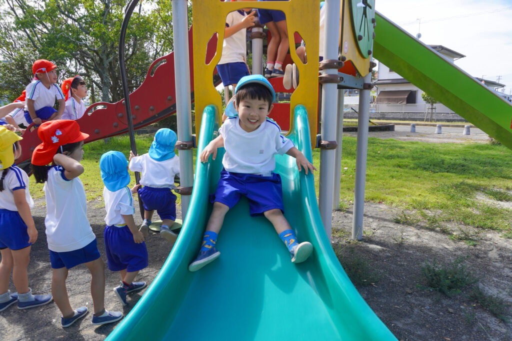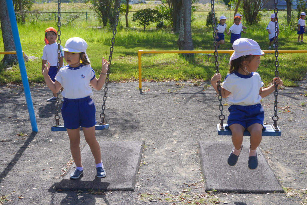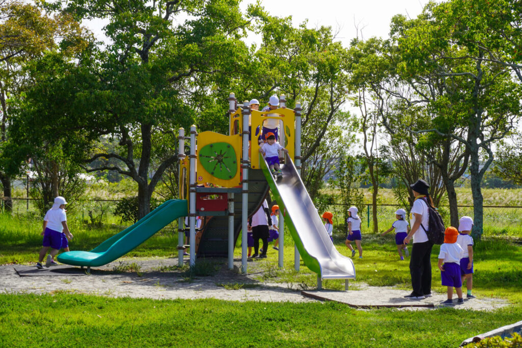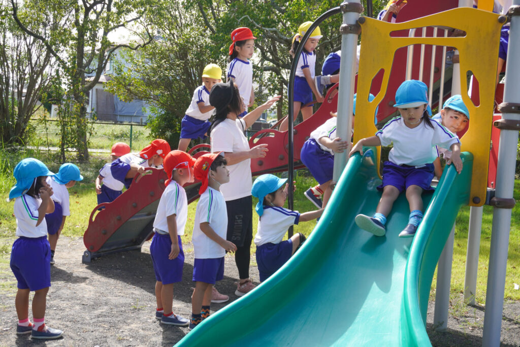 ブランコ、滑り台の遊具で遊んだり、虫探しをしたり、広場ではかけっこ競走や鬼ごっこをしたり、めいっぱい体を動かして遊びました。