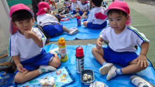 昼食はおうちの方が用意してくれた「おにぎり」を食べました。自分でシートを広げて身支度をして、心地よい風を受けながら「いただきます」をして、食べ始めました。公園で食べる「おにぎり」は格別ですね。