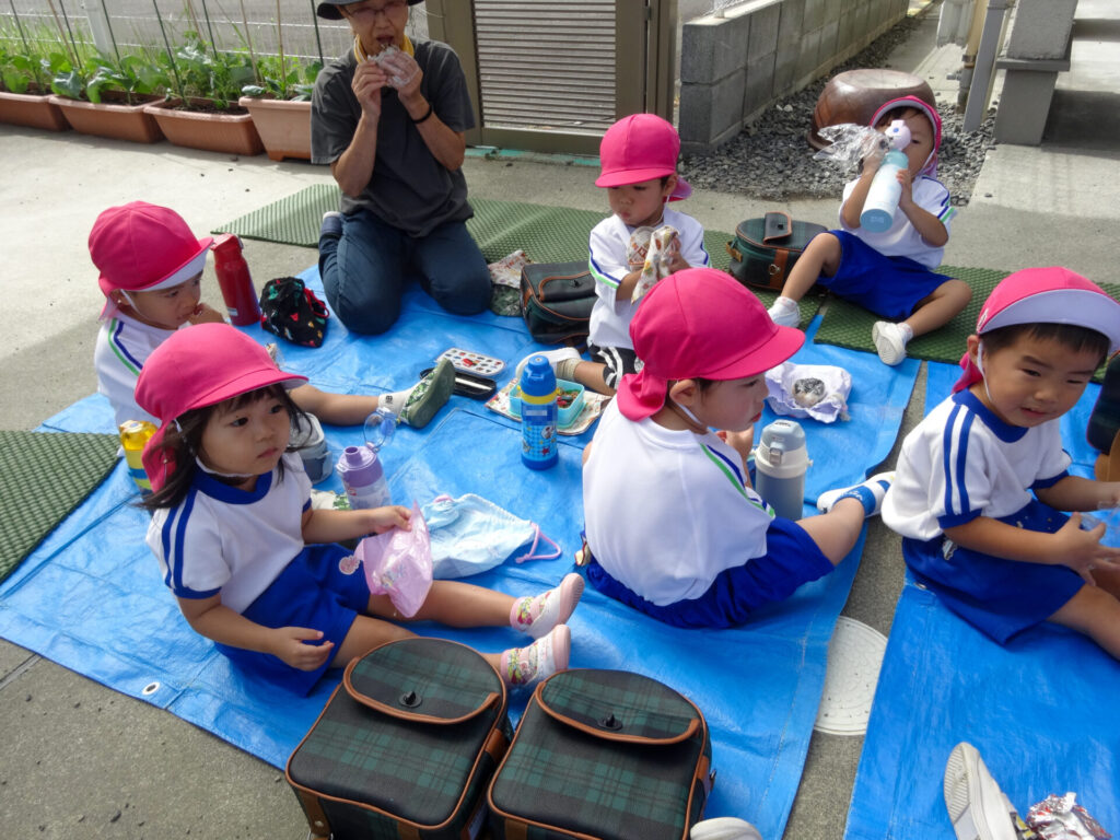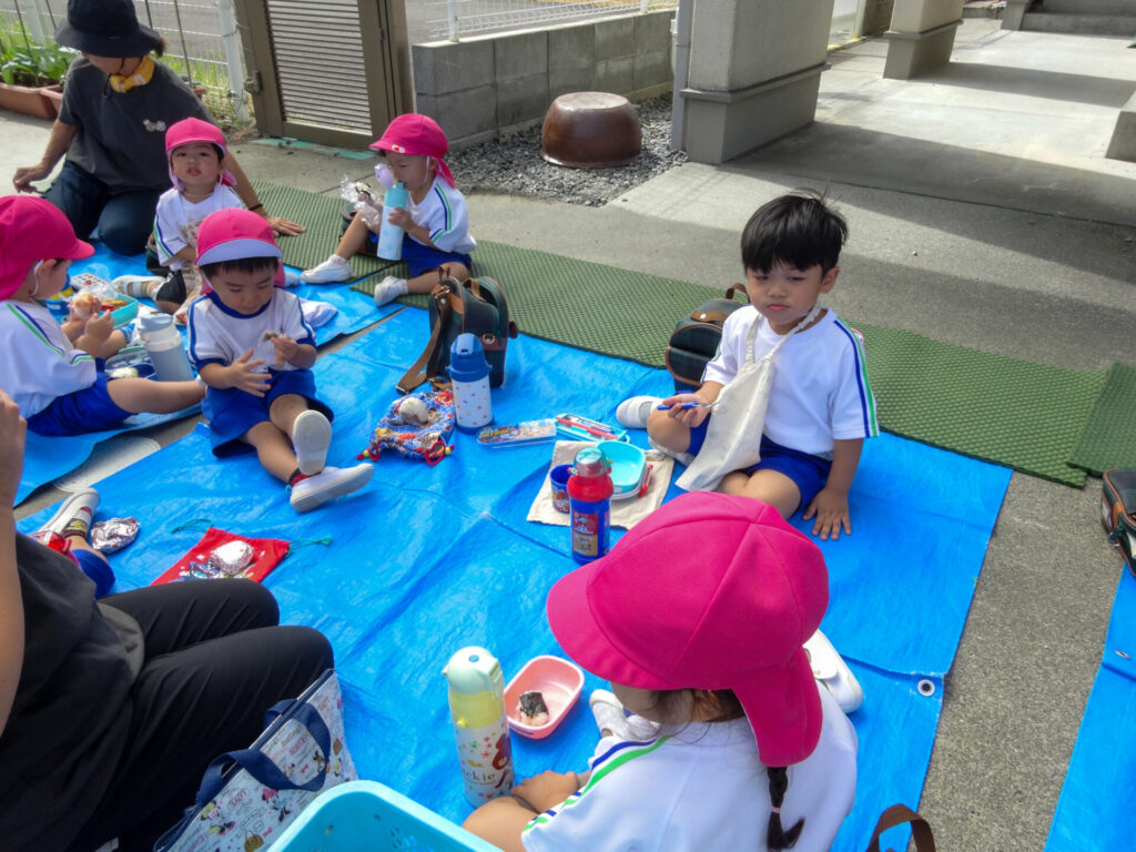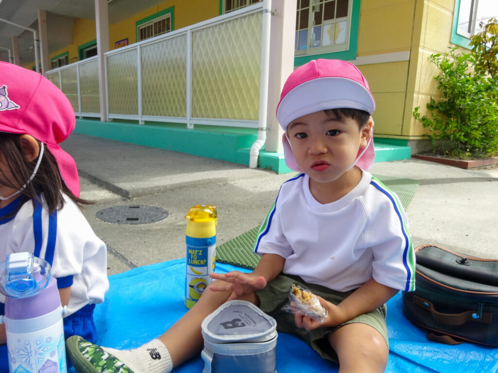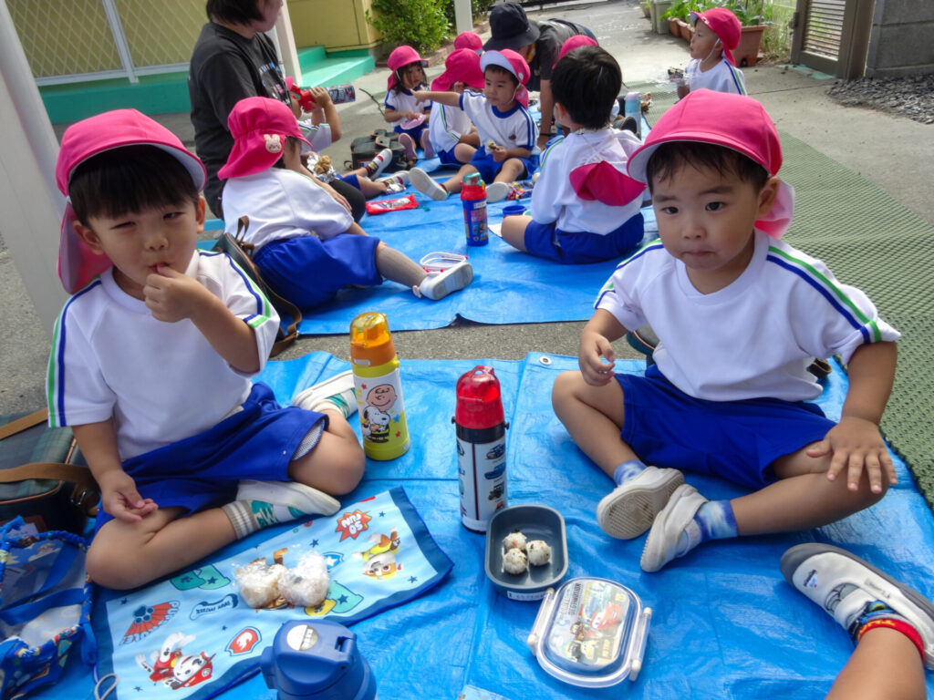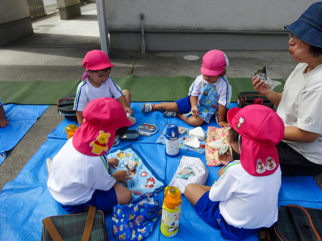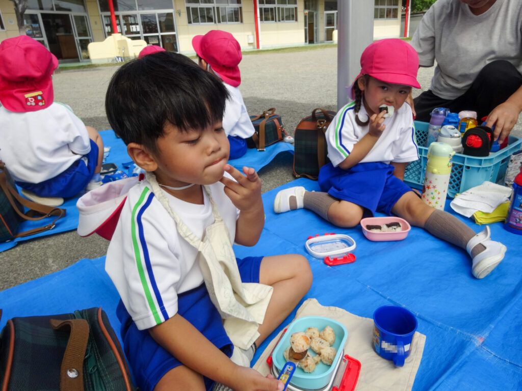 園での様子 ピクニック(満3歳) madokahp 2025年10月8日 幼稚園で一番小さい満3歳バンビ組はお兄さん・お姉さんがハイクに出かけるのを見送った後は、戸外でめいっぱい遊びました。遊具も安全に遊べるようになり、「ブランコ乗りたい!」「山へ行きたい!」と、やりたいことがはっきりとしてきました。 今日はバンビ組さんも「おにぎり」を用意していただきましたので、園庭でシートを広げて食べました。外で食べる「おにぎり」はおいしいですね。 10月入園の新入園児も少しずつ園生活に慣れてきました。明日も幼稚園で元気いっぱい遊びましょうね。