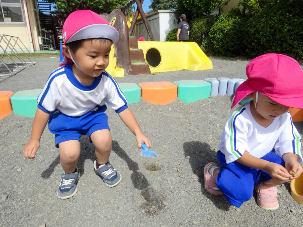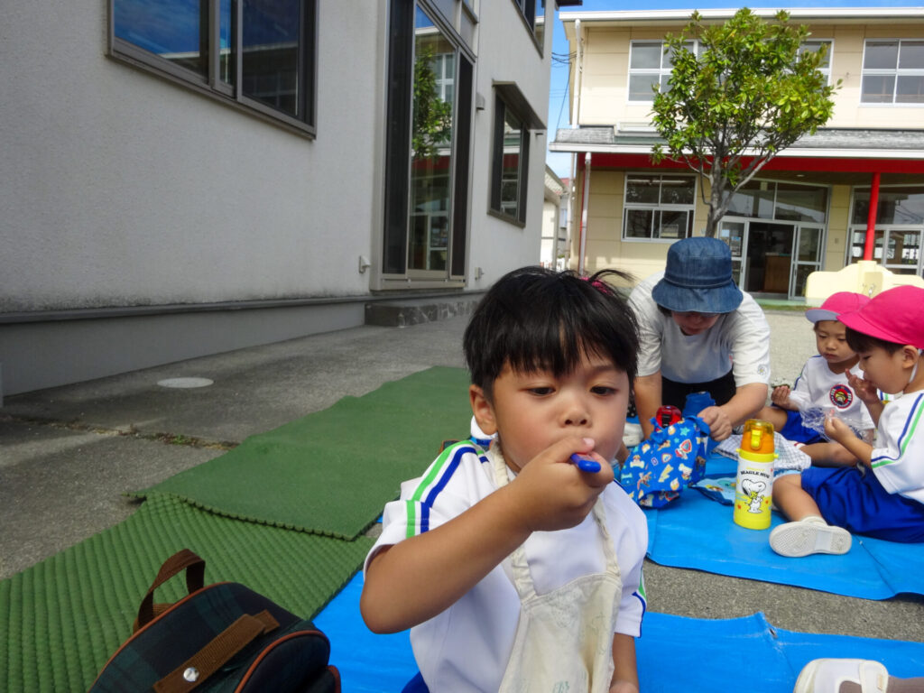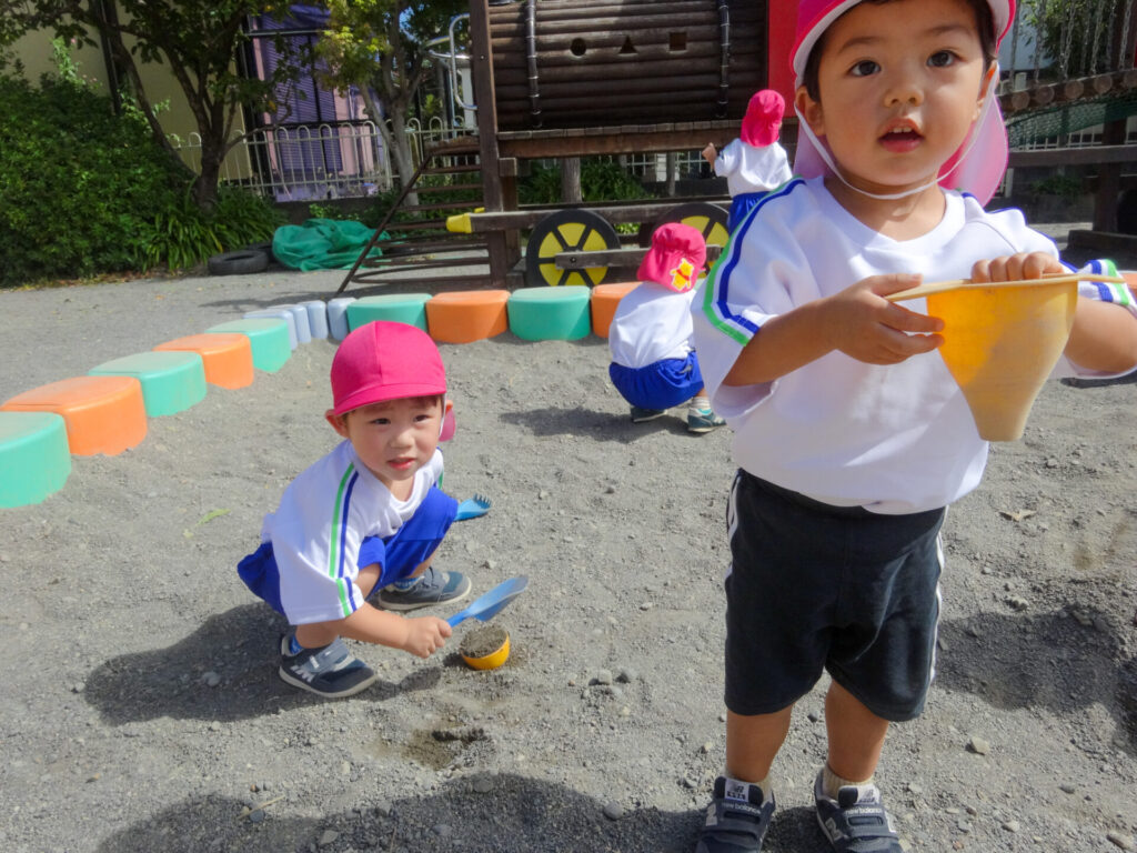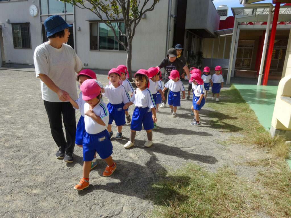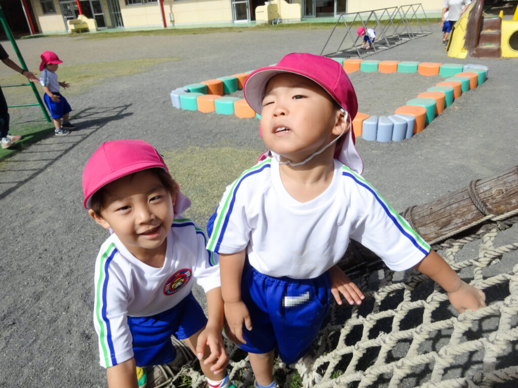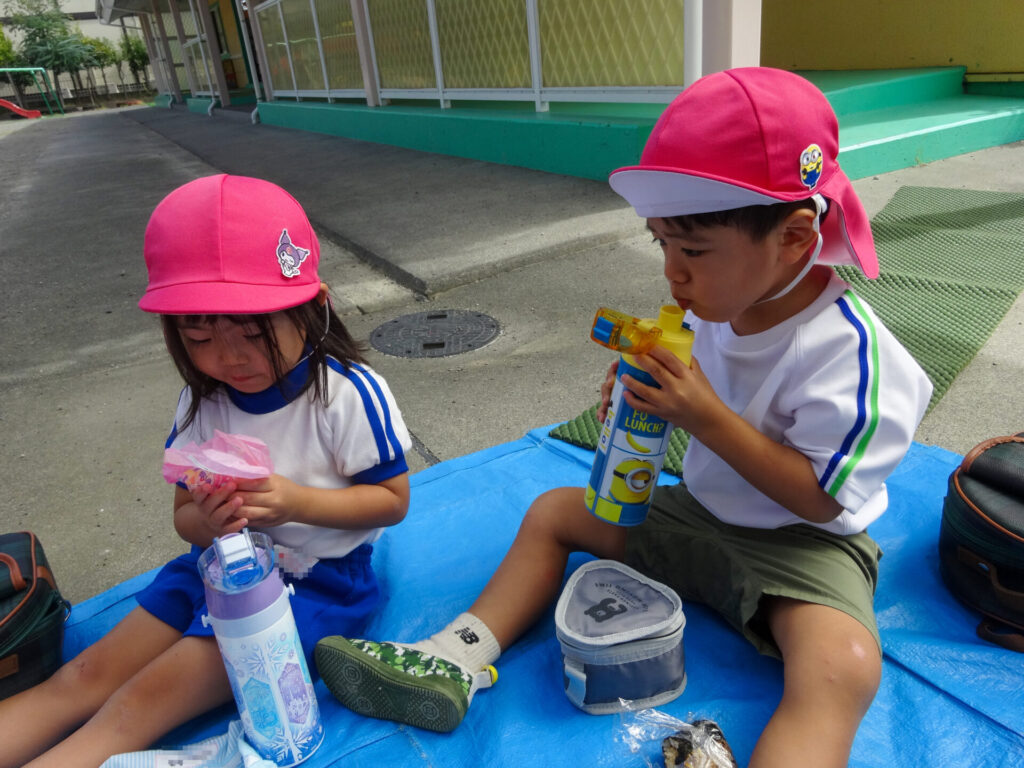 園での様子 ピクニック(満3歳) madokahp 2025年10月8日 幼稚園で一番小さい満3歳バンビ組はお兄さん・お姉さんがハイクに出かけるのを見送った後は、戸外でめいっぱい遊びました。遊具も安全に遊べるようになり、「ブランコ乗りたい!」「山へ行きたい!」と、やりたいことがはっきりとしてきました。 今日はバンビ組さんも「おにぎり」を用意していただきましたので、園庭でシートを広げて食べました。外で食べる「おにぎり」はおいしいですね。 10月入園の新入園児も少しずつ園生活に慣れてきました。明日も幼稚園で元気いっぱい遊びましょうね。