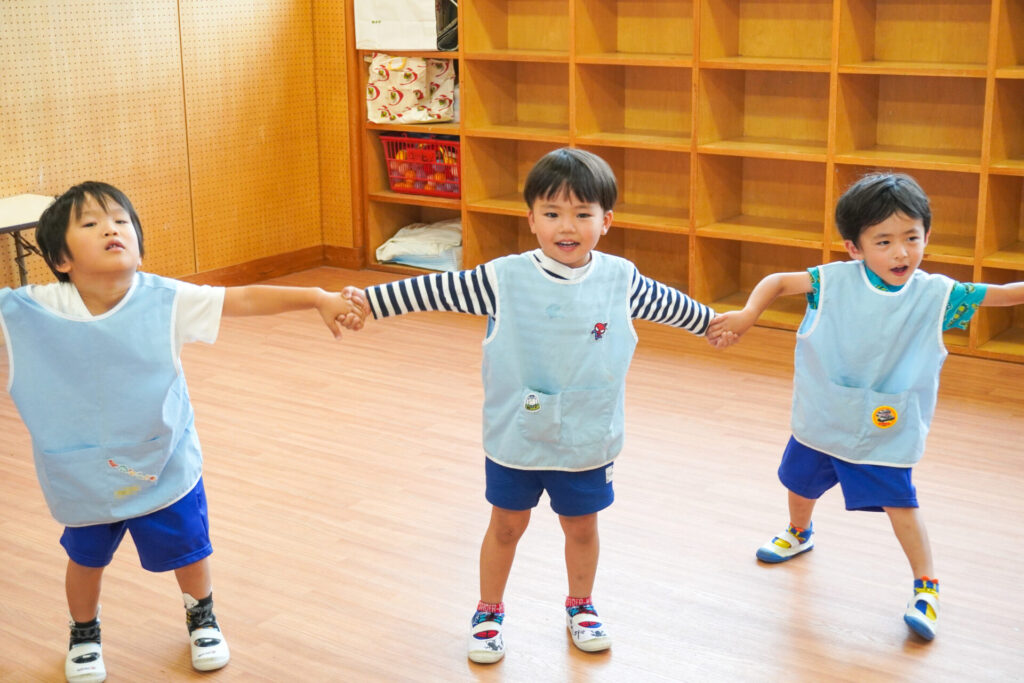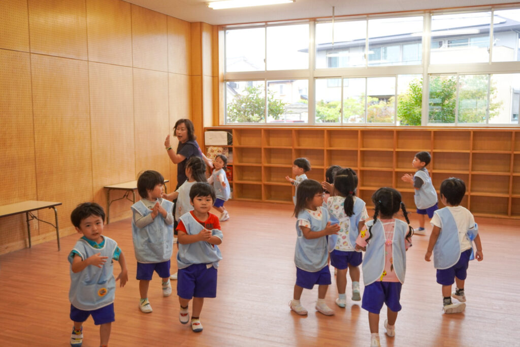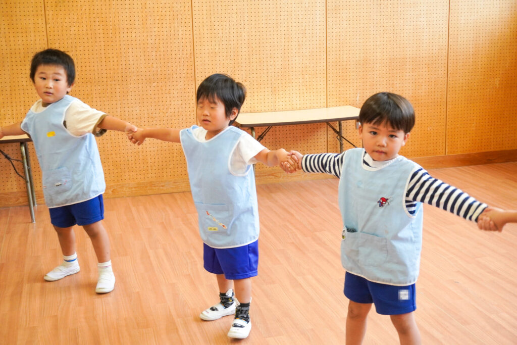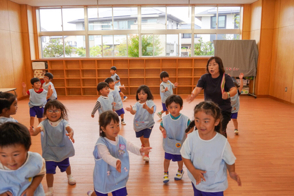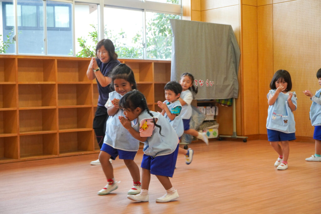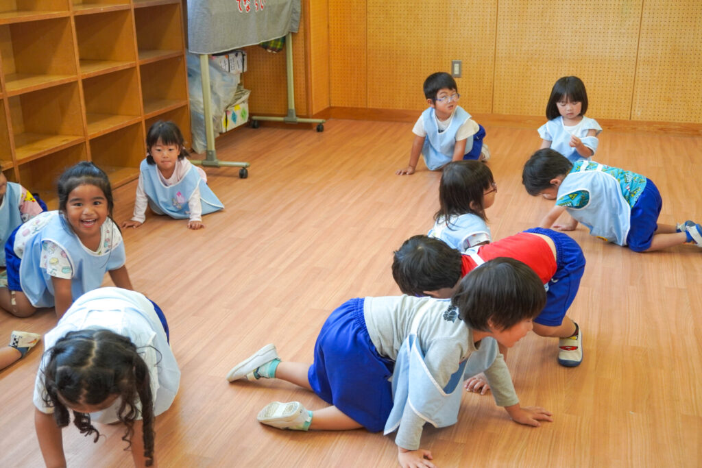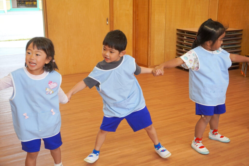 園での様子 表現遊び(ばら組) madokahp 2025年10月10日 年少ばら組が表現遊びをしました。ピアノの音を聞いて、いろいろな動物に変身します。リズミカルに歩いたり、眠たくなったり、のっそり歩いたり、馬のように四つんばいで歩いたり、ちょこちょこ走ったり…みんな違う表現に個性を感じました。 友だちと手をつなぐとひとつの大きな円になります。手をつないで前へ進んだり、下がったり…みんなと一緒に遊ぶと楽しいですね。保育室にばら組の笑顔と元気な声が響き渡りました。 来週はいよいよ「秋の大型バス遠足」です!今から楽しみですね。