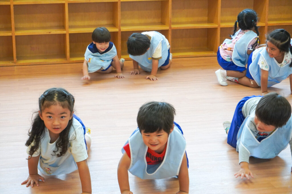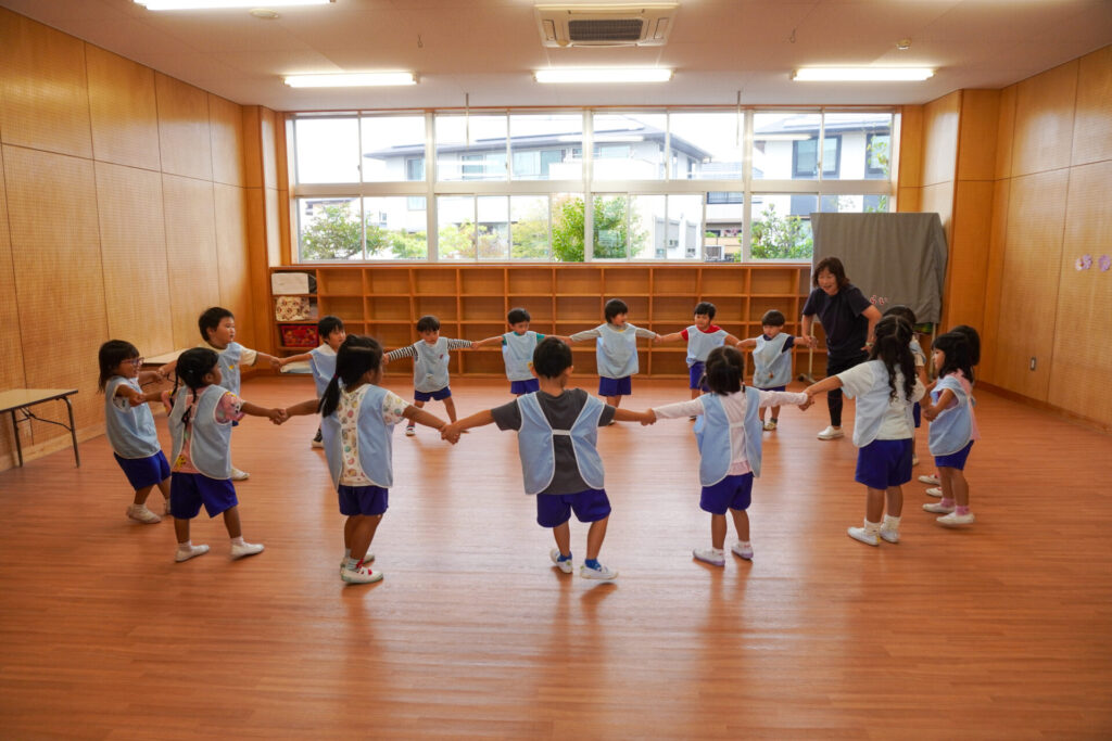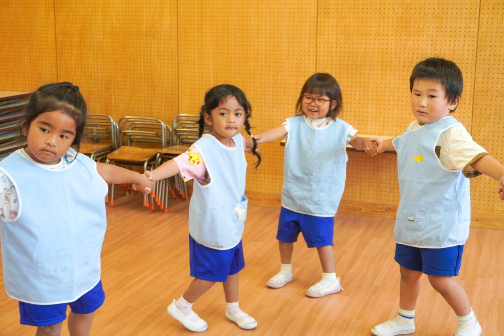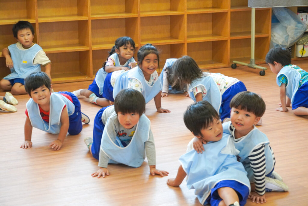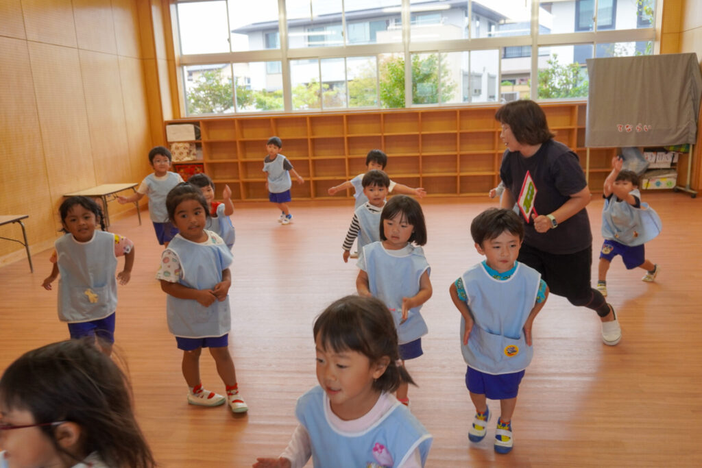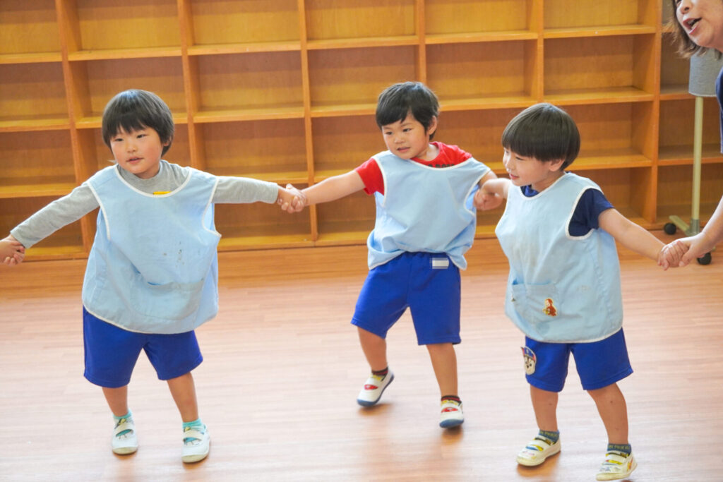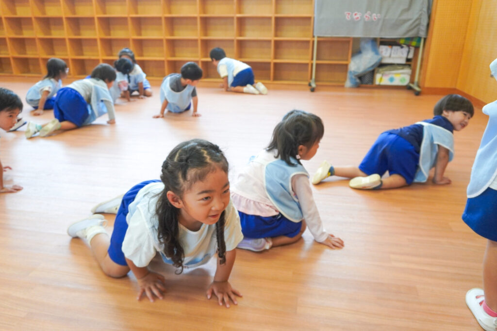 園での様子 表現遊び(ばら組) madokahp 2025年10月10日 年少ばら組が表現遊びをしました。ピアノの音を聞いて、いろいろな動物に変身します。リズミカルに歩いたり、眠たくなったり、のっそり歩いたり、馬のように四つんばいで歩いたり、ちょこちょこ走ったり…みんな違う表現に個性を感じました。 友だちと手をつなぐとひとつの大きな円になります。手をつないで前へ進んだり、下がったり…みんなと一緒に遊ぶと楽しいですね。保育室にばら組の笑顔と元気な声が響き渡りました。 来週はいよいよ「秋の大型バス遠足」です!今から楽しみですね。
