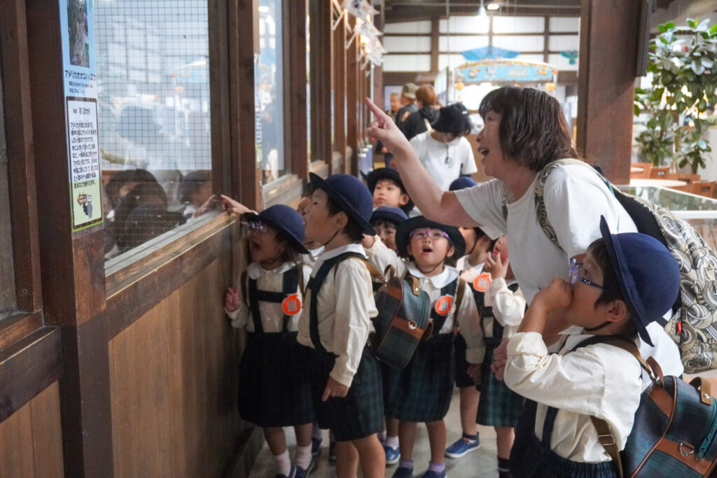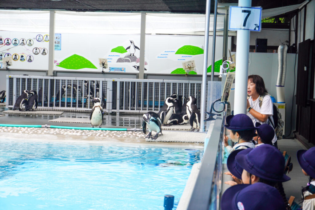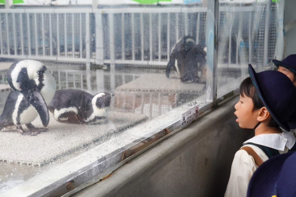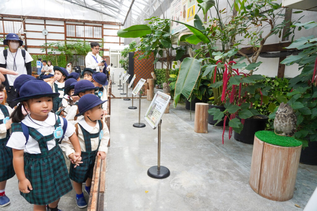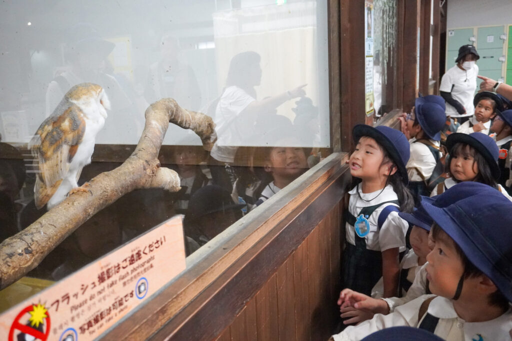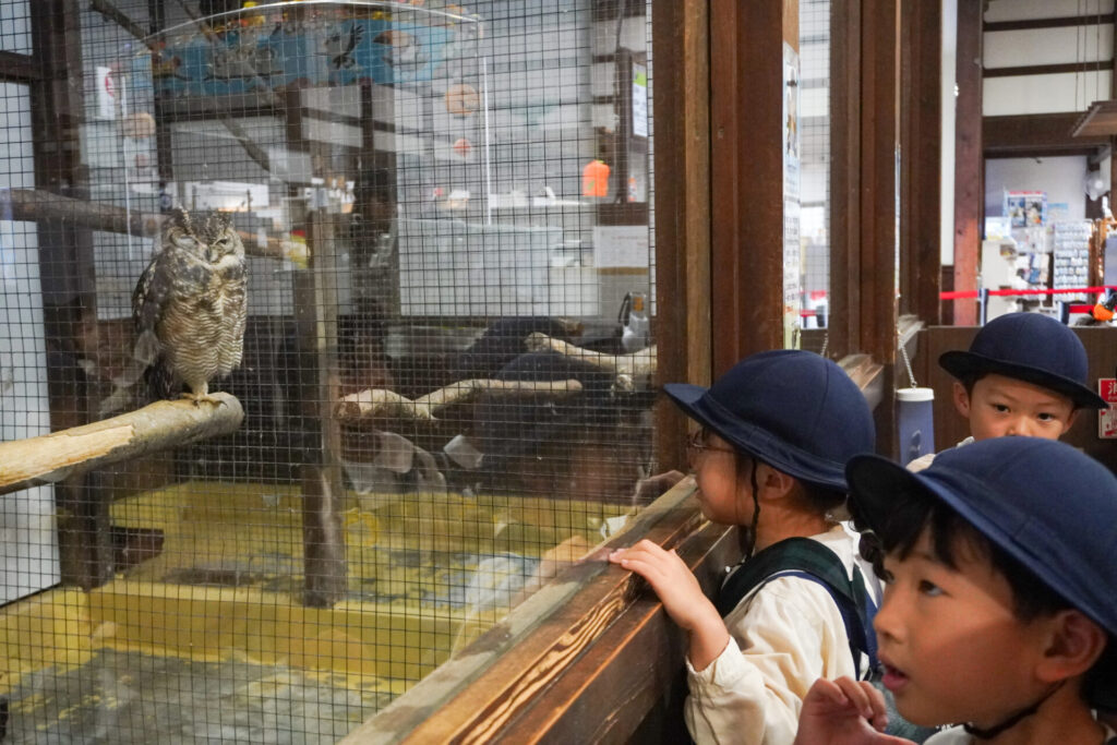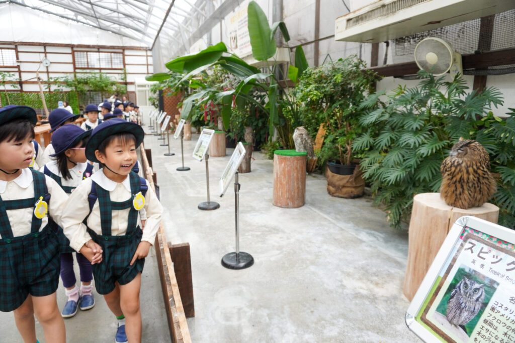 さぁ、いよいよ、花鳥園へ入館です!まず最初に会えたのは「フクロウ」です。じっとして動かない「フクロウ」、キョロキョロしている「フクロウ」…大小様々な「フクロウ」に会えましたね。次に待っていたのは「ペンギン」です。スイスイ気持ちよさそうに泳ぐペンギンに目が釘付けです。「かわいい!」と歓声もあがりました。ずっと見ていられるほど、優雅に泳いでいましたね。