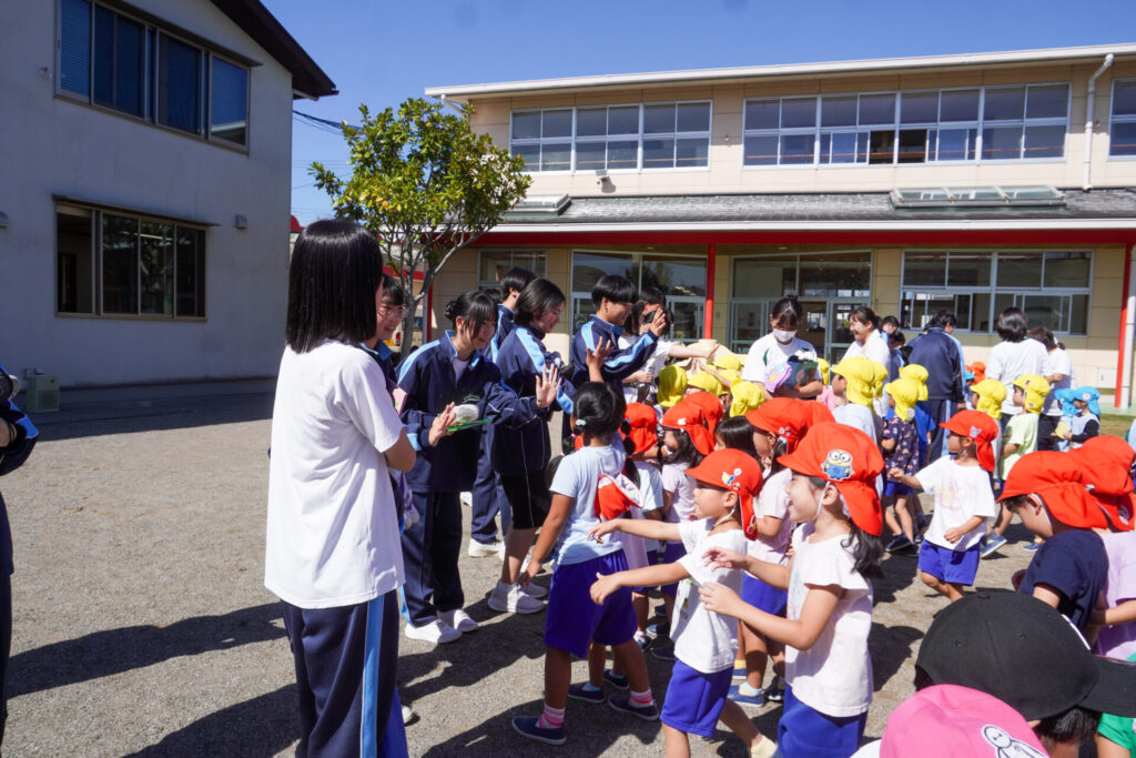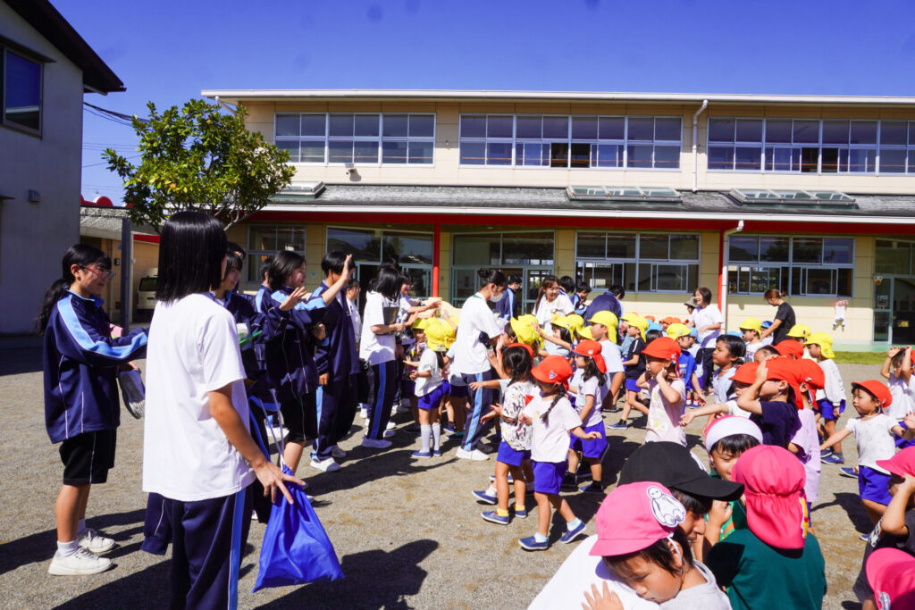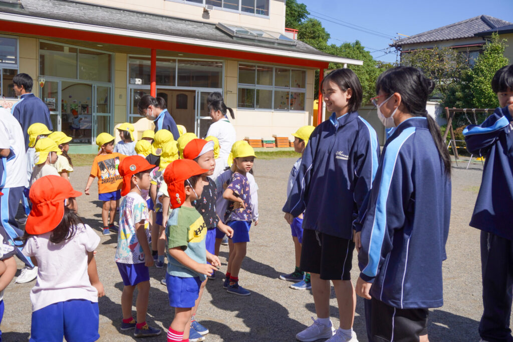また、「トントンひげじいさん」の手遊びを一緒にできて楽しかったですね。卒園生とも久しぶりに再会できて、とても嬉しかったです!またいつでも幼稚園に遊びに来てくださいね。港中学校3年1組の皆さん、ありがとうございました。