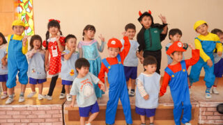 各クラスに分かれて、歌を聞いてもらったり、一緒にダンスを踊ったり、鬼ごっこや相撲対決…お兄さん・お姉さんと一緒にめいっぱい遊んでいただきました。