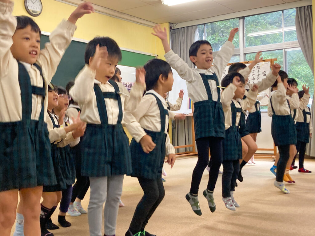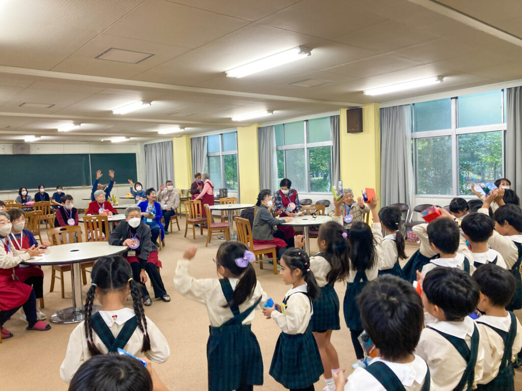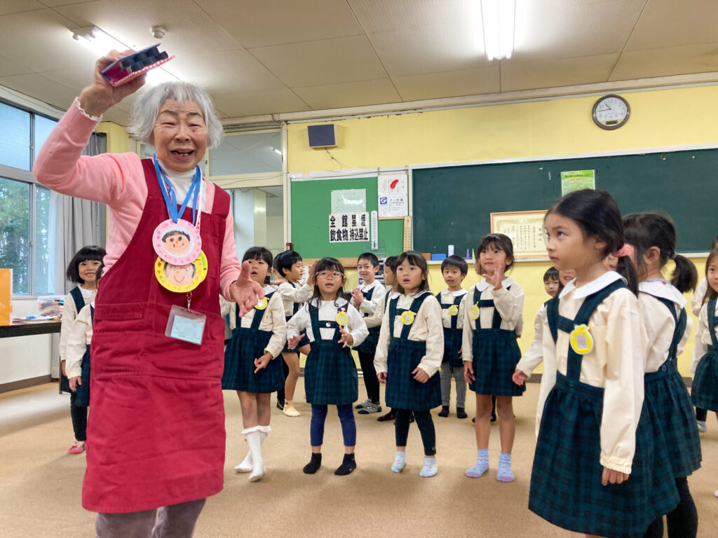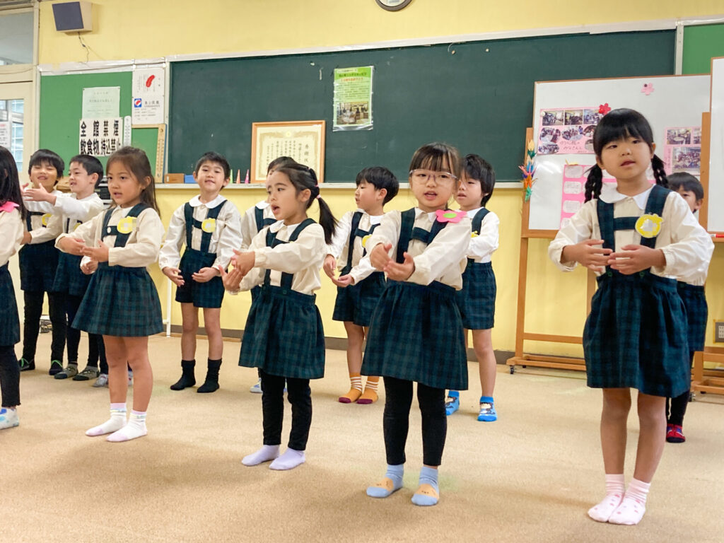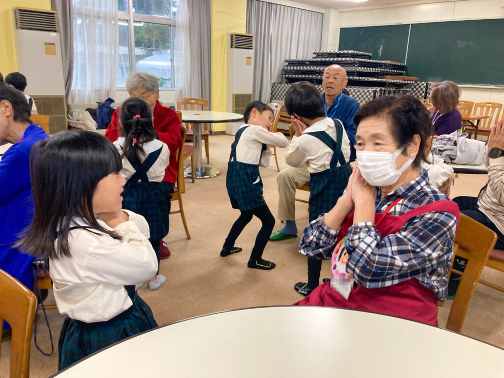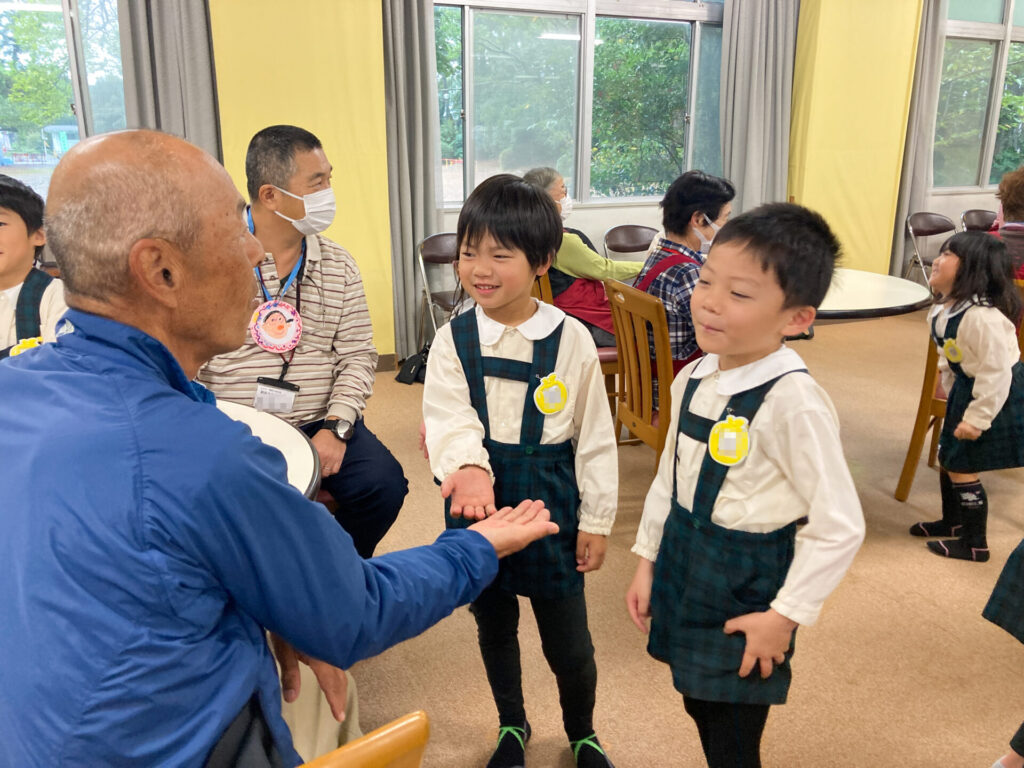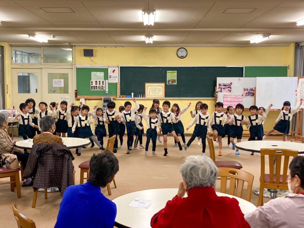 地域の方々の方々の前で「ジャンボリーミッキー」のダンスを踊ったり、歌を発表しました。「とんぼのめがね」や「どんぐりころころ」、「大きな栗の木の下で」等の童謡を発表した時、一緒に歌っていただき、とても嬉しかったですね。