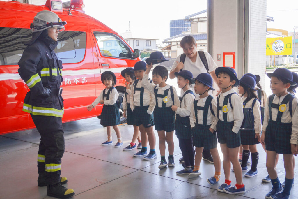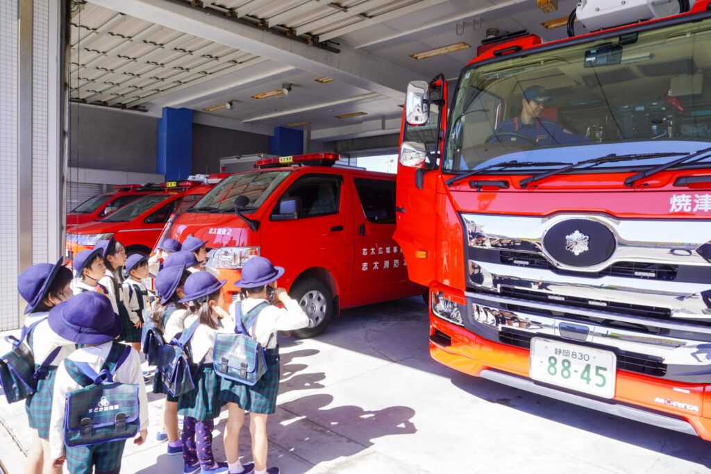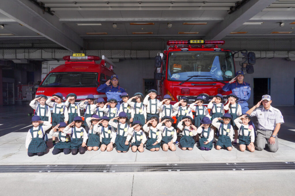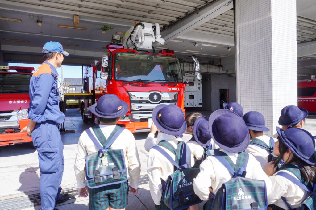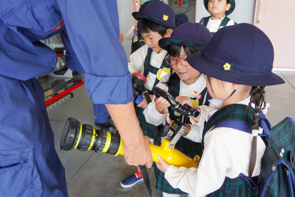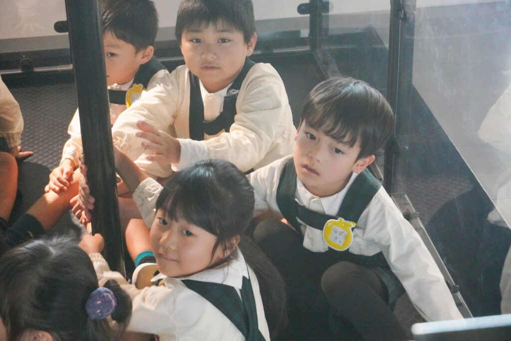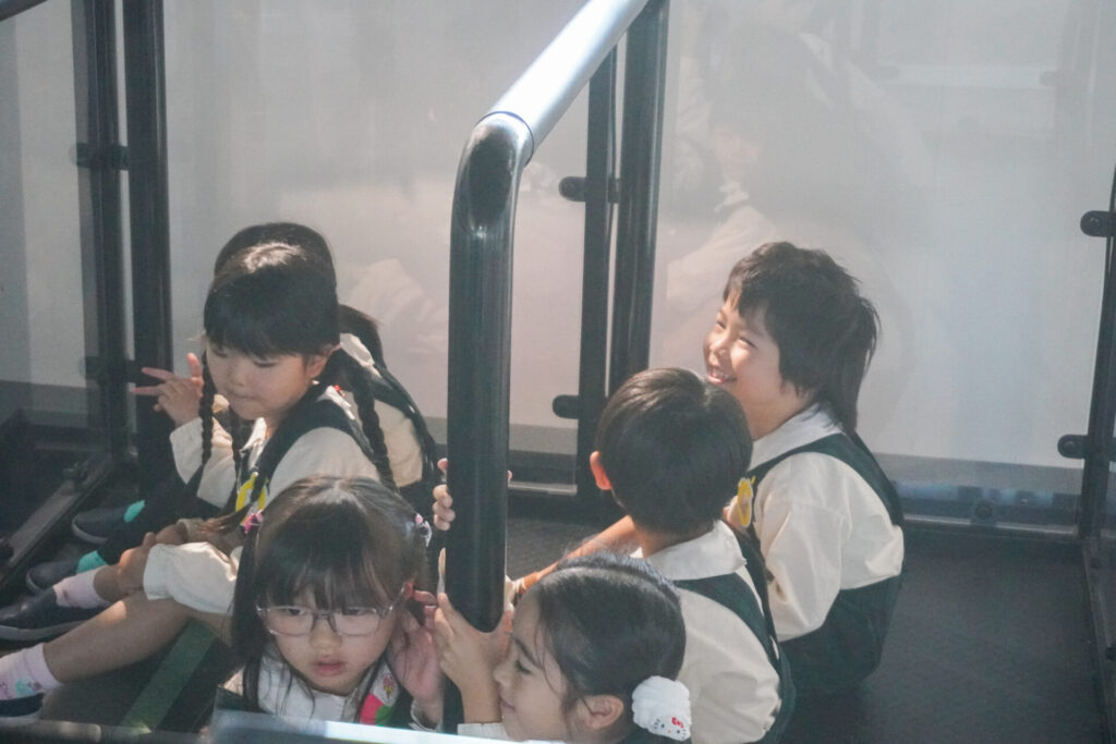 年長つき組がスクールバスに乗って「消防防災センター」へ防災体験へ出かけました。