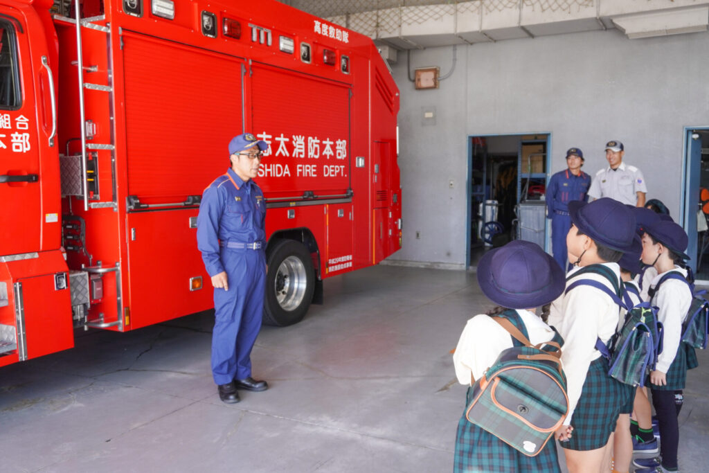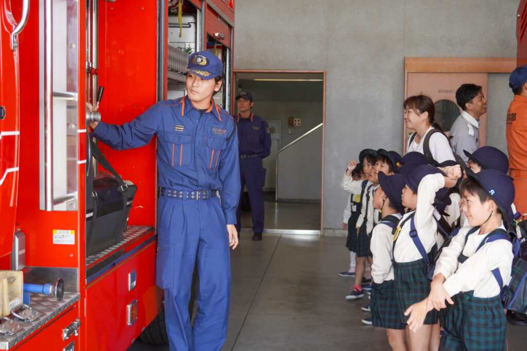また、今日は特別に隊員が1分で早着替えするところも見せていただきました。「これは何?」と質問もでき、またひとつ学ぶことができました。