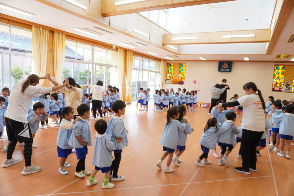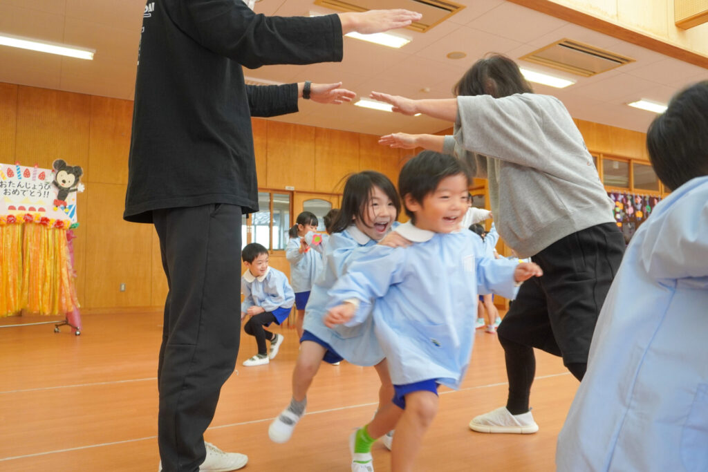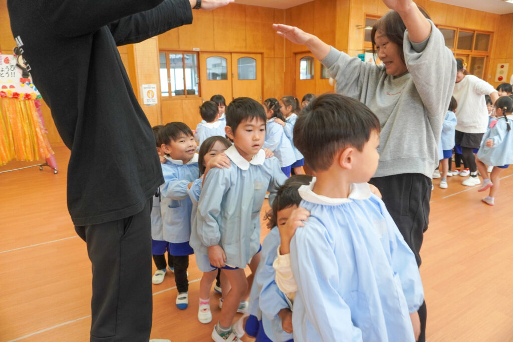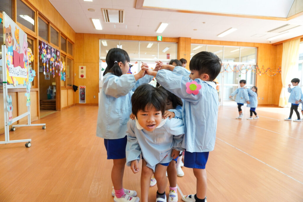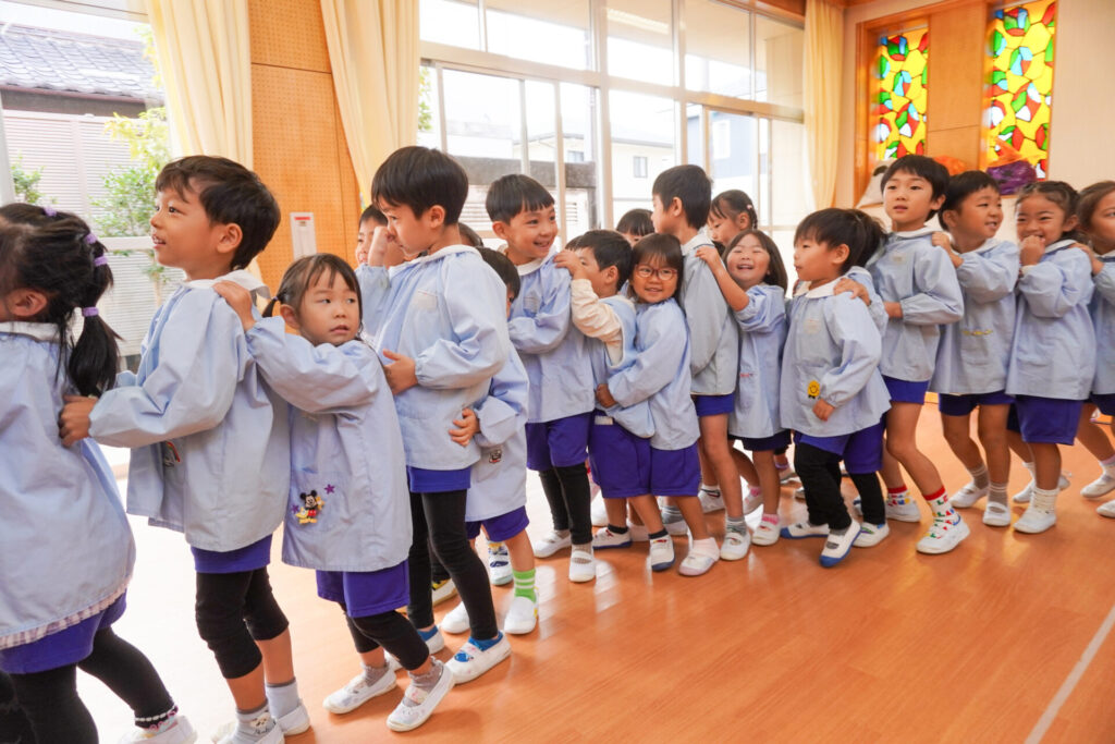 園での様子 楽しいね! madokahp 2025年10月29日 まどかっこは戸外遊びが大好きです!今日も元気よく戸外へ飛び出していきました。異年齢のかかわりも微笑ましく、小さい子のお世話がすっかり上手になりました。 ホールでは温かい「ふれあい」です。電車ごっこでは、まどかっこが電車になって、安全運転です。ただし、踏切に要注意!踏切が鳴るとドキドキします。速度を速めて、さぁ加速…捕まっても、捕まらくても、みんな笑顔いっぱいです! 一緒に遊ぶと楽しいですね。明日も幼稚園で元気いっぱい遊びましょうね。