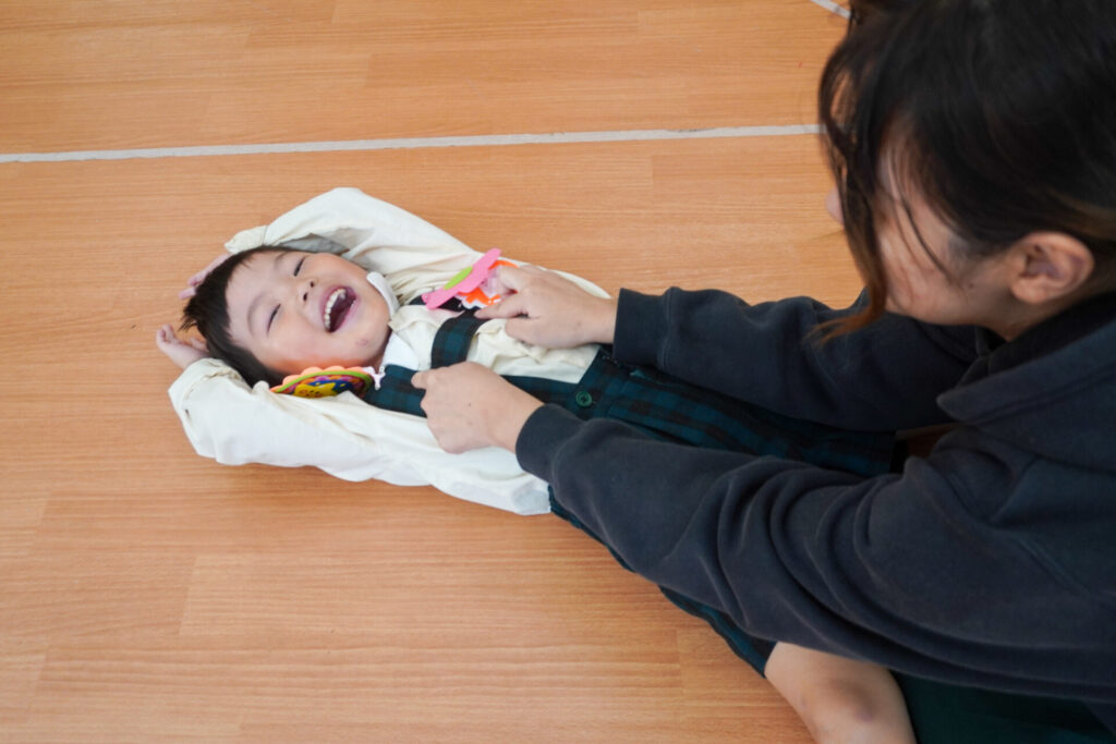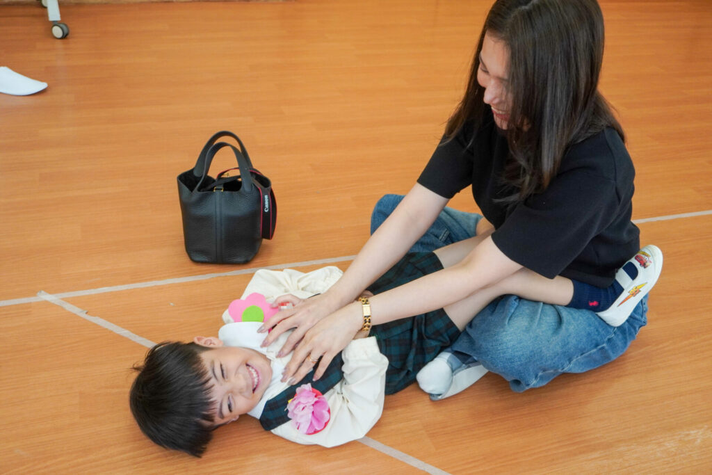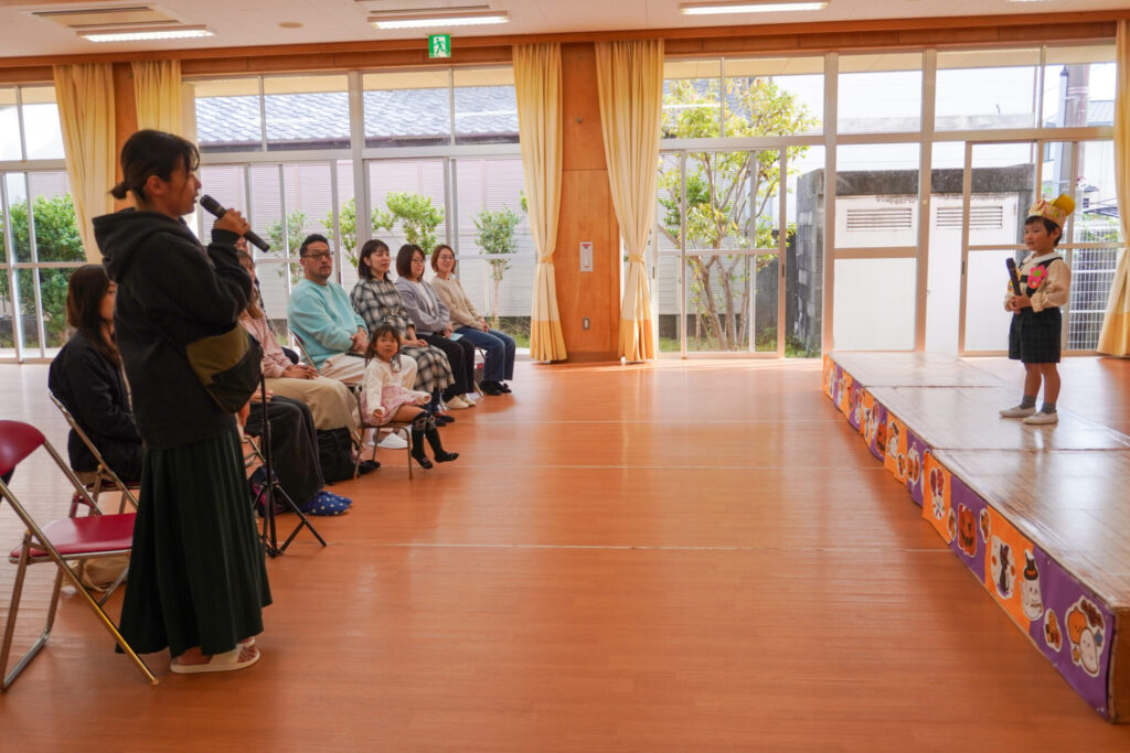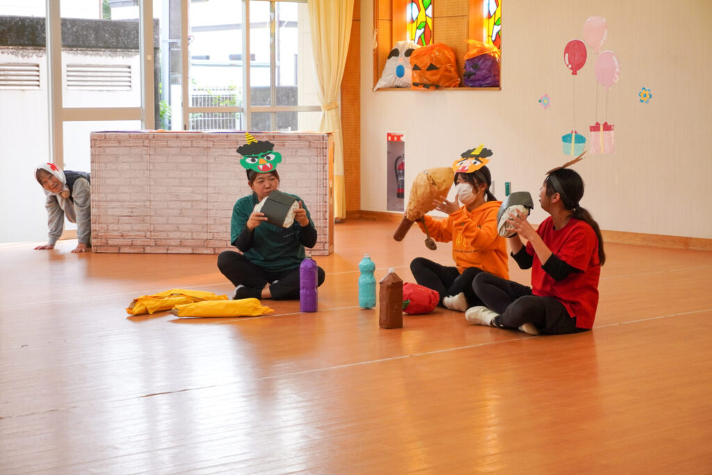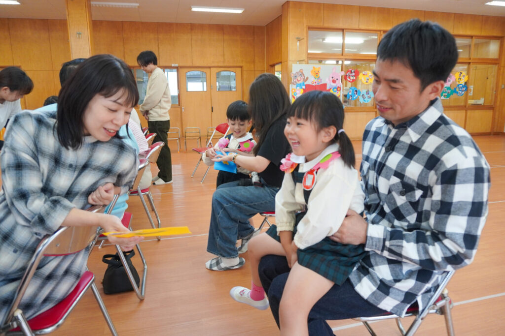 親子でのふれあい遊びでは、「くすぐったい!」と言いながらも笑顔いっぱいです。恒例の今年の職員劇は「こぶとりじいさん」です!誕生児は夢中で見ていて、演じる側もより、力が入りました。時折、笑顔も見られましたね。