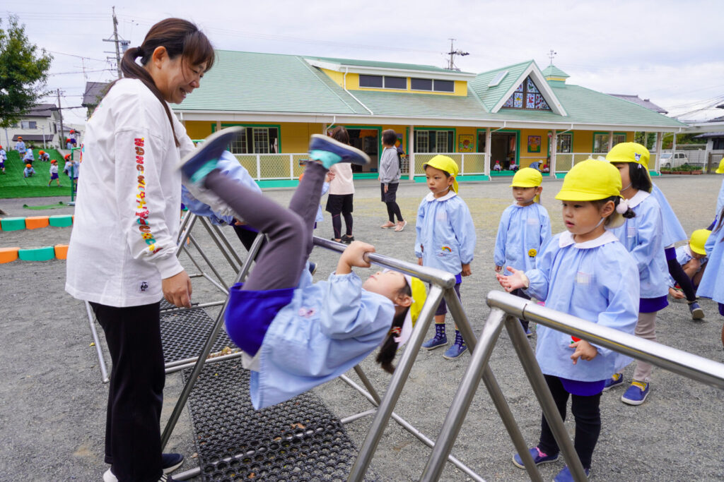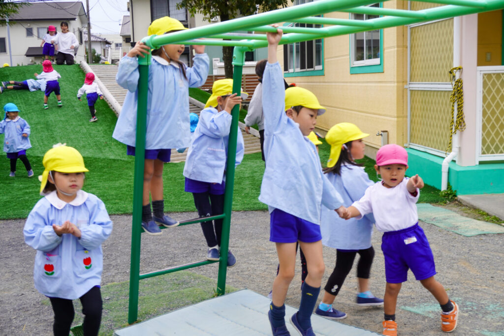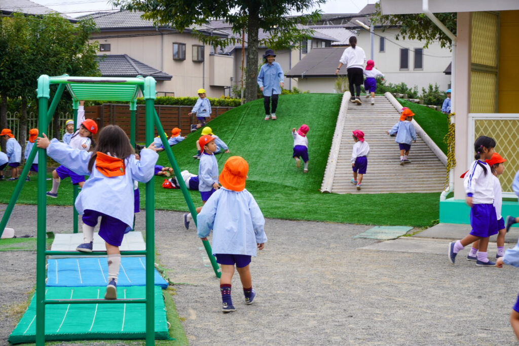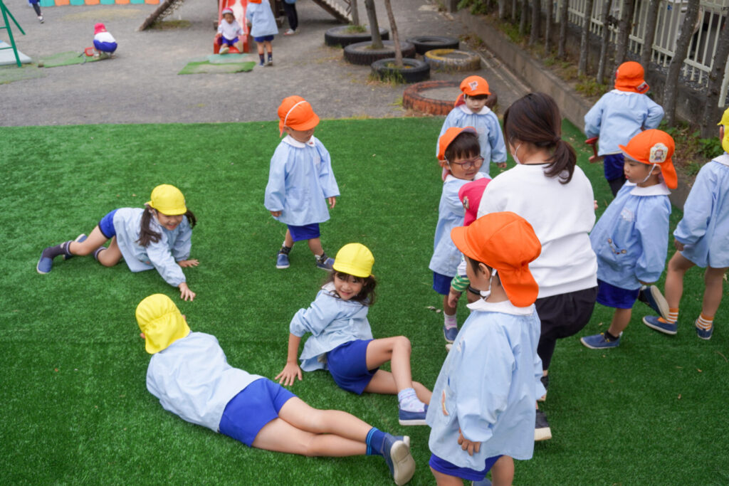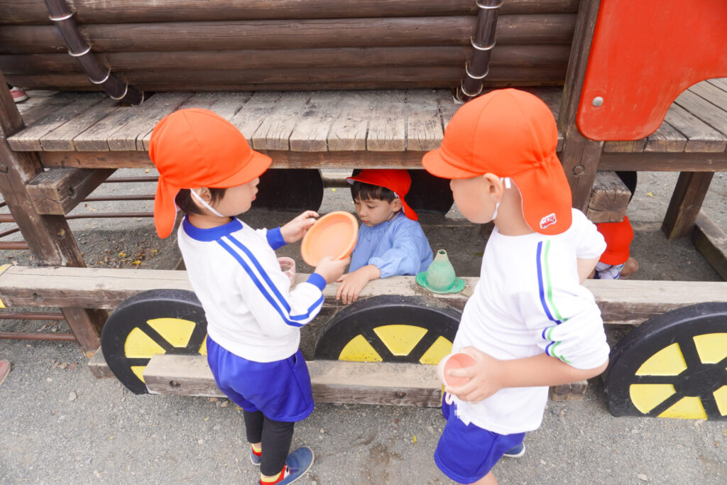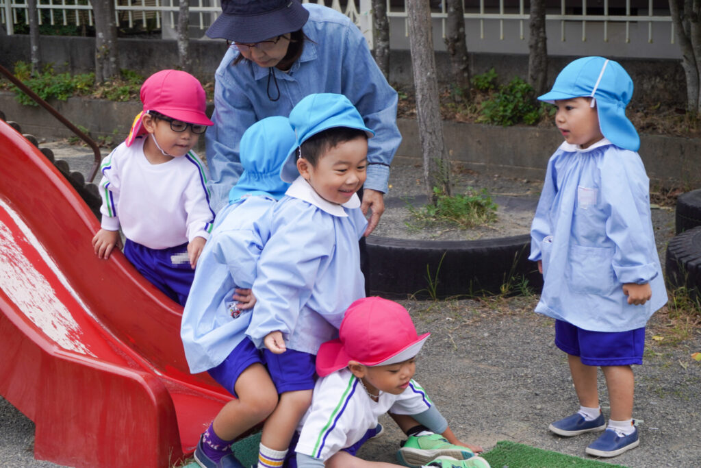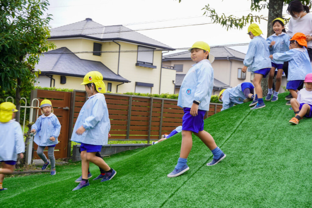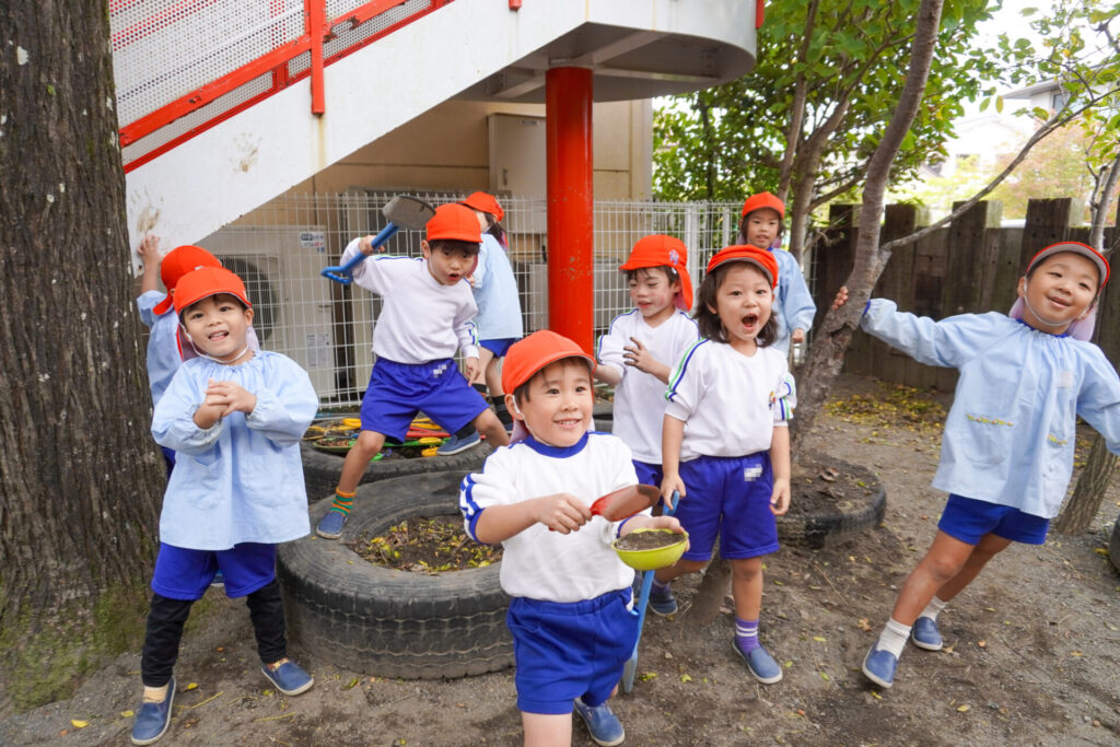 園での様子 戸外遊び madokahp 2025年10月31日 まどかっこは戸外遊びが大好きです!築山ではゴロゴロ転がったり、滑り台を何回も滑ったり、お料理ごっこ…会話も弾み、笑顔いっぱいです! 友だちとのかかわりも増えてきて、「一緒に遊ぼう」「いいよ」というやり取りもよく聞かれます。小さい子のお世話も上手になってきて、ブランコを押してあげたり、手を添えてあげたり、微笑ましいです。 明日から11月…来週は「焼き芋の会」を予定しています。「食欲の秋」です。おいしい「焼き芋」を食べましょう!来週も幼稚園で元気いっぱい遊びましょうね。