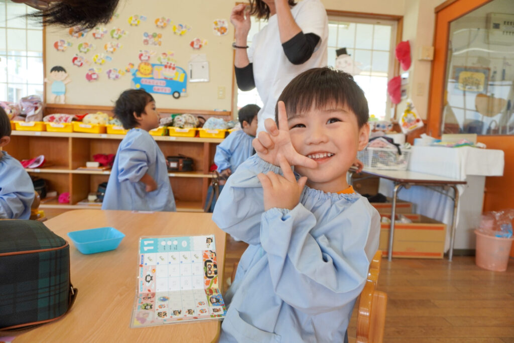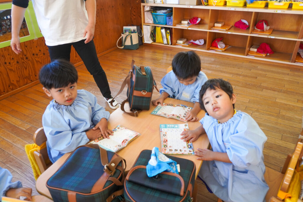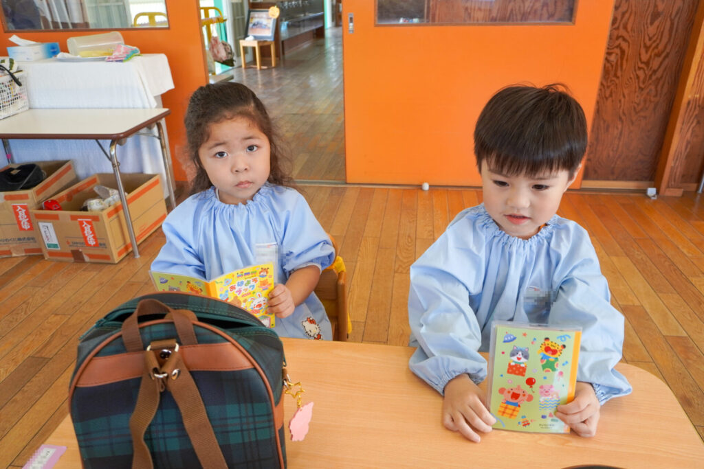今日から、幼稚園で一番小さい満3歳バンビ組に新入園児が仲間入りをしました。未就園児教室「にこぴよちゃん」への参加時から、バンビ組入園を楽しみにしてくれていました。