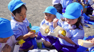 今日は「焼き芋の会」で園庭でおいしい焼き芋を食べました。これからのバンビ組での生活が楽しみですね。明日からも元気に登園してくださいね。