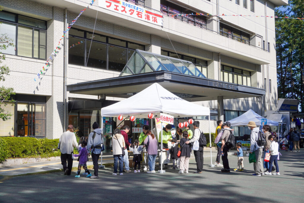 焼津青少年の家~フェスタ石津浜が~開催され、まどか幼稚園・すみれ台幼稚園の共同画を出展いたしました。天気もよく、どのコーナーも大賑わいでした。