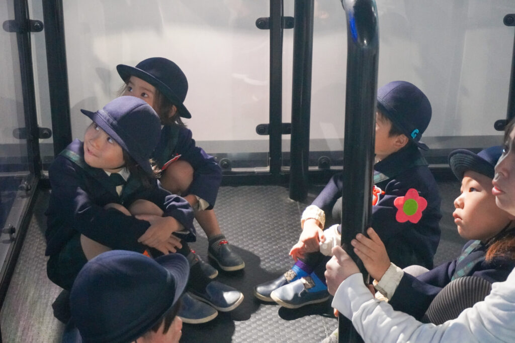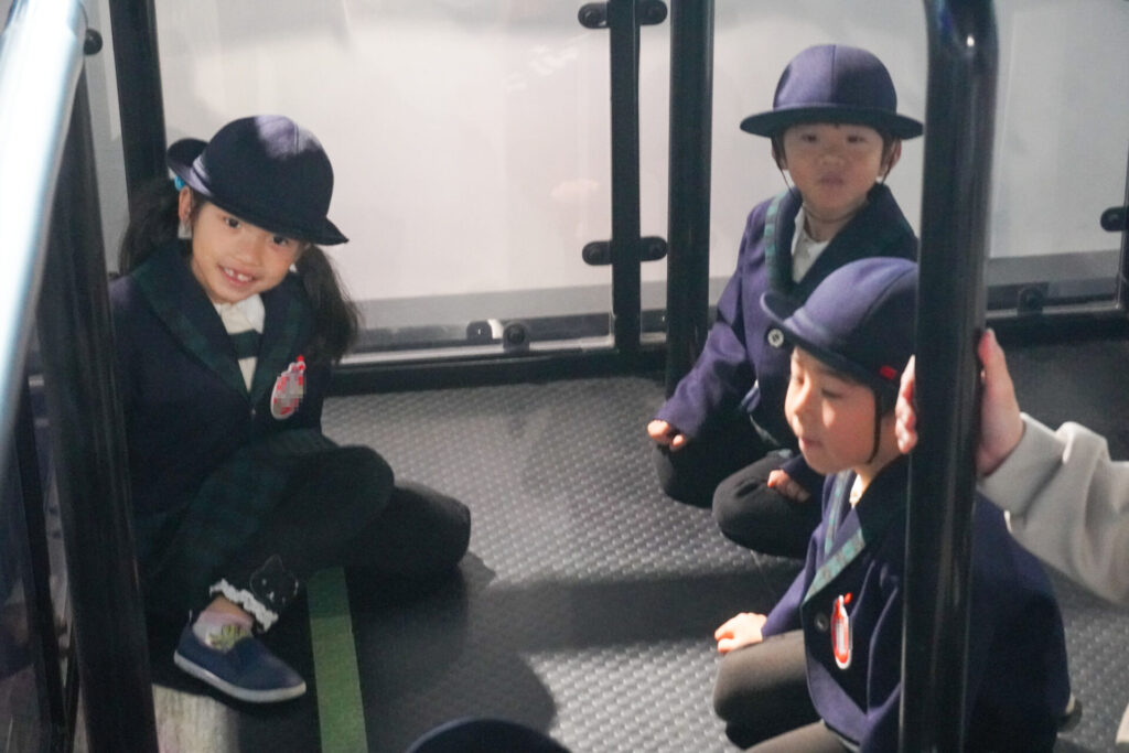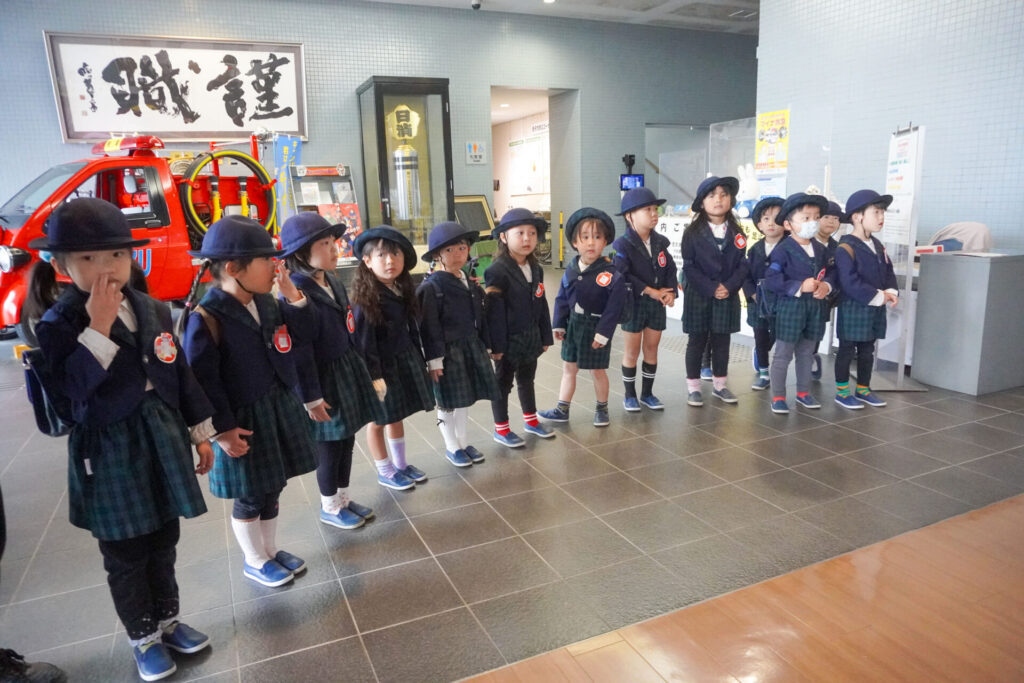年中さくら組がスクールバスに乗って「消防防災センター」へ防災体験へ出かけました。