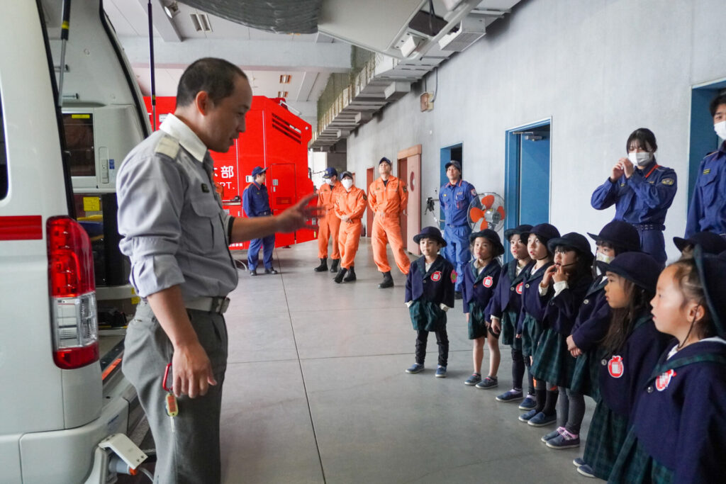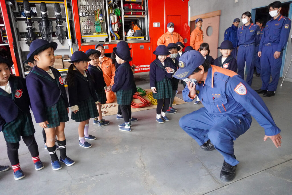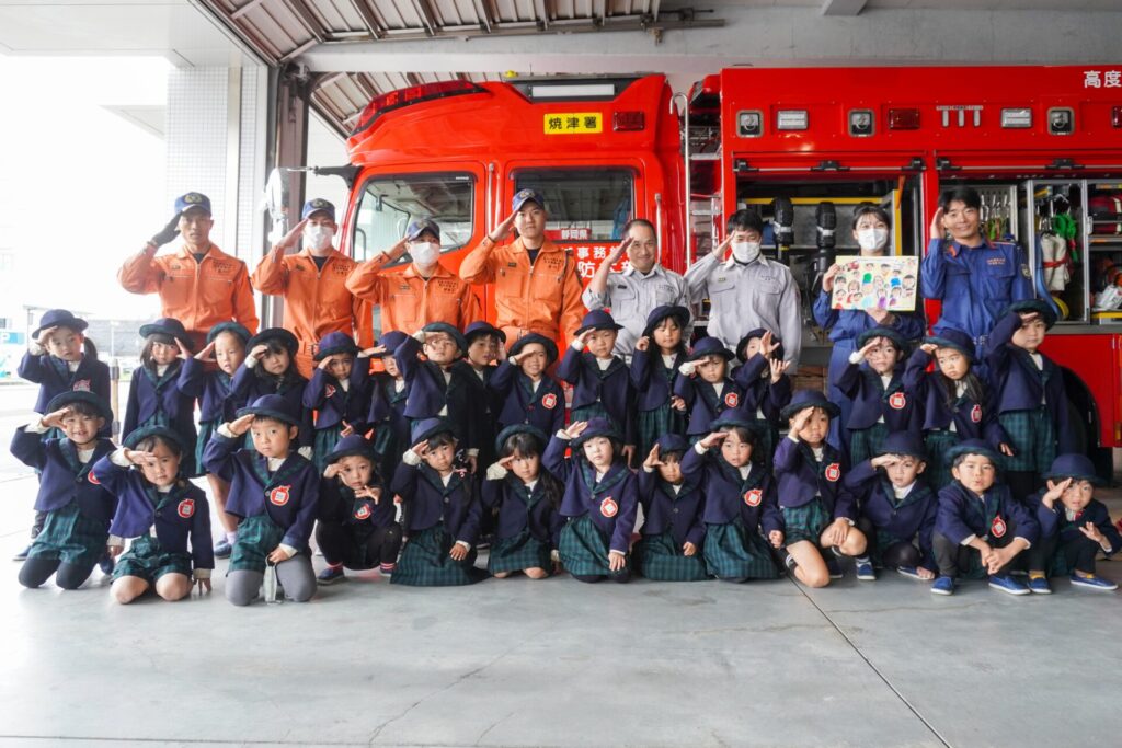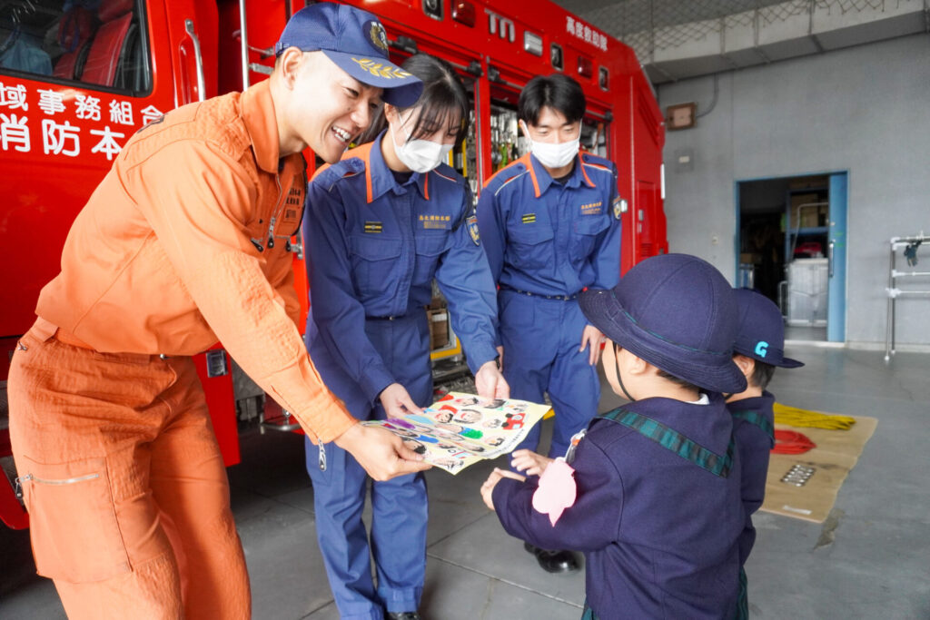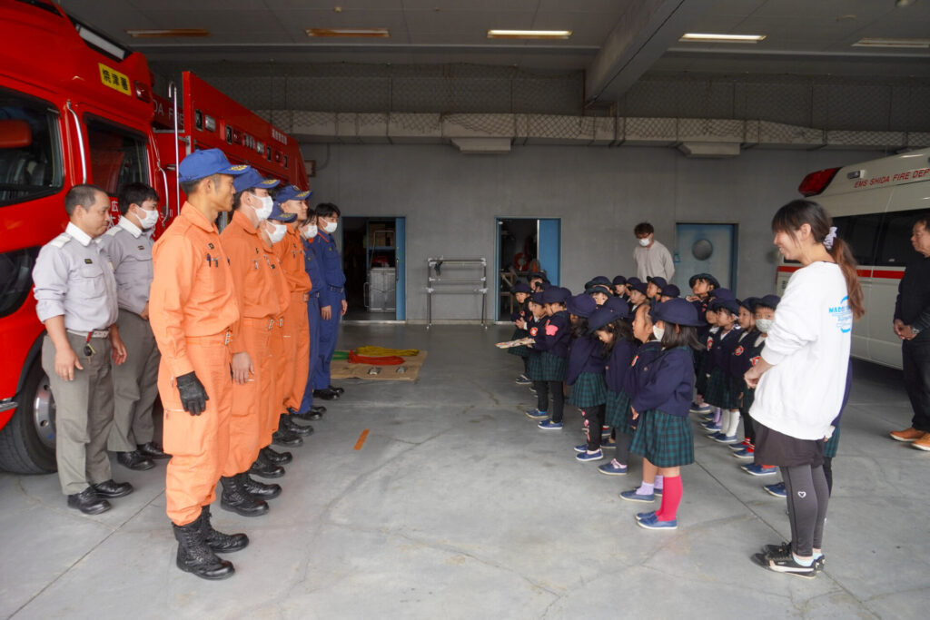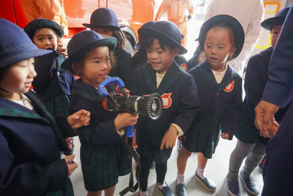 毎日、安全に生活できたり、園生活を送れるのも周りの皆さんの見守りやサポート、励ましのおかげです。その気持ちを忘れずに過ごしてほしいと願っています。「消防防災センター」の皆さん、ありがとうございました。
