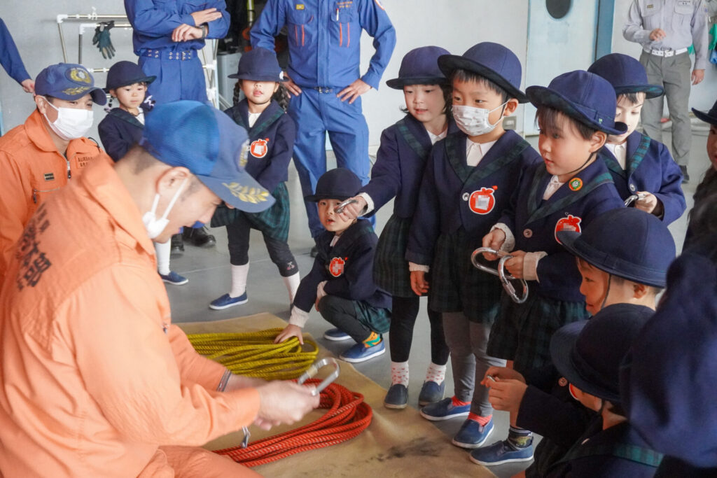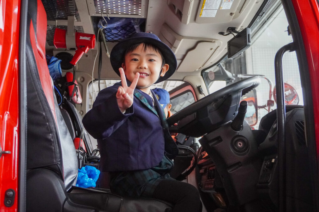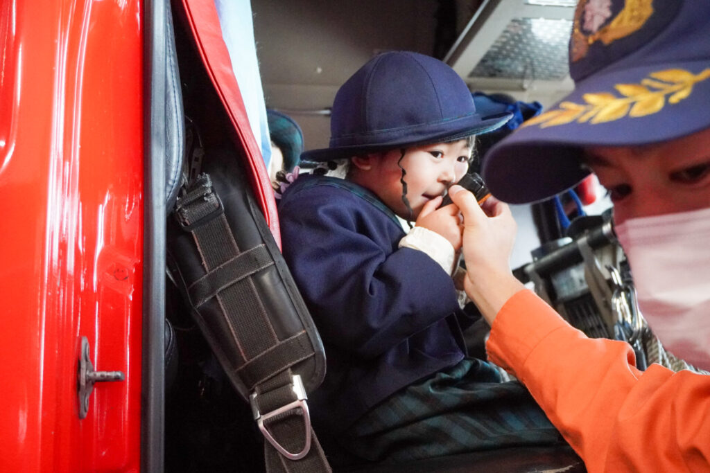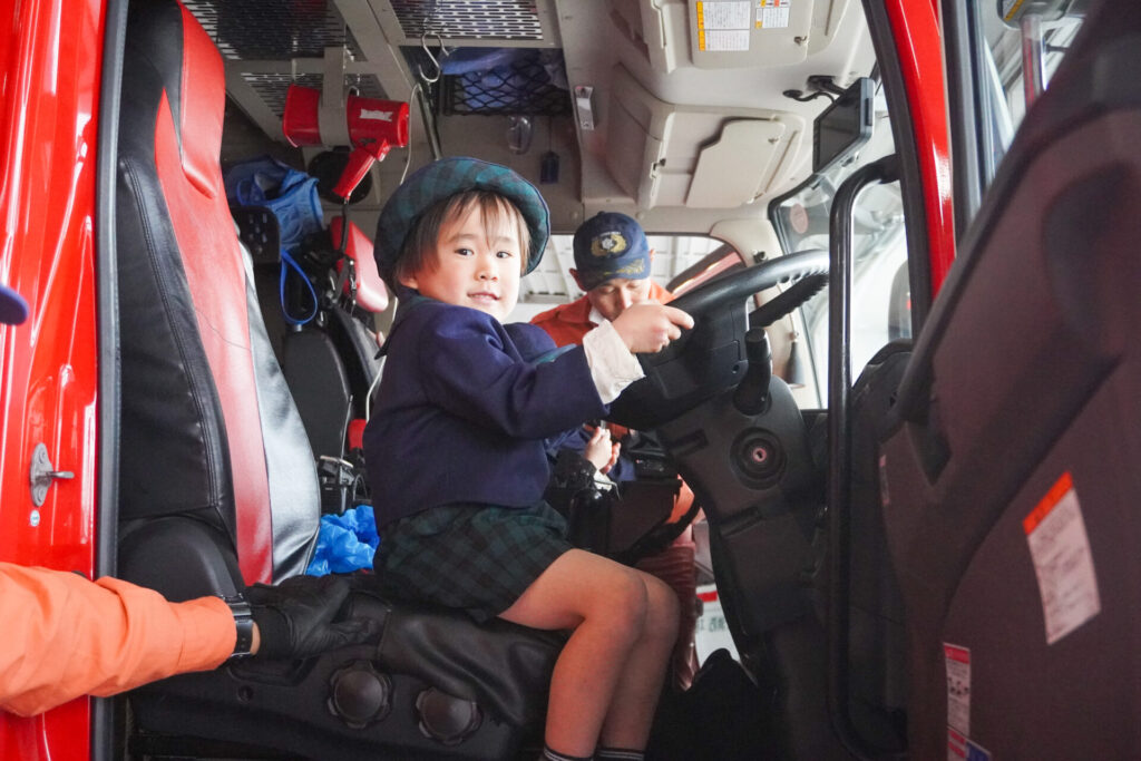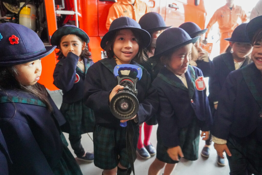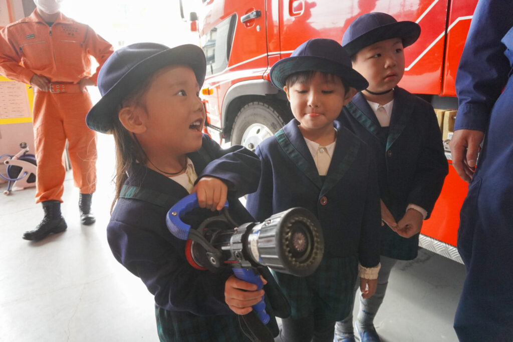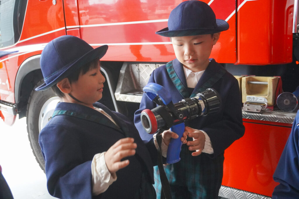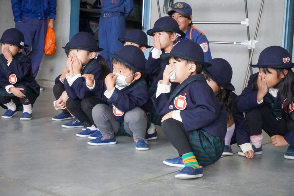 今日の体験を通して、またひとつ、危機意識が高まり、興味も広がったことと思います。今後の園内の訓練も含め、前触れなくやってくる地震などの自然災害に対する危機意識をもち続けていけるようにしていきます。職業・職種を知る機会にもなり、今日一日を通して、たくさんの「実体験」ができました。