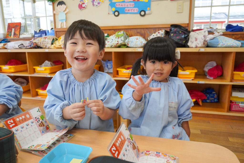 だんだん寒くなってきましたが、戸外でもめいっぱい遊んで毎日元気いっぱいです。出席カードのシール貼りも上手になり、1日1枚、貼れるのを楽しみにしています。明日も幼稚園で元気に遊びましょうね。