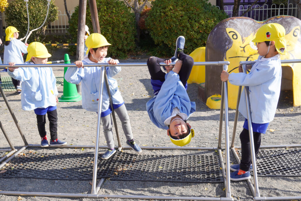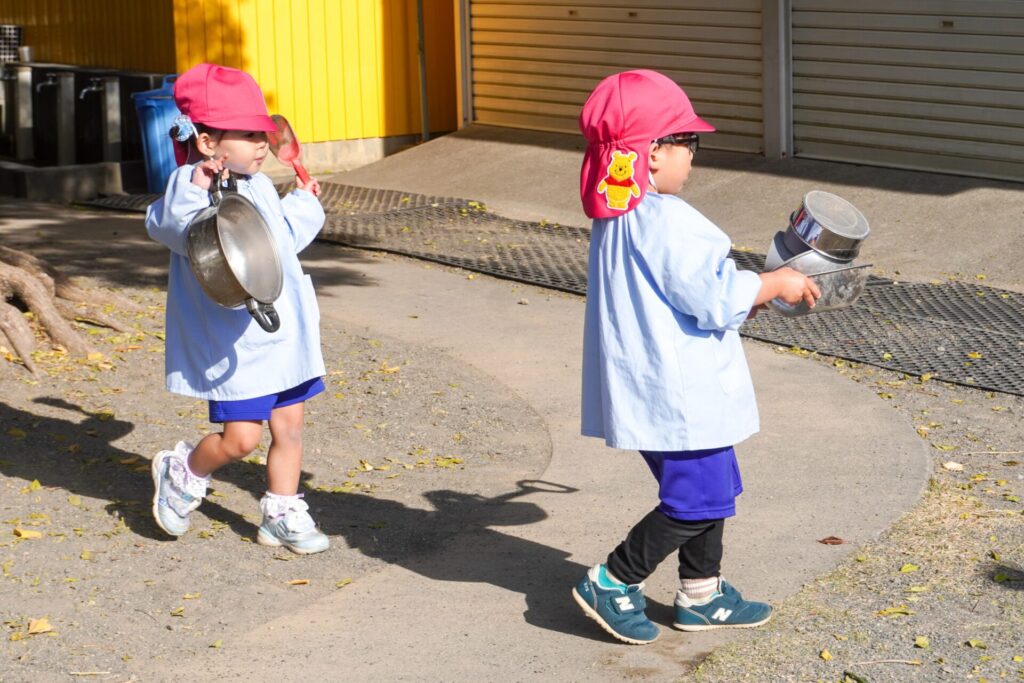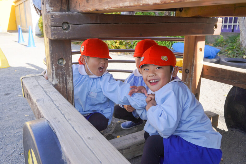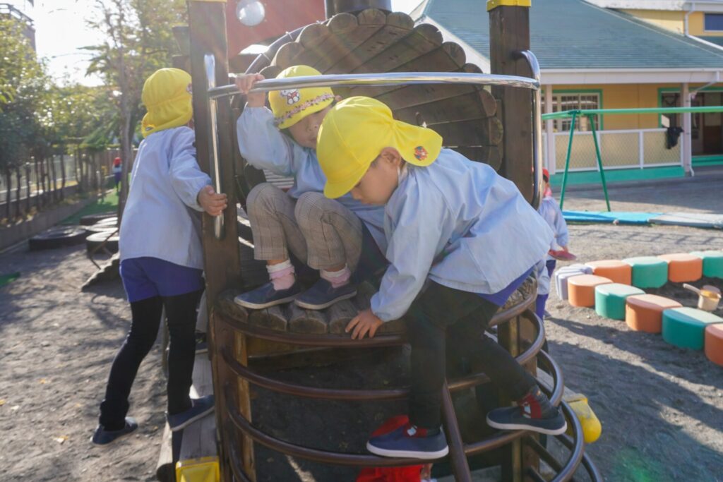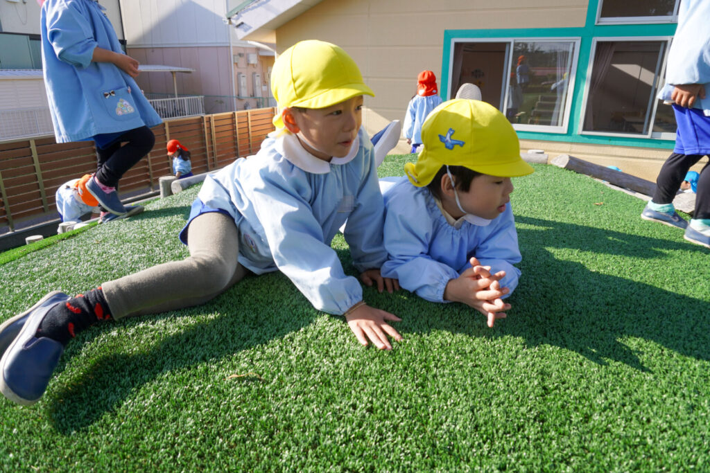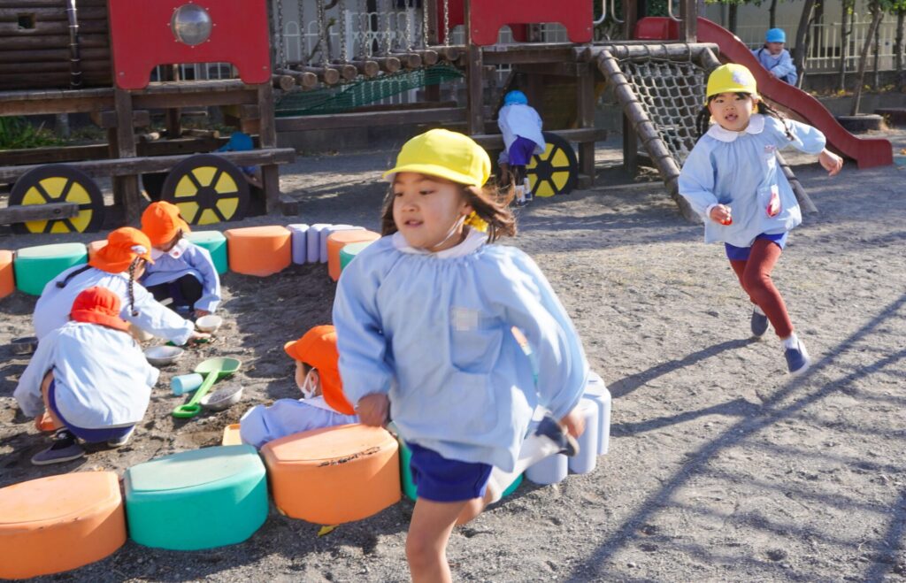 まどかっこは戸外遊びが大好きです。今日も陽だまりが暖かく、戸外で元気よく遊びました。