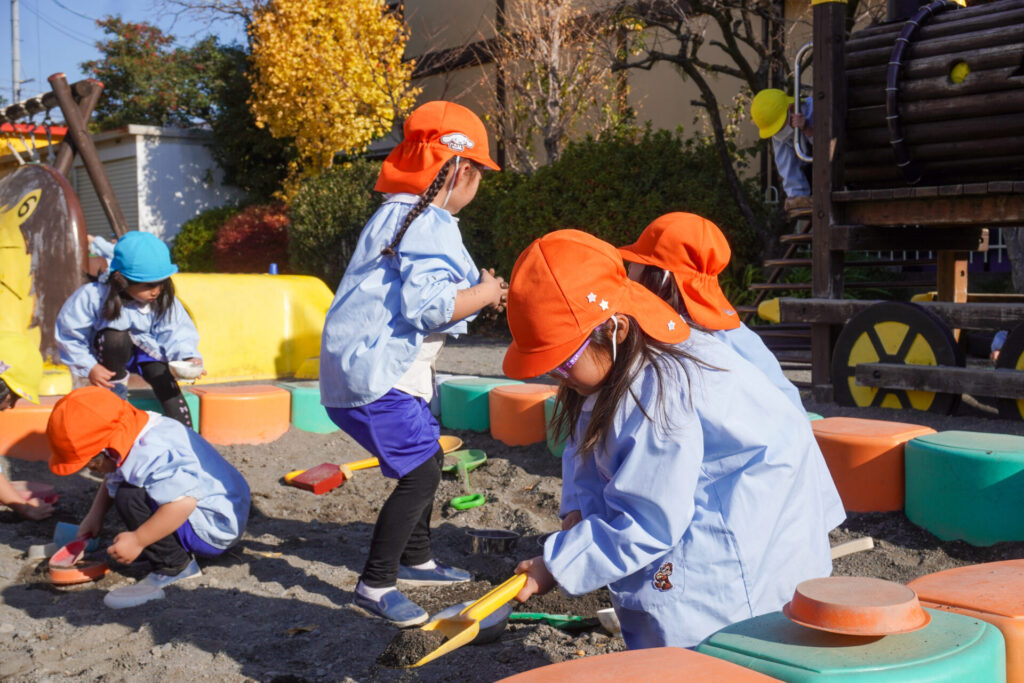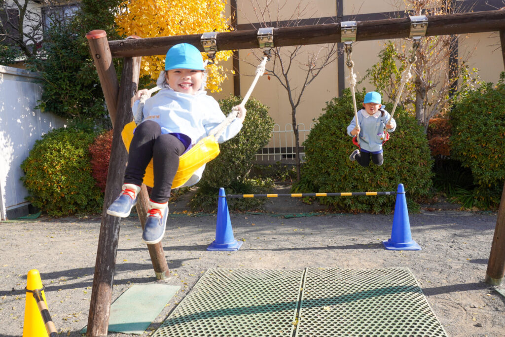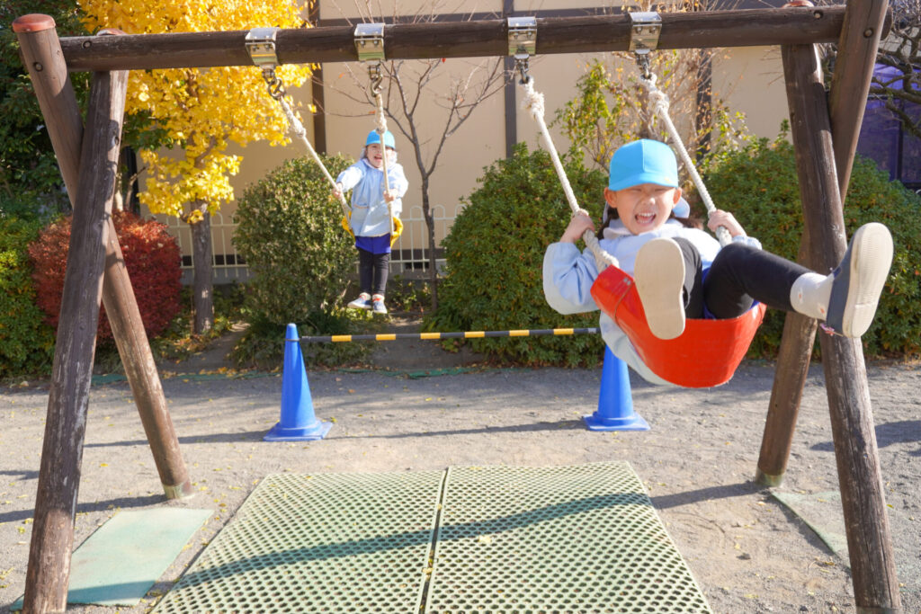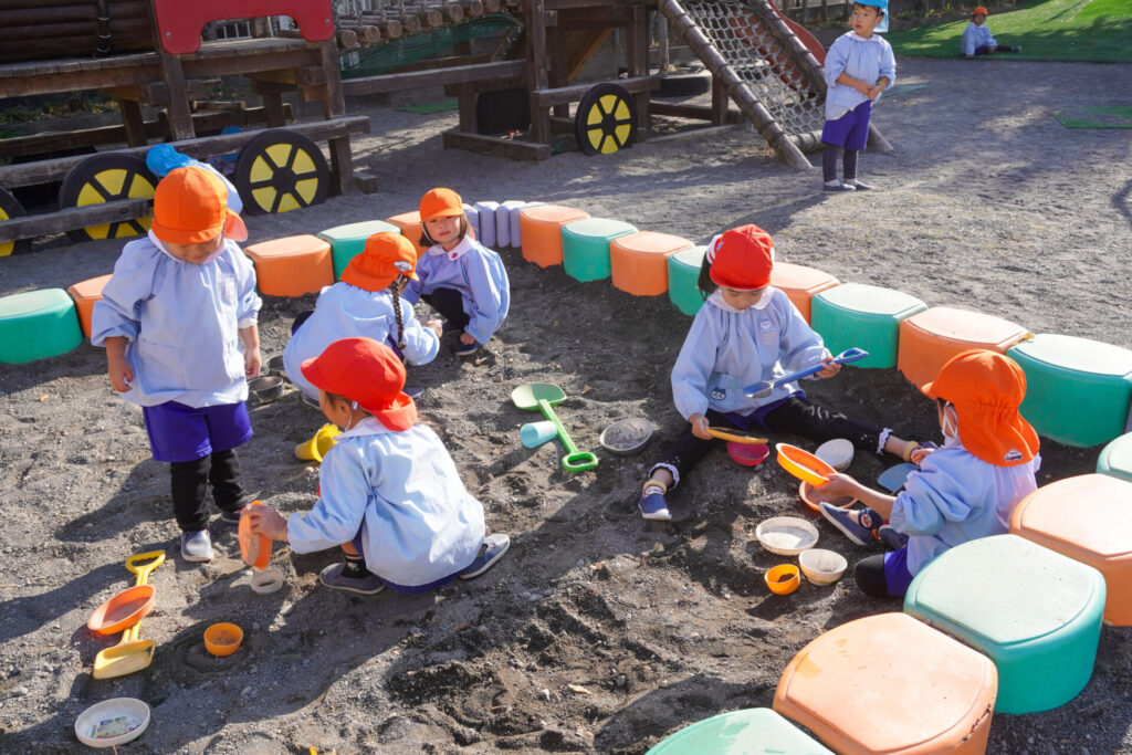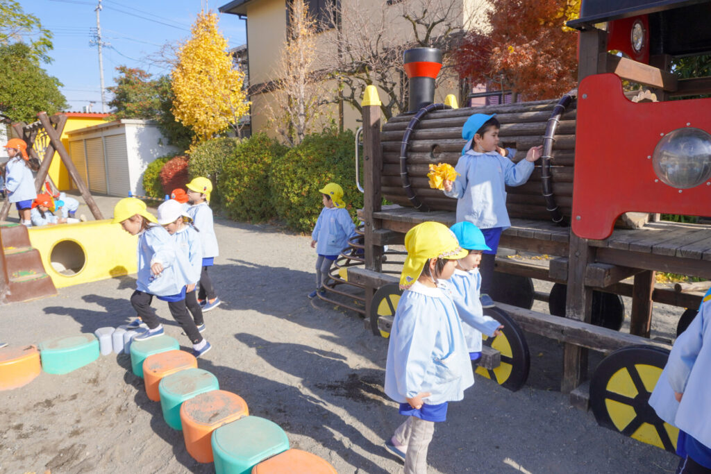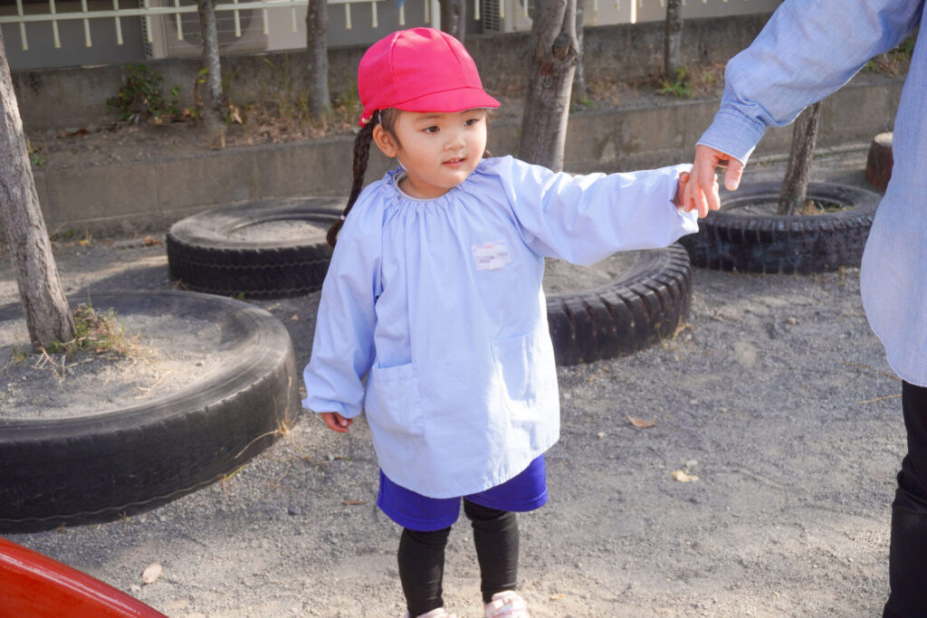 まどかっこは戸外遊びが大好きです。今日も陽だまりが暖かく、戸外で元気よく遊びました。