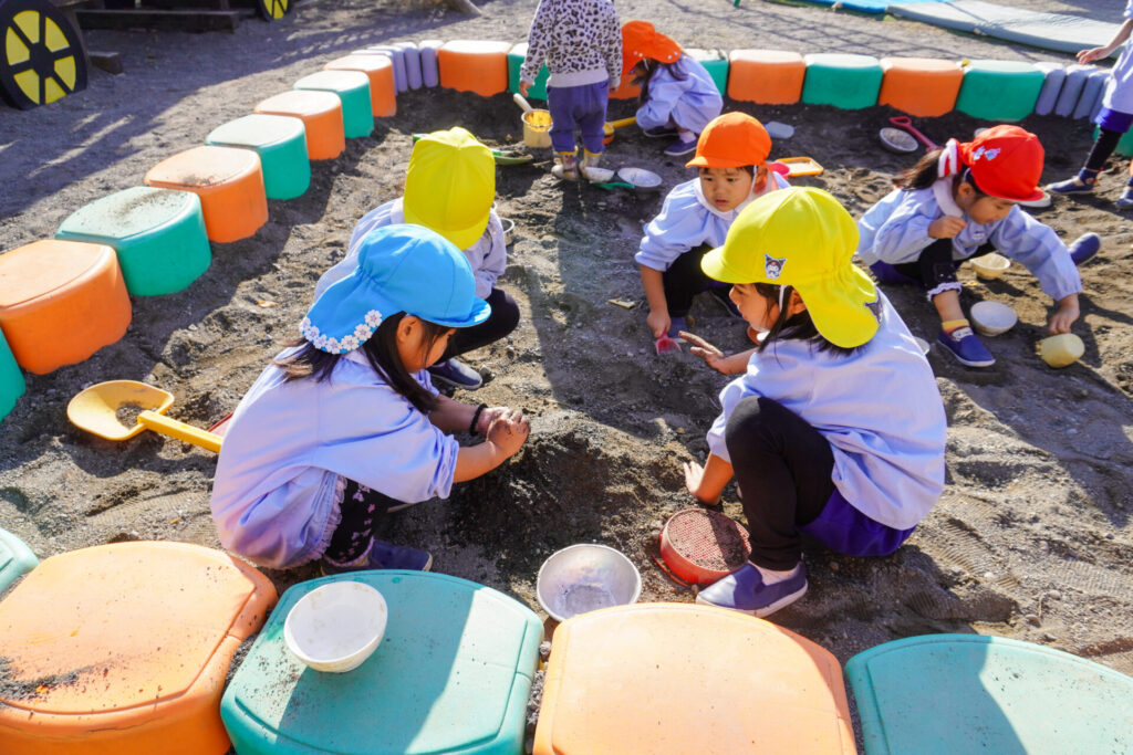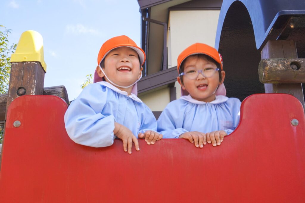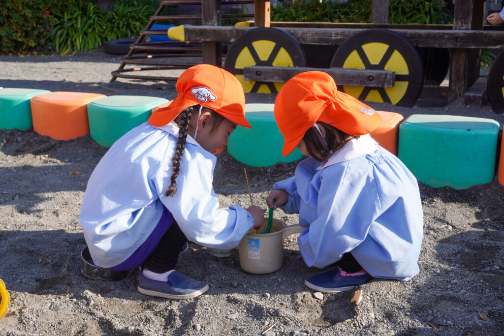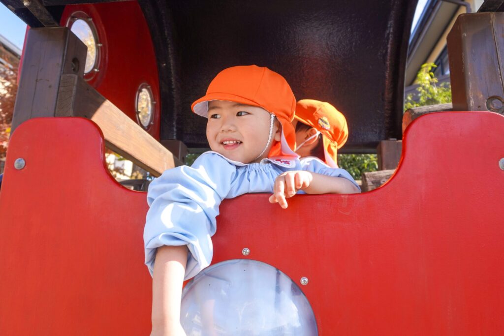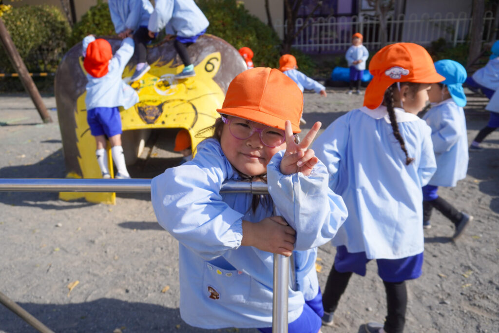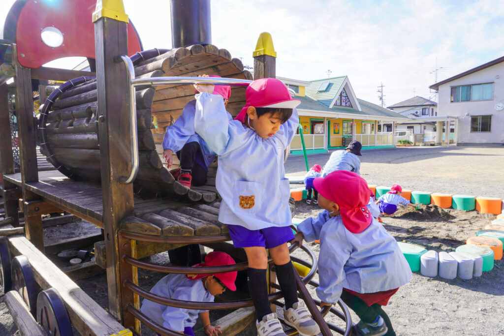 まどかっこは戸外遊びが大好きです。今日も陽だまりが暖かく、戸外で元気よく遊びました。