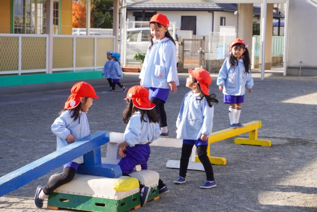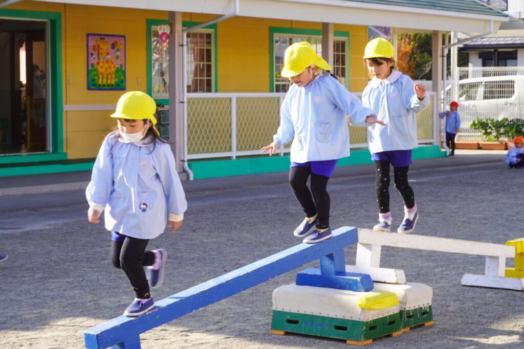 平均台渡りがとても上手になりました。上りも下りもスイスイです。友だちの手を引いて援助したり、あちこちで温かい関わりが見られます。