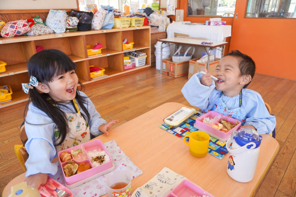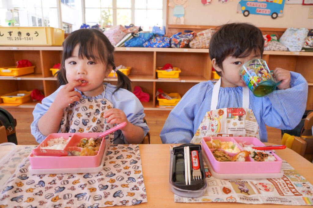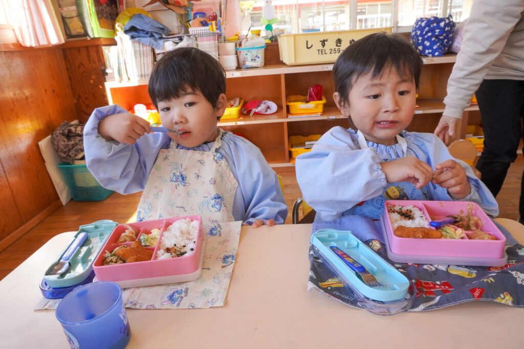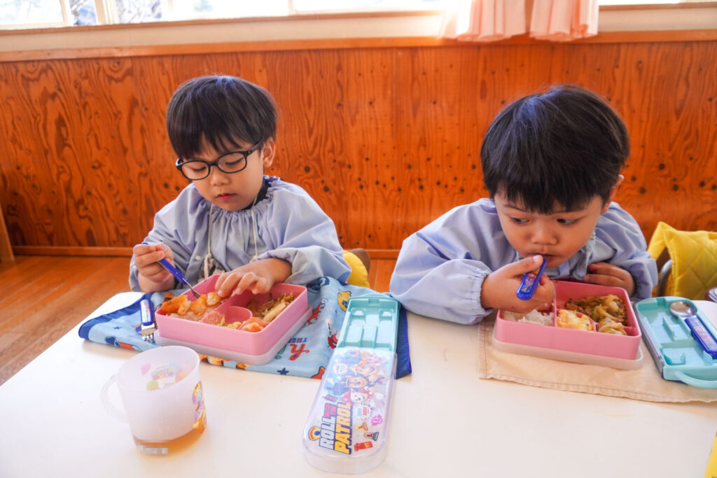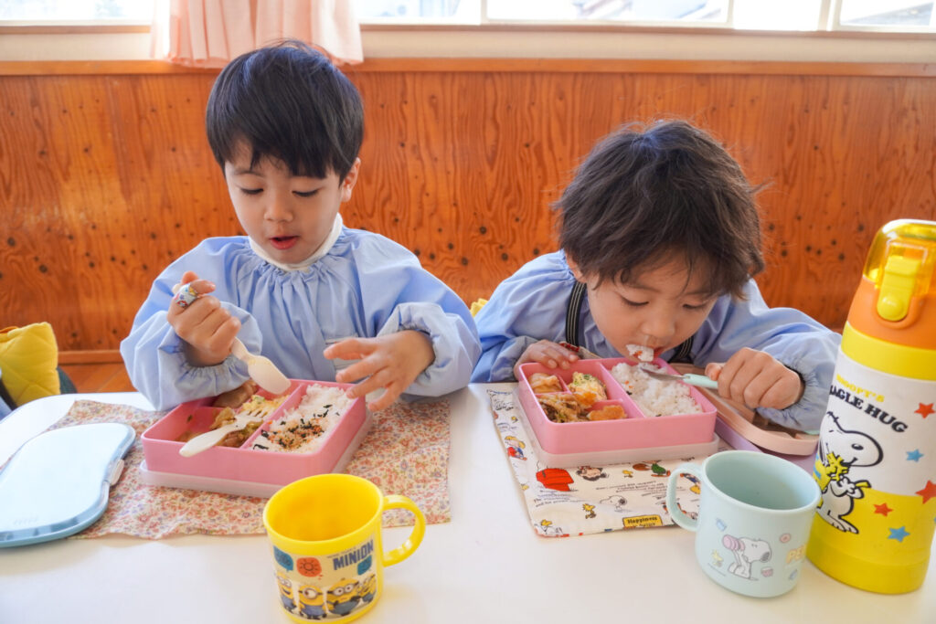 給食ももりもり食べます。今月の新入園児も少しずつ園生活に慣れ、笑顔も見られるようになりました。週末はゆっくり休んで来週も幼稚園で元気いっぱい遊びましょうね。今日も一段と寒くなりましたが、バンビ組は元気いっぱいです!