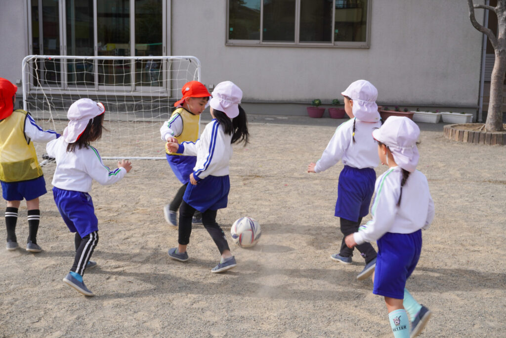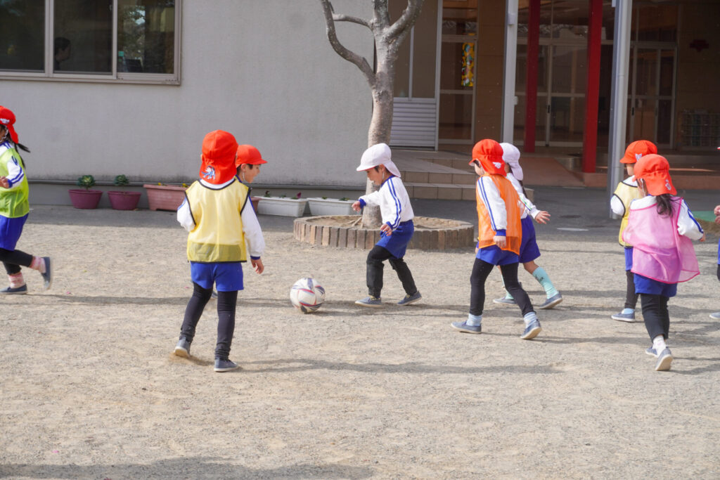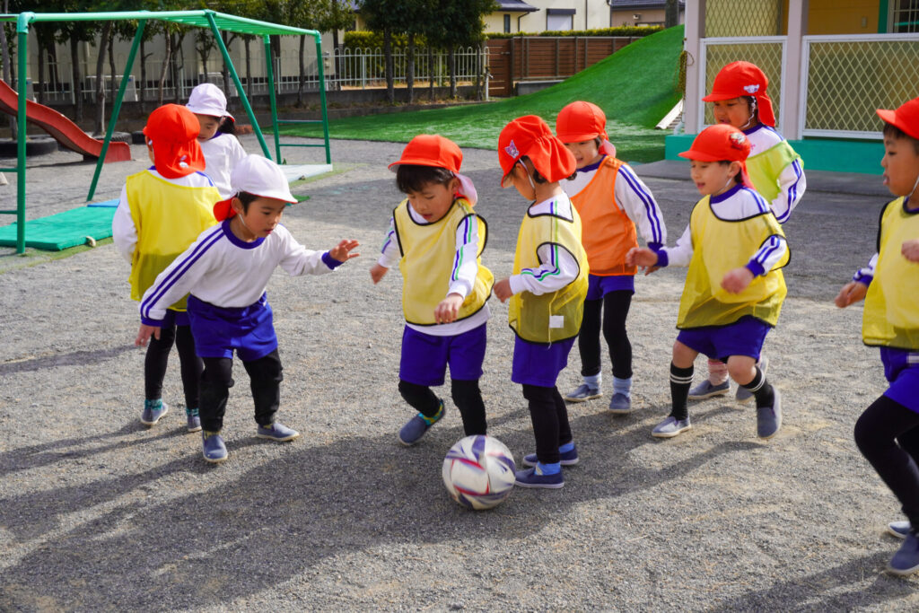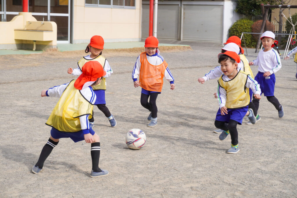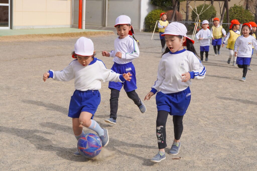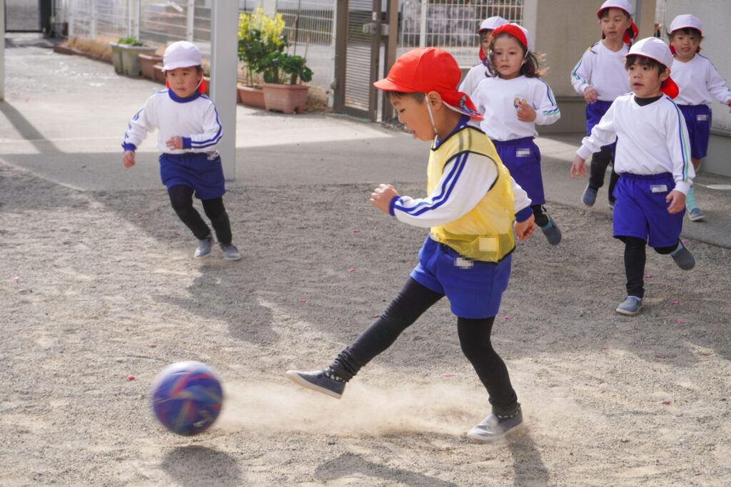 園での様子 サッカー(年中) madokahp 2026年1月20日 年中さくら組が「サッカー」で遊びました。来週、年長つき組との「サッカー大会」を計画しています。 どちらのゴールを狙うのかなど、ルールも少しずつ覚えてきました。2個のボールを使い分けて、ゴールを何とか割ろうと必死にボールを追いかけました。 園庭を所狭しと走り、めざせ、シュート!今日は転んでも泣きません。ゲーム終了のホイッスルが鳴るまで、息を切らしながらあちこちに走りました。 さくら組は、毎日元気いっぱいです!寒い日が続きますが、体調には気をつけて、明日も元気いっぱい遊びましょうね。