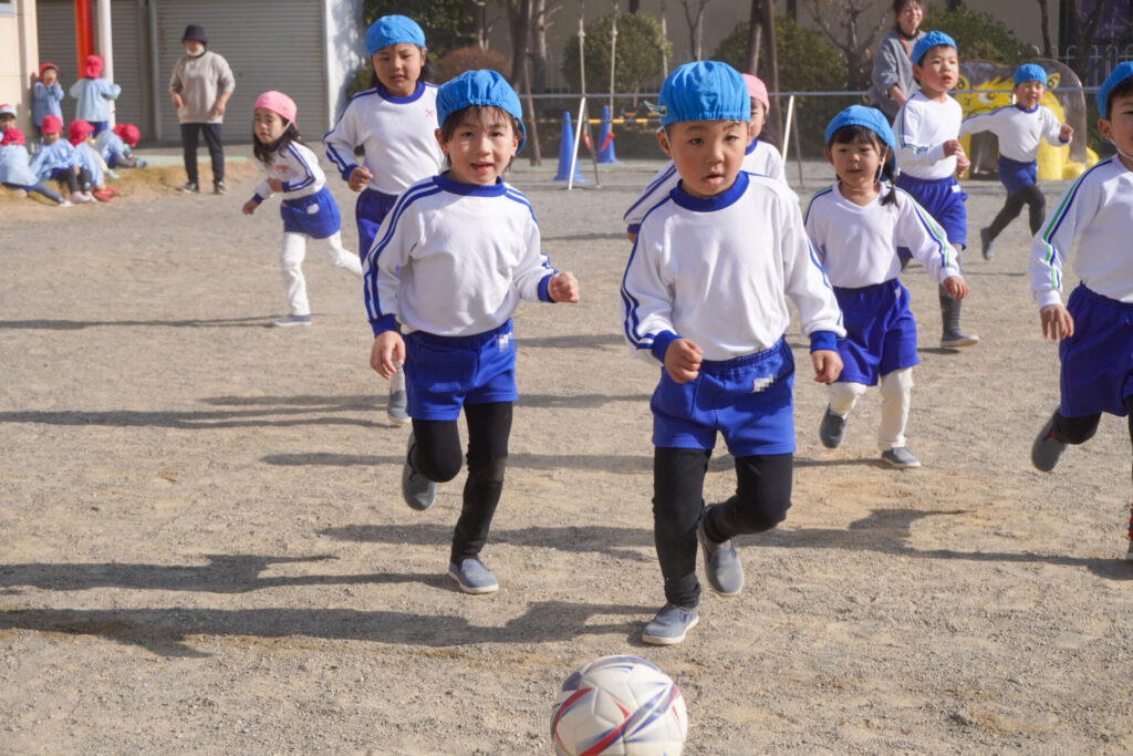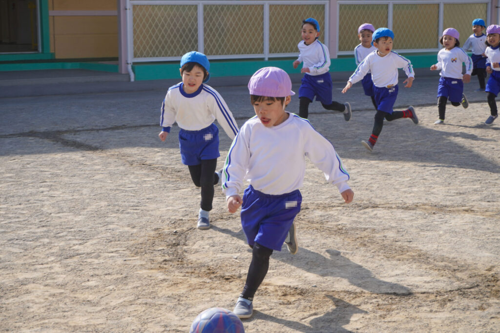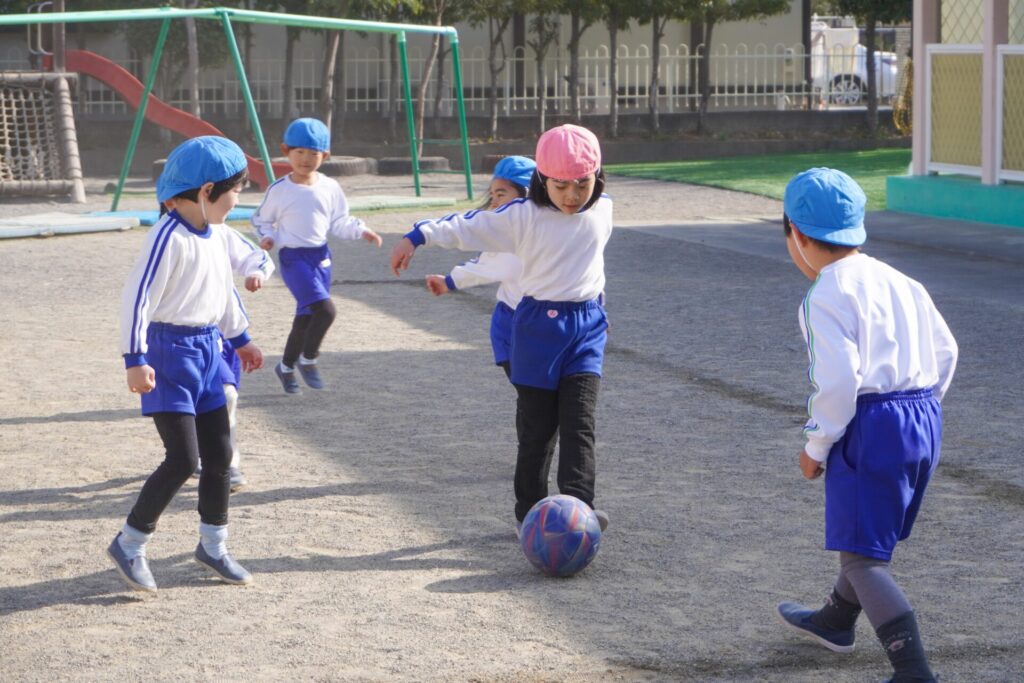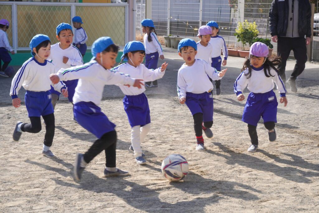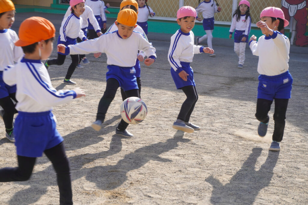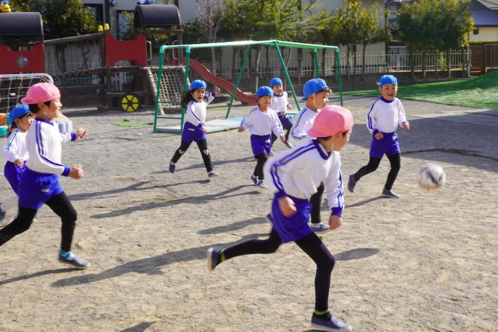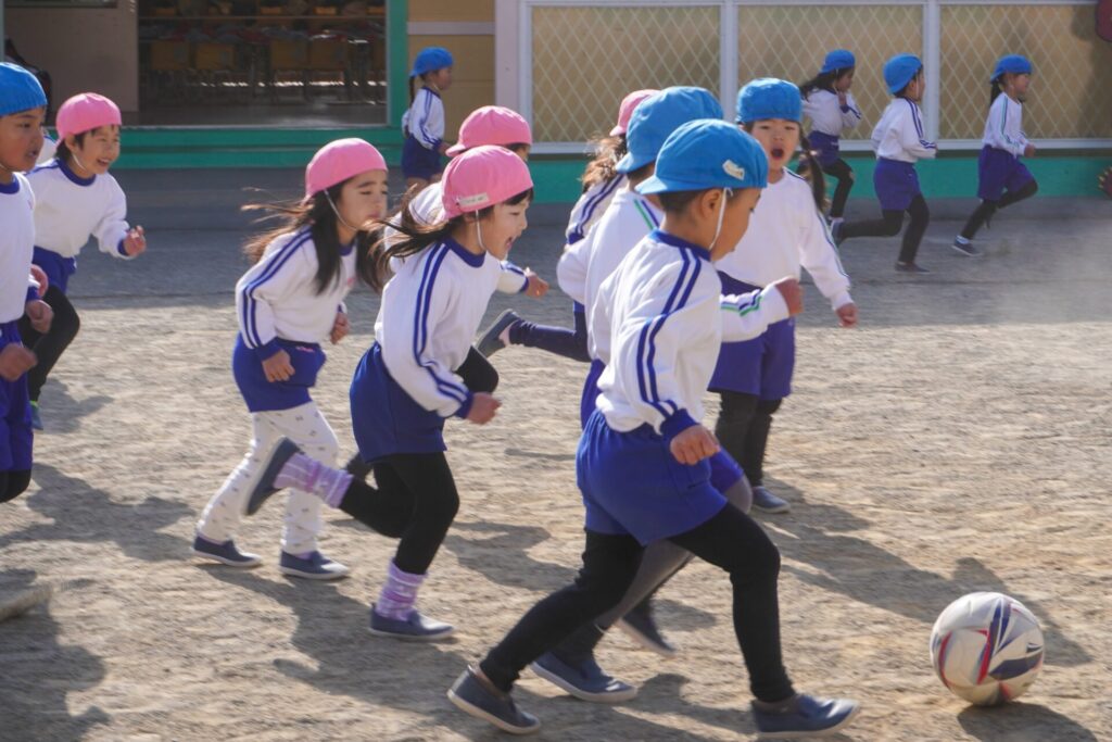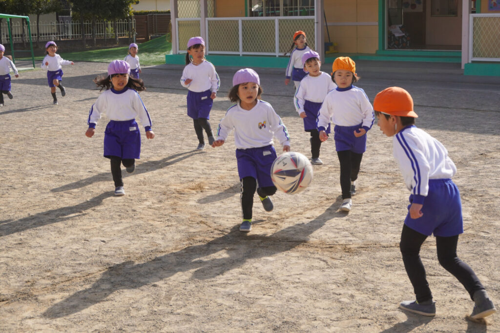 園での様子 サッカー大会(年長・年中) madokahp 2026年1月27日 今日は、年長つき組・年中さくら組の「サッカー大会」でした。気温が上がり、きれいな青空の下、堂々の選手入場です!年少ゆり組・ばら組、満3歳バンビ組の応援を受けて、さぁ、試合開始のホイッスルが鳴りました。 遊び始めの頃はボールを取れないとすぐに諦めてしまいましたが、取られたら取り返す気持ちが大きくなり、ボールを追いかけようと姿が見られるようになりました。 ドリブルもできるようになり、シュートのチャンスも巡ってきます。でもそこを上手くカットして点が入るのを阻止したり、試合ごとに各チームの見せ場があり、最後の最後まで走りっぱなしの「サッカー大会」でした。 勝って喜ぶチーム、負けて悔しがるチーム…次の試合につながる「サッカー大会」になりました。 2月は「相撲大会~まどか場所~」を予定しています。次回も最後までがんばる力を大いに発揮してほしいと願っています。