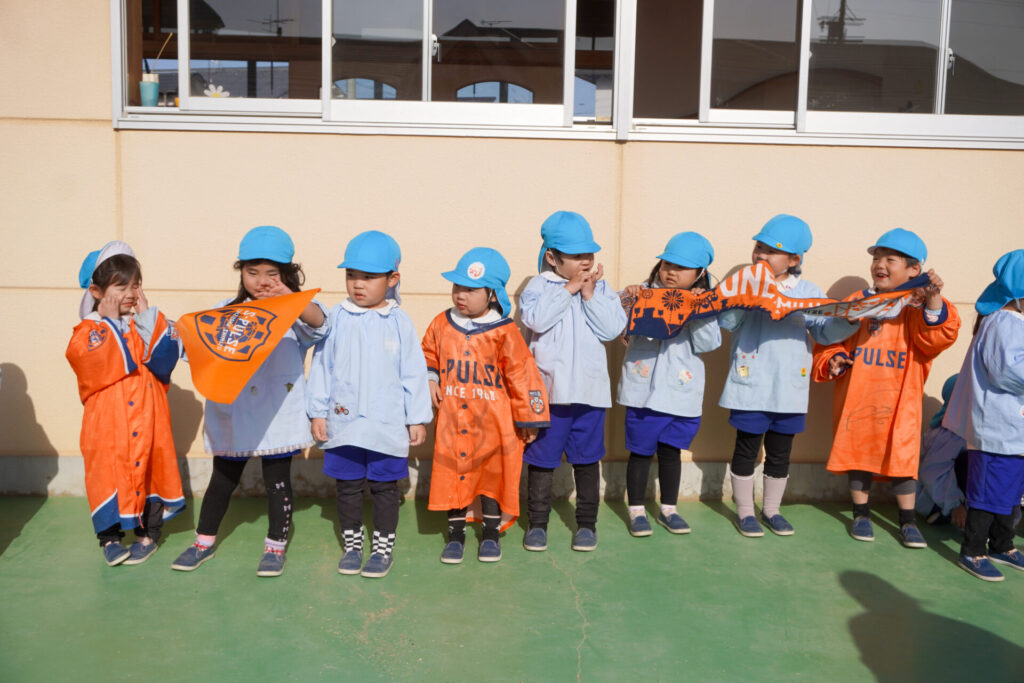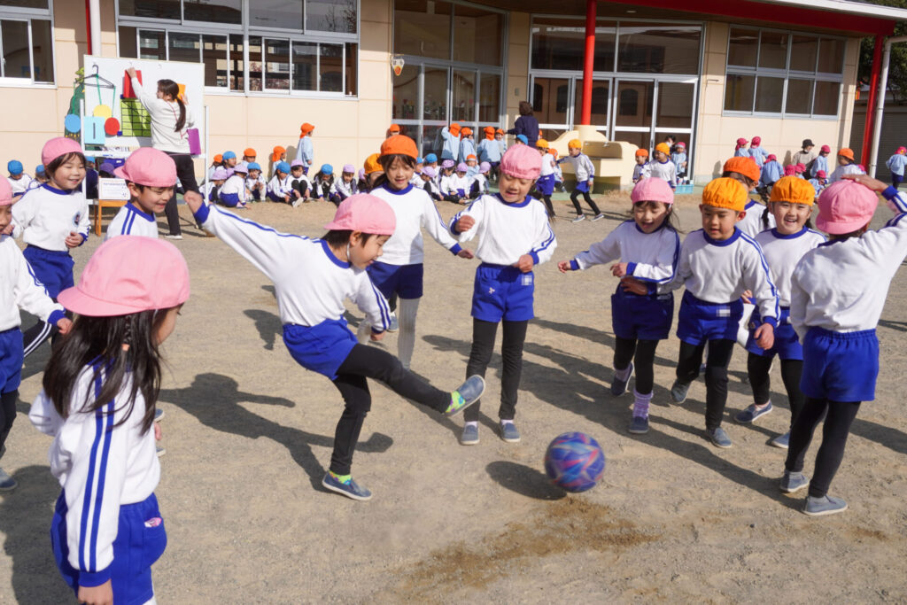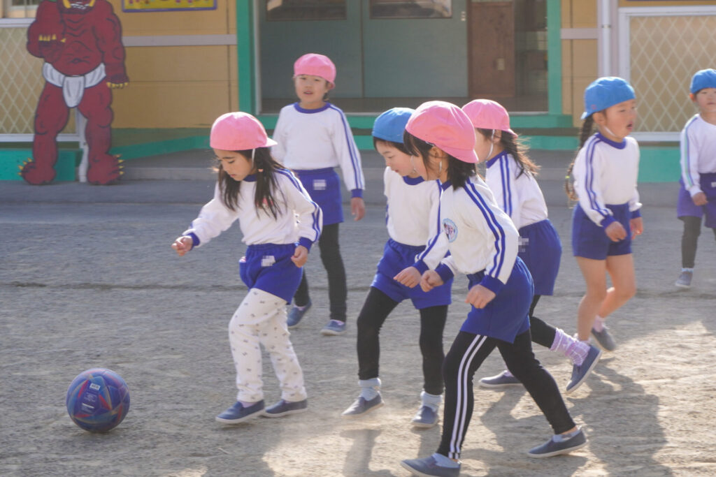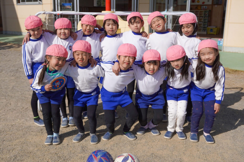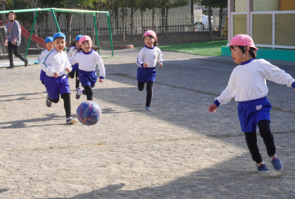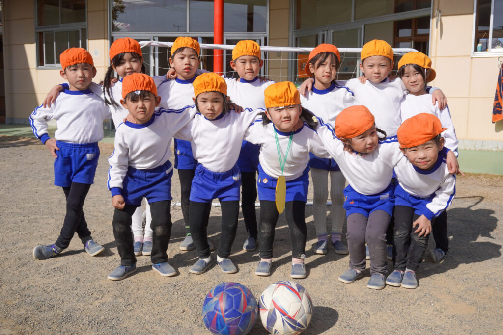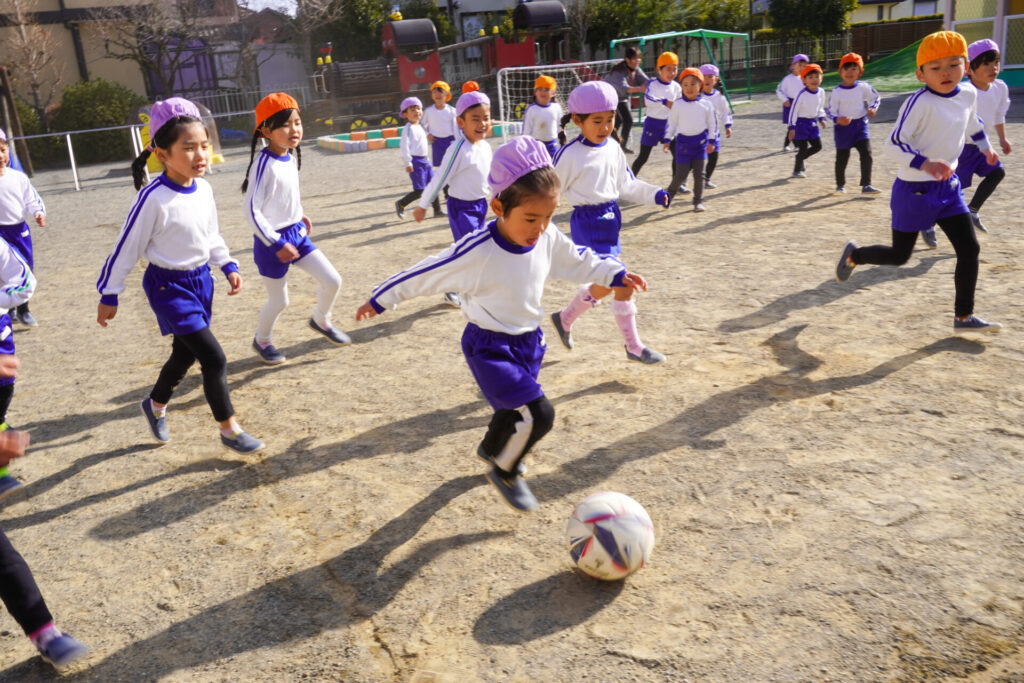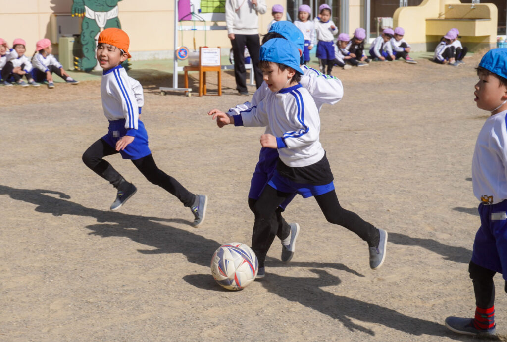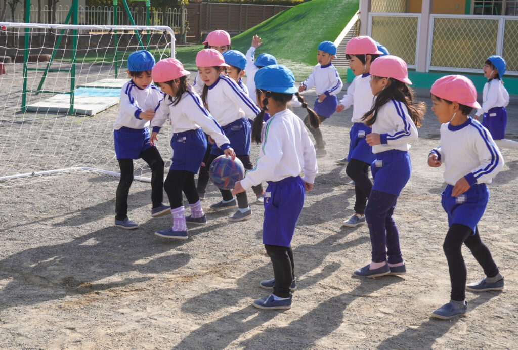 園での様子 サッカー大会(年長・年中) madokahp 2026年1月27日 今日は、年長つき組・年中さくら組の「サッカー大会」でした。気温が上がり、きれいな青空の下、堂々の選手入場です!年少ゆり組・ばら組、満3歳バンビ組の応援を受けて、さぁ、試合開始のホイッスルが鳴りました。 遊び始めの頃はボールを取れないとすぐに諦めてしまいましたが、取られたら取り返す気持ちが大きくなり、ボールを追いかけようと姿が見られるようになりました。 ドリブルもできるようになり、シュートのチャンスも巡ってきます。でもそこを上手くカットして点が入るのを阻止したり、試合ごとに各チームの見せ場があり、最後の最後まで走りっぱなしの「サッカー大会」でした。 勝って喜ぶチーム、負けて悔しがるチーム…次の試合につながる「サッカー大会」になりました。 2月は「相撲大会~まどか場所~」を予定しています。次回も最後までがんばる力を大いに発揮してほしいと願っています。