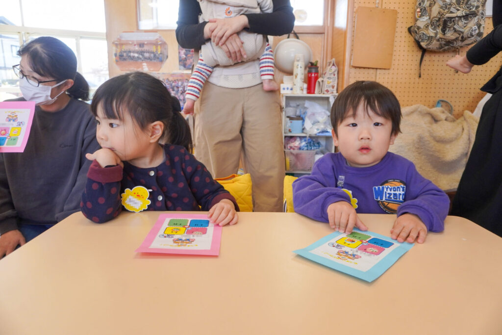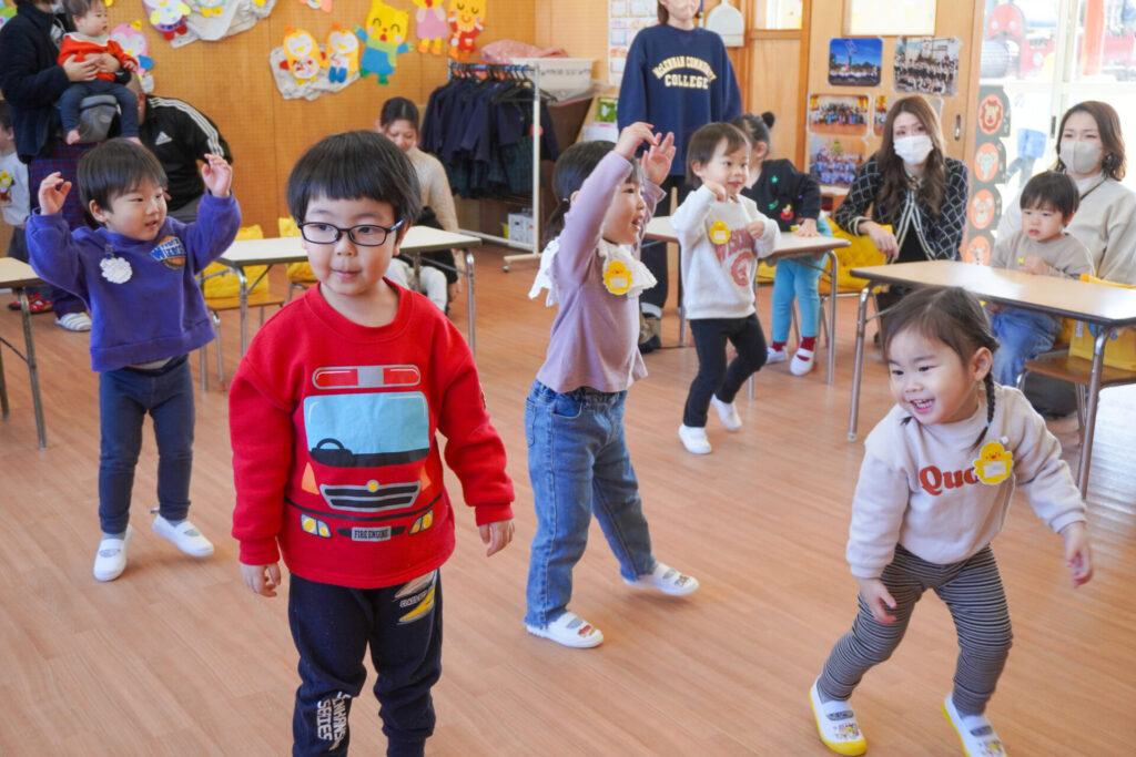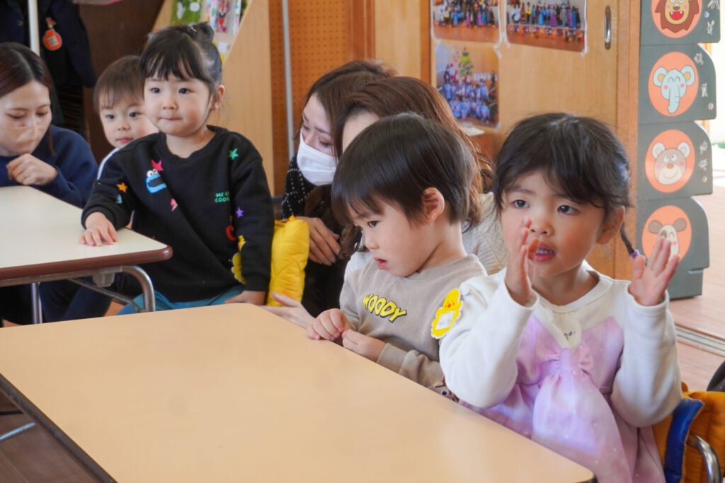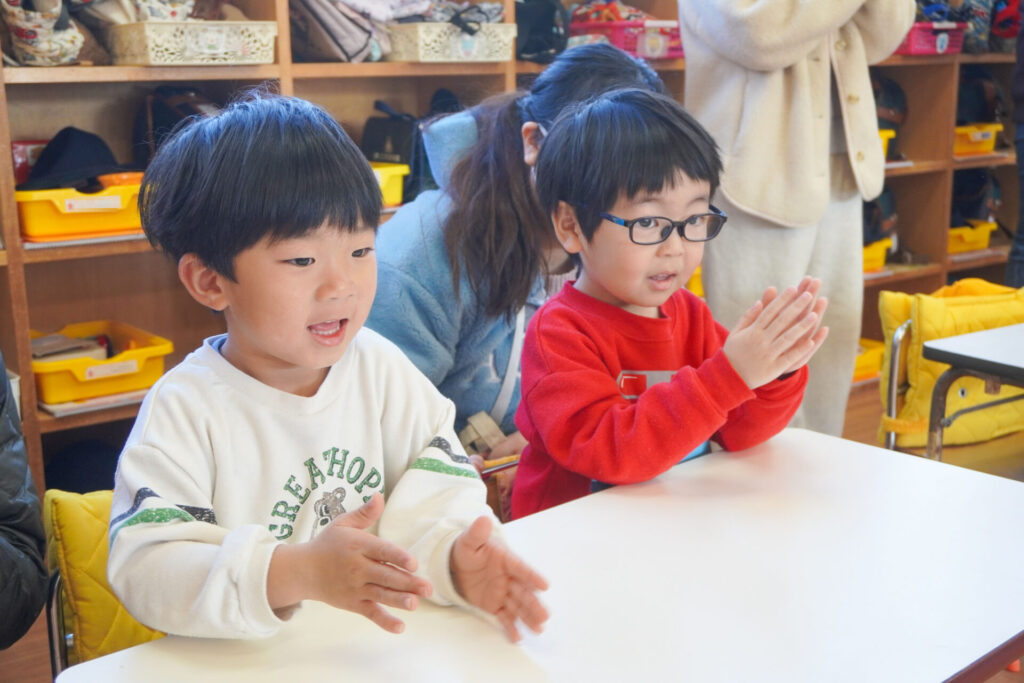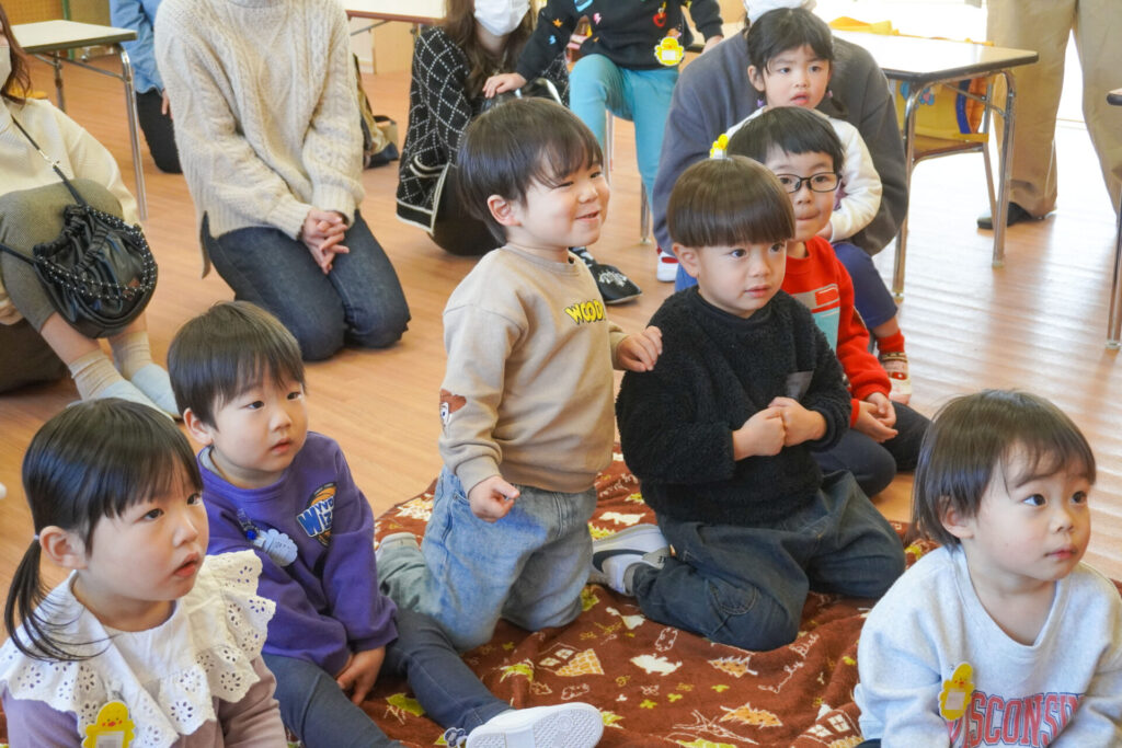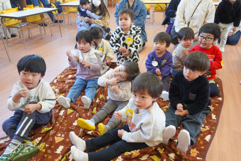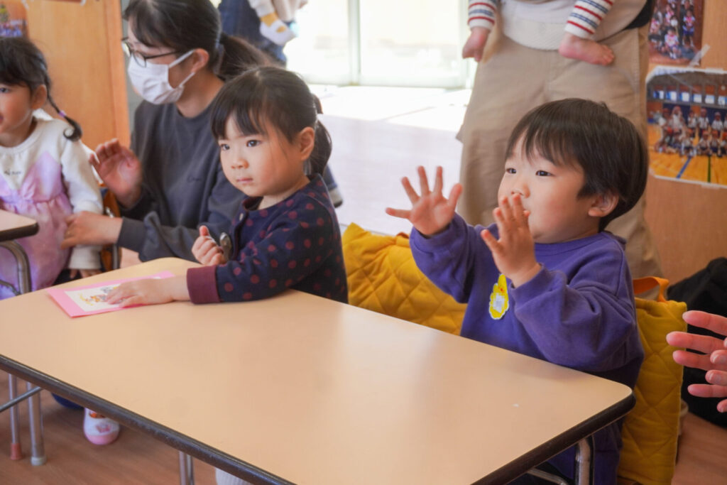 未就園児 年少体験入園(新入生) madokahp 2026年2月6日 令和8年度年少入園対象の2回目の「体験入園」を行いました。未就園児教室「にこぴよちゃん」や先週の「体験入園」を通して、少しずつ慣れてきました。靴を脱いだり、上靴への履き替えも自分できる子が増えてきました。 朝の挨拶「おはようございます」も大きな声で言えました。名前を呼ばれて大きな声で返事もできましたね。 出席カードへのシール貼りは、未就園児教室を通して上手になり、シールを上手に貼ることができました。「手をたたきましょう」や「パンダうさぎコアラ」の手遊びでは、真似をしながら上手に歌えましたね。 「サンサン体操」では席から離れて保育者の近くへ集まって踊ることができました。恥ずかしがってしまう子もいましたが、少しずつ慣れていくことと思います。最後は「アンパンマン」の紙芝居を座って見ました。元気な「アンパンチ!」が聞けて、安心しました。 あっという間の「体験入園」でしたが、最後に聞くと「楽しかったー!」と元気な返事を聞くことができてとても嬉しく思いました。次回、2/12(木)の「体験入園」は、4月から同じ年少へ進級する満3歳バンビ組との活動を予定しています。来週も幼稚園で楽しく遊びましょうね。