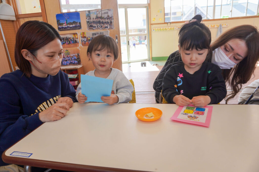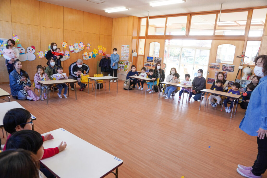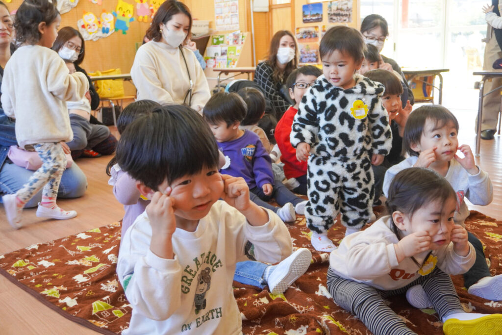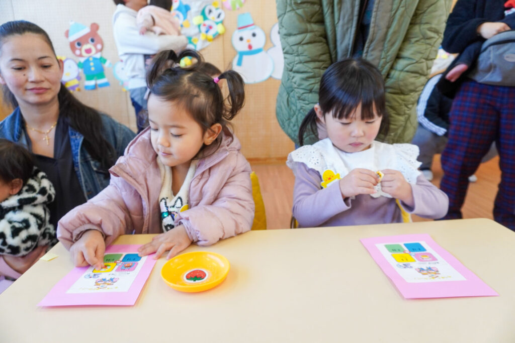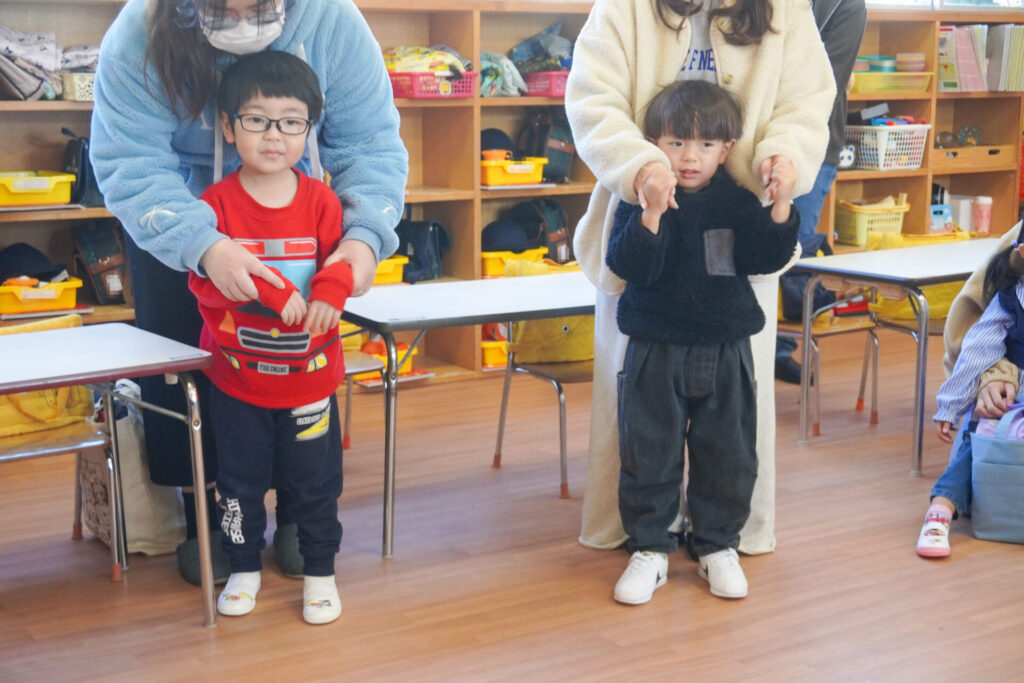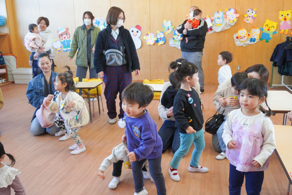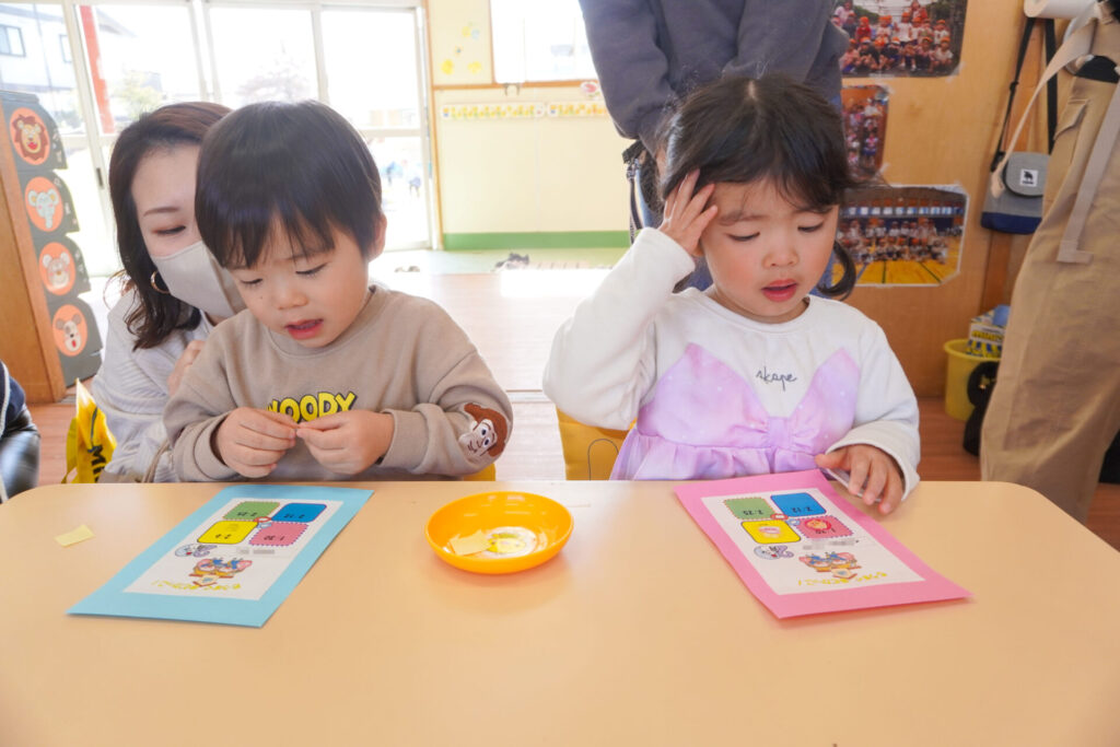 未就園児 年少体験入園(新入生) madokahp 2026年2月6日 令和8年度年少入園対象の2回目の「体験入園」を行いました。未就園児教室「にこぴよちゃん」や先週の「体験入園」を通して、少しずつ慣れてきました。靴を脱いだり、上靴への履き替えも自分できる子が増えてきました。 朝の挨拶「おはようございます」も大きな声で言えました。名前を呼ばれて大きな声で返事もできましたね。 出席カードへのシール貼りは、未就園児教室を通して上手になり、シールを上手に貼ることができました。「手をたたきましょう」や「パンダうさぎコアラ」の手遊びでは、真似をしながら上手に歌えましたね。 「サンサン体操」では席から離れて保育者の近くへ集まって踊ることができました。恥ずかしがってしまう子もいましたが、少しずつ慣れていくことと思います。最後は「アンパンマン」の紙芝居を座って見ました。元気な「アンパンチ!」が聞けて、安心しました。 あっという間の「体験入園」でしたが、最後に聞くと「楽しかったー!」と元気な返事を聞くことができてとても嬉しく思いました。次回、2/12(木)の「体験入園」は、4月から同じ年少へ進級する満3歳バンビ組との活動を予定しています。来週も幼稚園で楽しく遊びましょうね。