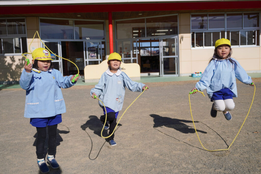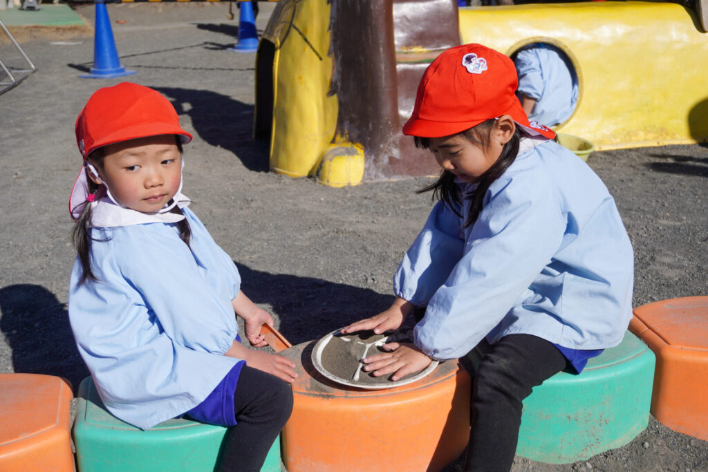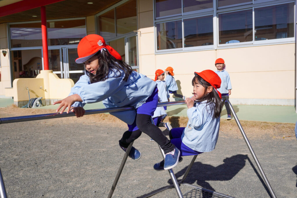 園での様子 戸外遊び madokahp 2026年2月9日 まどかっこは戸外遊びが大好きです。今日も戸外で元気いっぱい遊びました。汽車の遊具、築山、うんてい、ブランコ…好きな遊びを見つけて楽しんでいます。 うんていや鉄棒の逆上がり…できることが増えてきて、自信もついてきました。砂場遊びも大好きです。お椀とふるいを使ってのサラ粉作りが上手になり、夢中になって遊んでいます。 縄跳びも大好きです。「前回し」に「後ろ回し」…できることが増えました。まだまだ寒い日が続きますが、手洗い・うがいを習慣づけて、毎日幼稚園で元気いっぱい遊びましょうね。