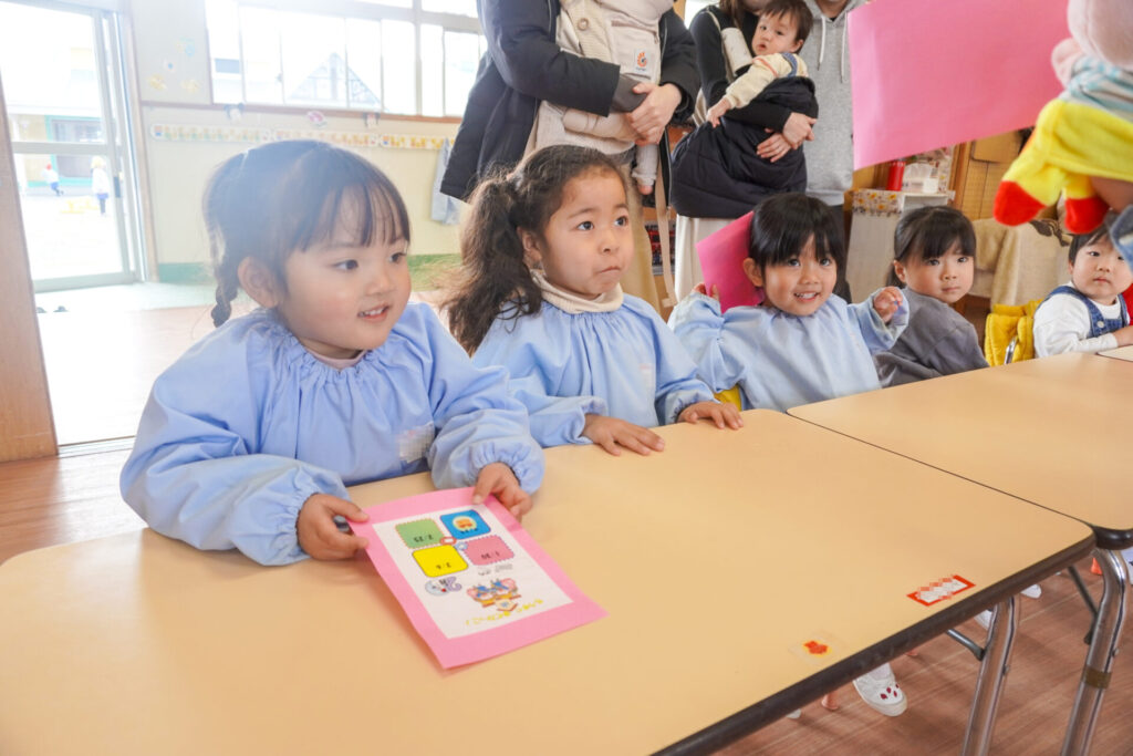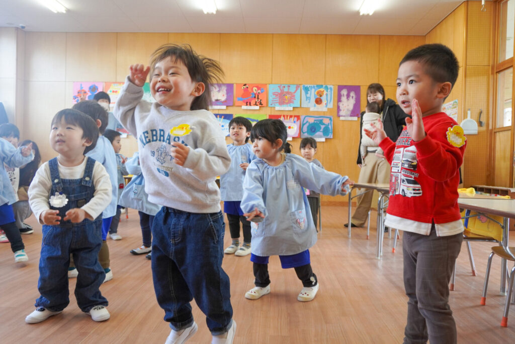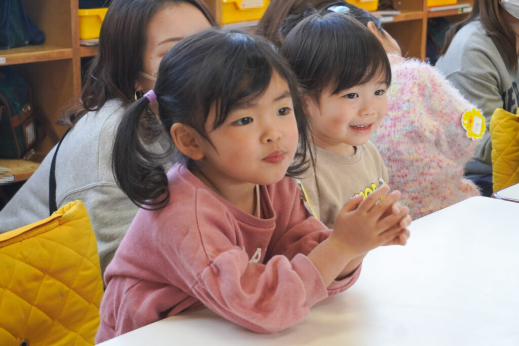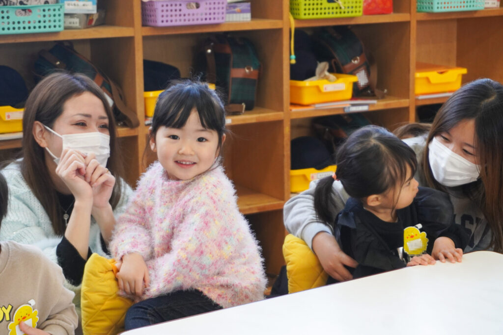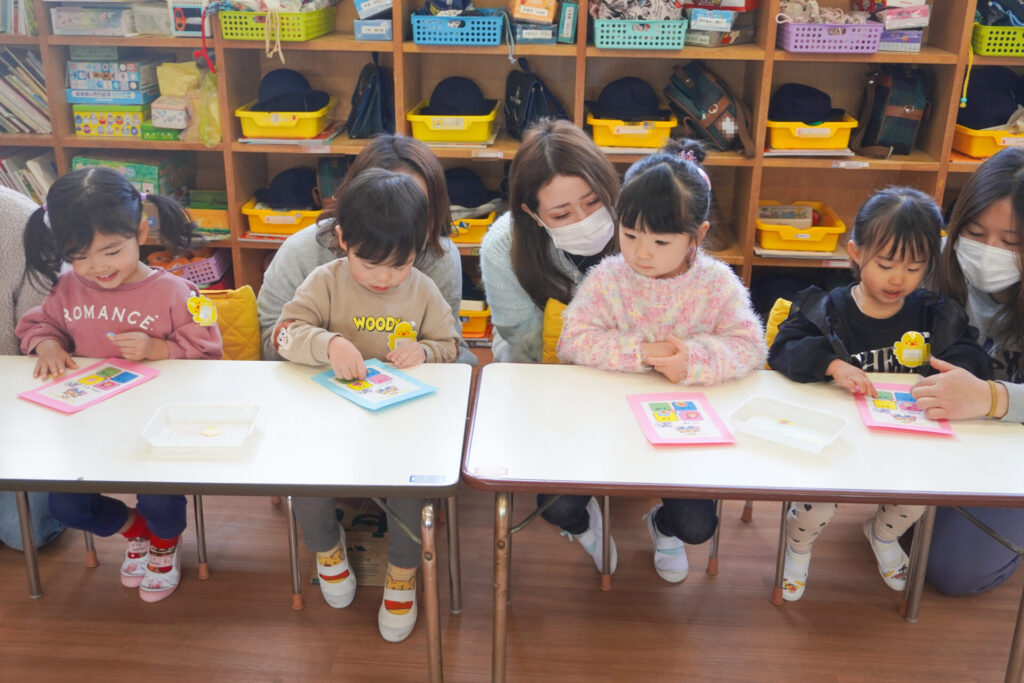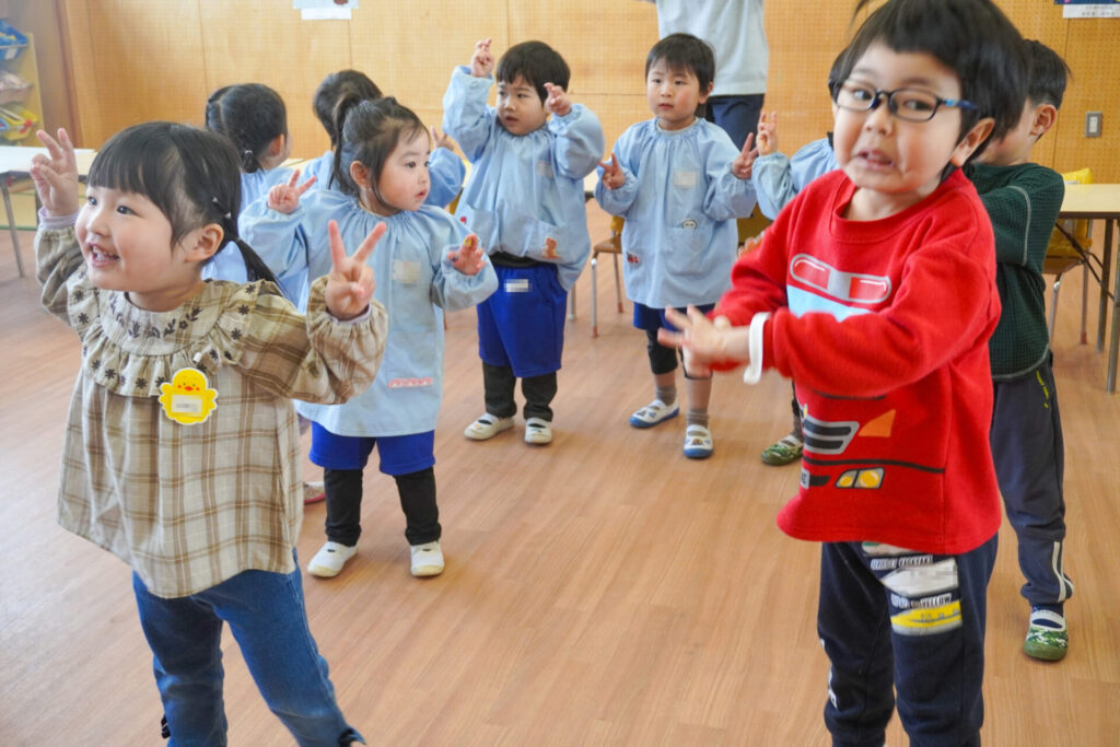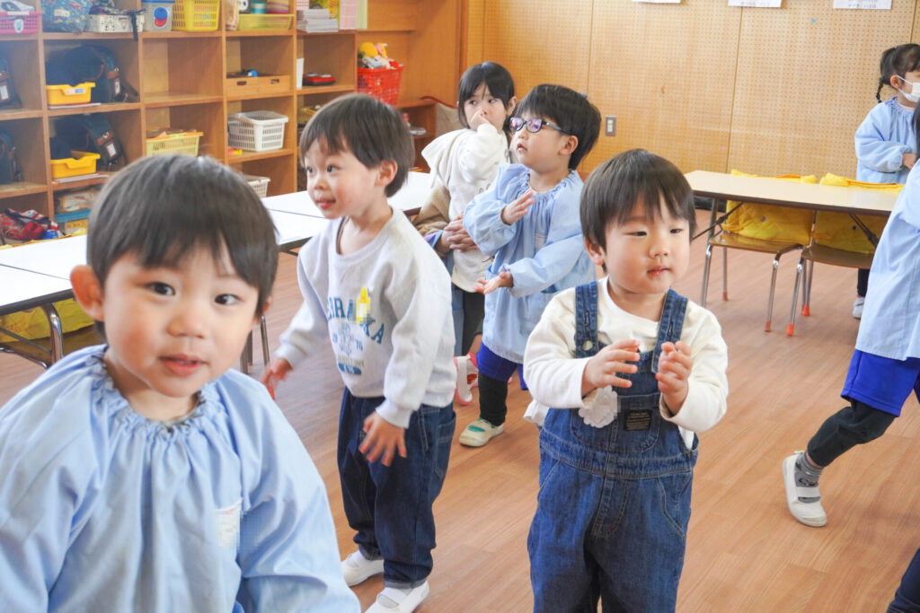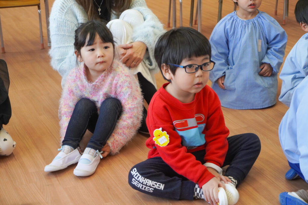 園での様子 年少体験入園(満3歳・新入生) madokahp 2026年2月12日 先週に続き、令和8年度年少入園対象の「体験入園」を行いました。今日は新入生に加えて、満3歳児バンビ組も一緒に参加しました。 同じ保育室に、4月から年少での生活が始まるお友だちが集まり、楽しく過ごしました。朝の挨拶「おはようございます」も大きな声で言えました。職員から名前を呼ばれて大きな声で返事もできましたね。出席カードへのシール貼りは、未就園児教室を通して上手になり、シールを上手に貼ることができました。 「手をたたきましょう」や「パンダうさぎコアラ」の手遊びもまねっこが上手でしたね。「エビカニクス」や「忍者ダンス」、「ブンブンブン」のダンスも職員のまねっこをして、元気に踊ることができました。紙芝居も静かに聞けましたね。新入生もおうちの方から離れ、集まって話を聞ける子が増えてきました。 最後に聞くと「楽しかったー!」と元気な返事を聞くことができて、とても嬉しく思いました。帰りの挨拶「さようなら」も立って言うことができたり、少しずつ体験入園の雰囲気に慣れてきましたね。少しずつ慣れていくことと思いますので、焦らず温かく見守ってあげてくださいね。 4月からいよいよ「まどかっこ」の仲間入り、そしてバンビ組さんはいよいよ「年少組」へ進級ですね。皆さんと一緒に過ごせるのをお兄さん・お姉さんも楽しみにしています。