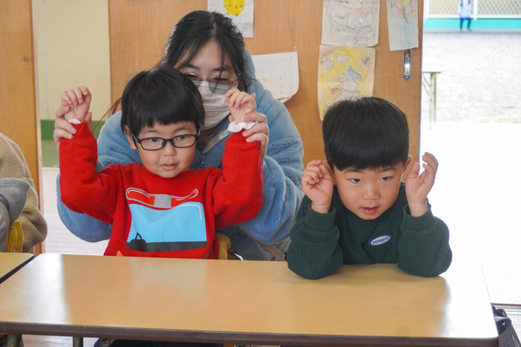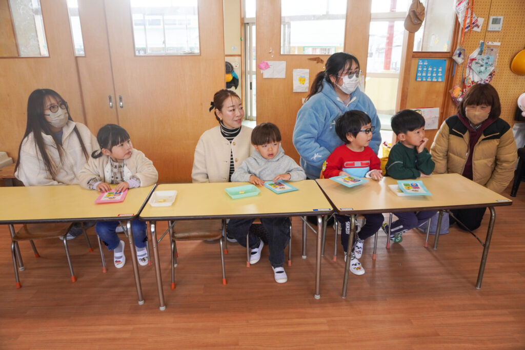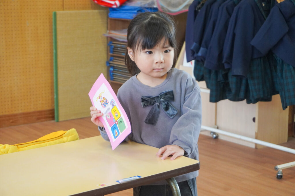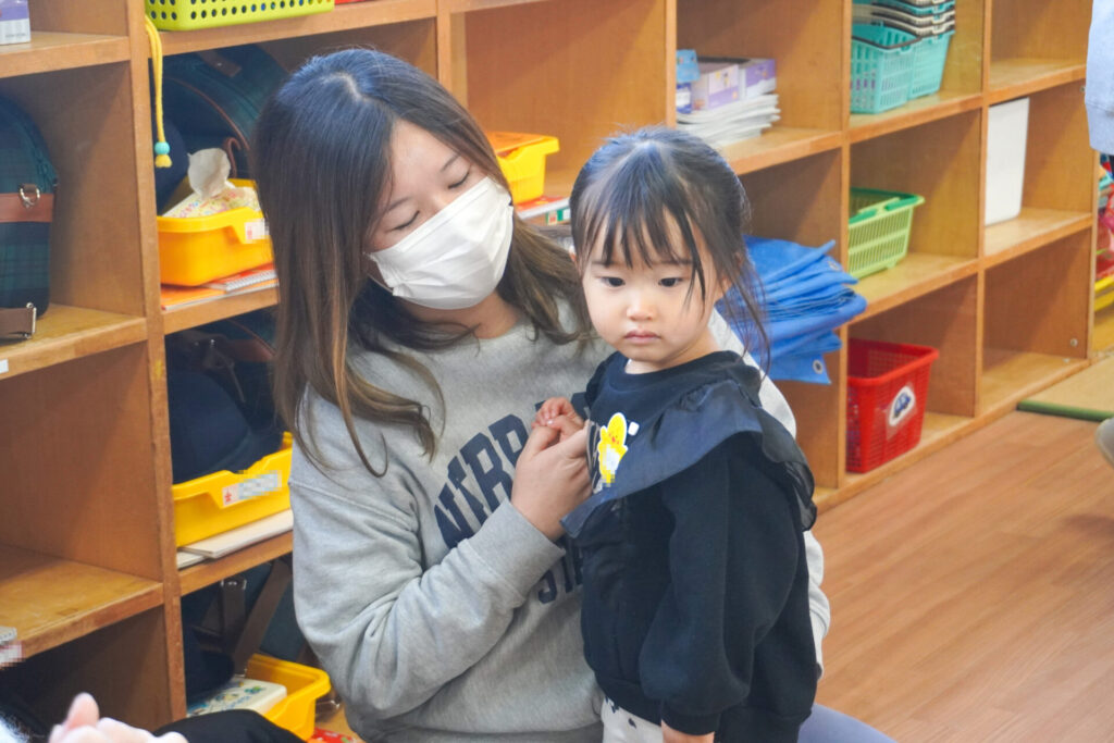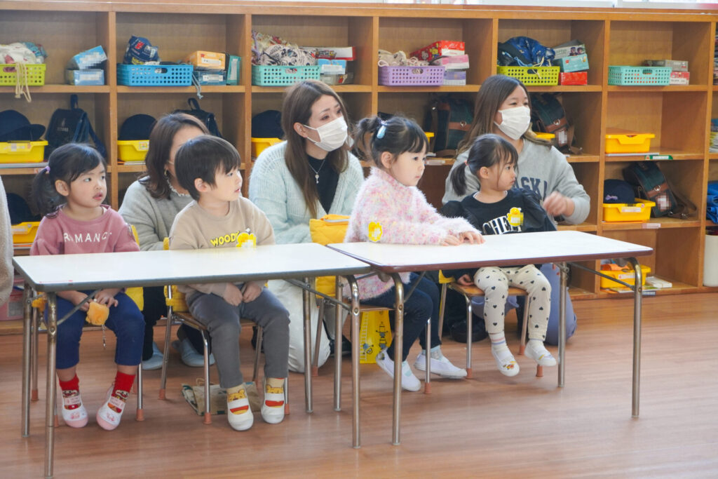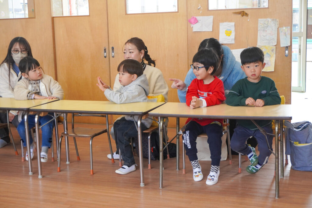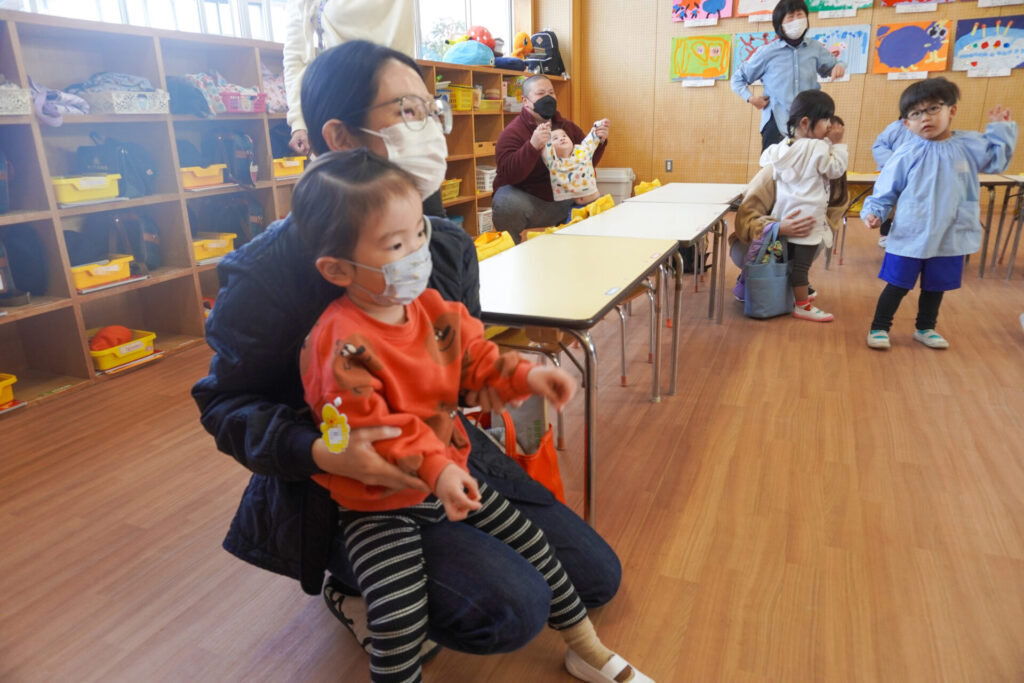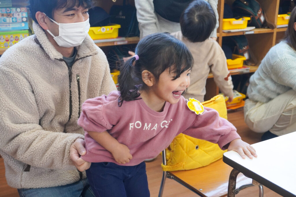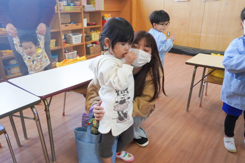 園での様子 年少体験入園(満3歳・新入生) madokahp 2026年2月12日 先週に続き、令和8年度年少入園対象の「体験入園」を行いました。今日は新入生に加えて、満3歳児バンビ組も一緒に参加しました。 同じ保育室に、4月から年少での生活が始まるお友だちが集まり、楽しく過ごしました。朝の挨拶「おはようございます」も大きな声で言えました。職員から名前を呼ばれて大きな声で返事もできましたね。出席カードへのシール貼りは、未就園児教室を通して上手になり、シールを上手に貼ることができました。 「手をたたきましょう」や「パンダうさぎコアラ」の手遊びもまねっこが上手でしたね。「エビカニクス」や「忍者ダンス」、「ブンブンブン」のダンスも職員のまねっこをして、元気に踊ることができました。紙芝居も静かに聞けましたね。新入生もおうちの方から離れ、集まって話を聞ける子が増えてきました。 最後に聞くと「楽しかったー!」と元気な返事を聞くことができて、とても嬉しく思いました。帰りの挨拶「さようなら」も立って言うことができたり、少しずつ体験入園の雰囲気に慣れてきましたね。少しずつ慣れていくことと思いますので、焦らず温かく見守ってあげてくださいね。 4月からいよいよ「まどかっこ」の仲間入り、そしてバンビ組さんはいよいよ「年少組」へ進級ですね。皆さんと一緒に過ごせるのをお兄さん・お姉さんも楽しみにしています。