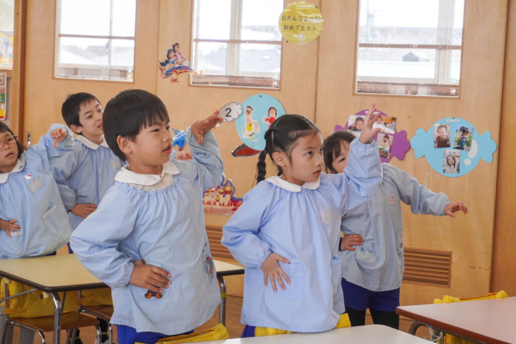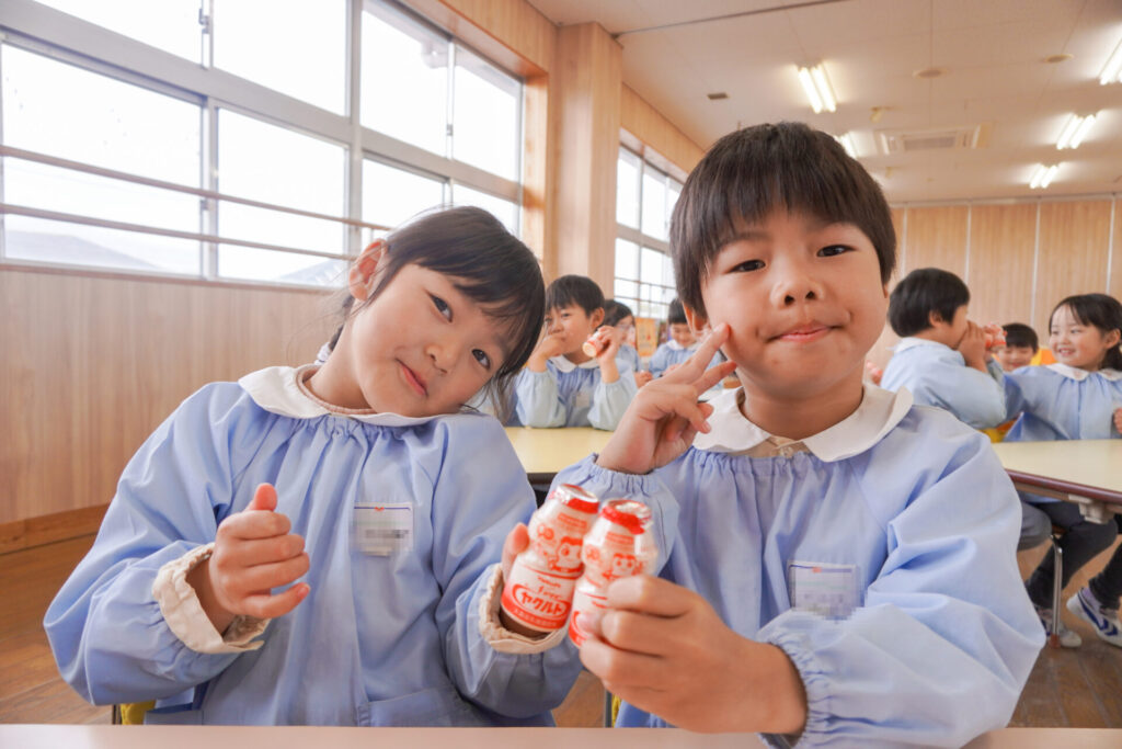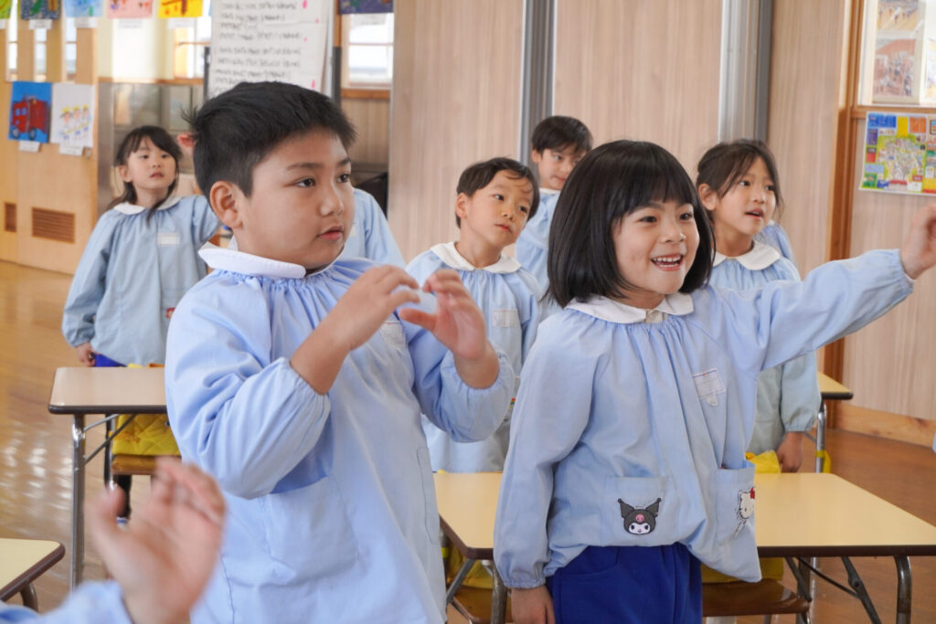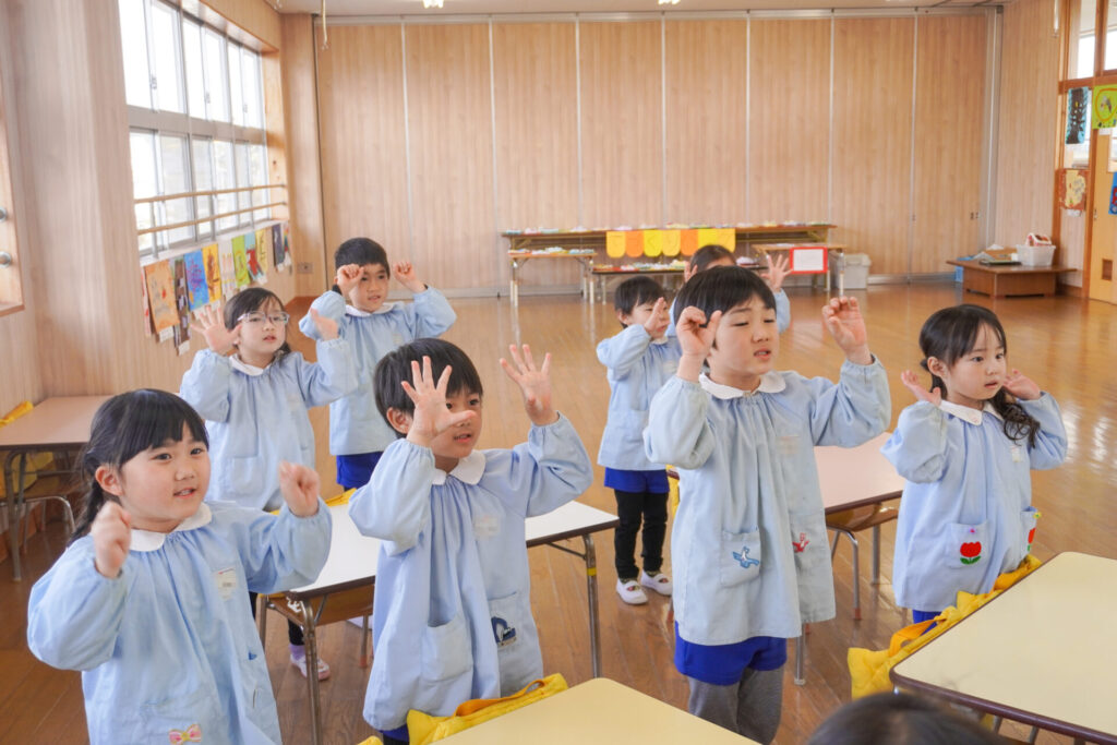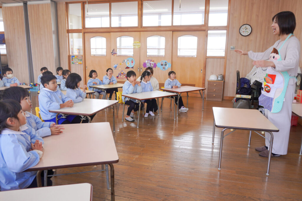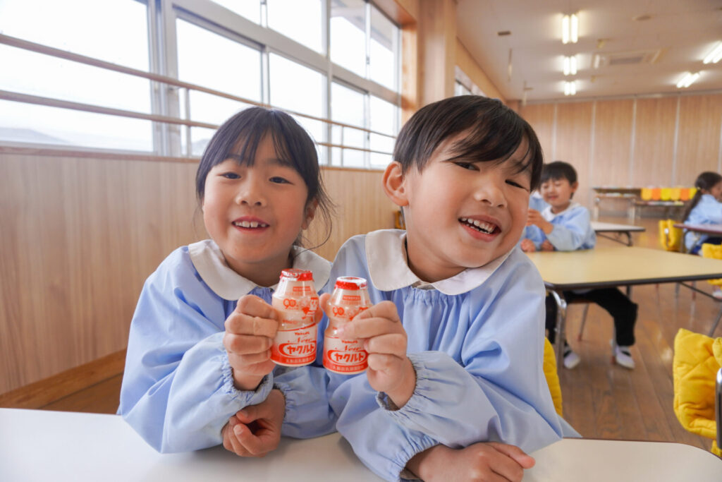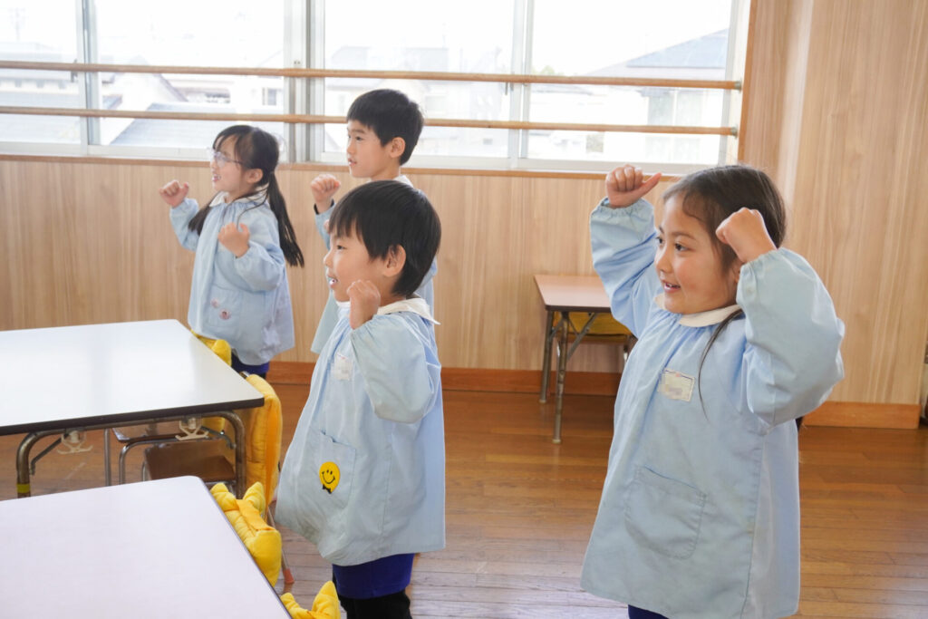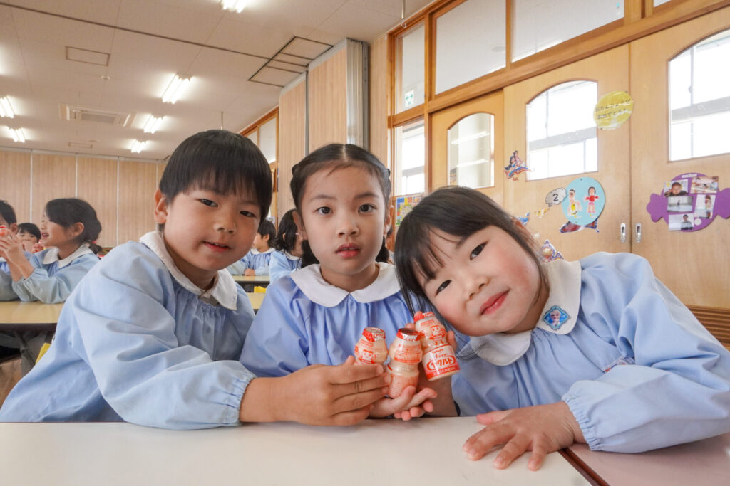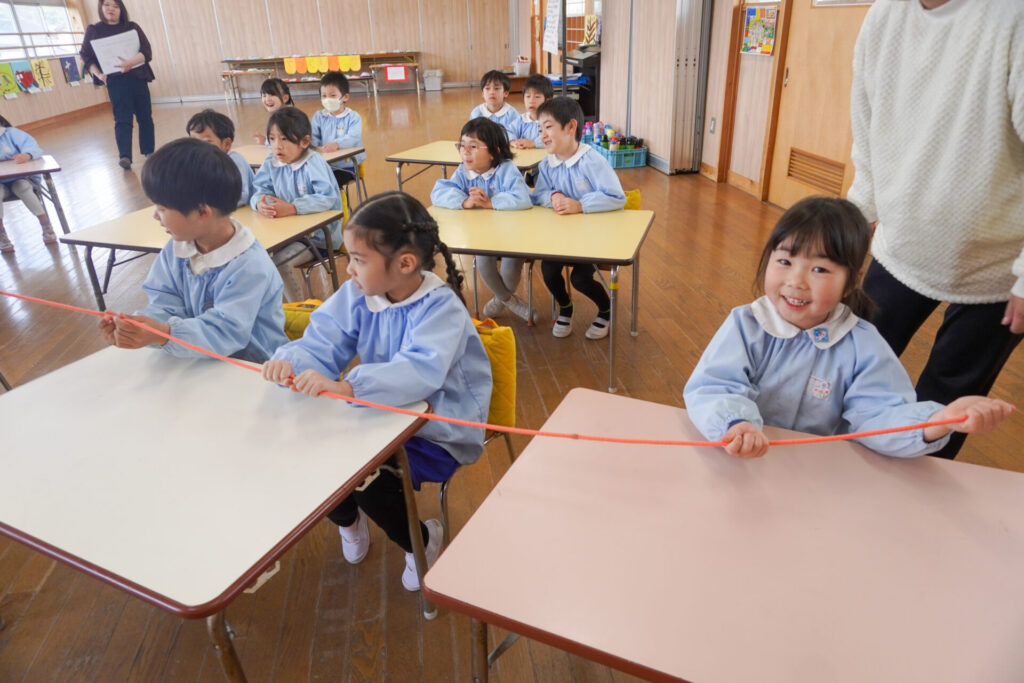 園での様子 ヤクルト健康教室(年長) madokahp 2026年2月17日 今日は、ヤクルト様より講師をお招きし、年長つき組対象に「ヤクルト健康教室」を行いました。エプロンシアターでは、体の中がどうなっているか、口にした食べ物はどのように体内に入っていくのか、分かりやすく教えていただき、胃を通って、小腸、大腸を通って「うんち」になることが分かりました。 「小腸の」を長さを実際に持ってみると、何と、園児8~9名程になり、「えーっ!長い!!」と、驚きと発見の連続でした。 紙芝居では「いい菌」と「わるい菌」の話もありました。手洗いをすることの大切さが再確認できました。 そして、8つのお約束です。子どもたちと一緒に振りをつけながら覚えました。①早寝「すやすや」 ➁早起き「パチパチ」 ③うんち「ぷりぷり」 ④朝ごはん「モリモリ」 ⑤お野菜「モグモグ」 ⑥体「のびのび」 ⑦お水「ごくごく」 ⑧いい菌「ぐびぐび」この8つを守って生活をすることを約束しました。 そして、今日は特別にいただいた「ヤクルト」をみんなで飲みました。「おいしい!」と言って、元気100倍です!まだまだ寒い日が続きますが、残り少ない園生活、毎日元気に登園してください。