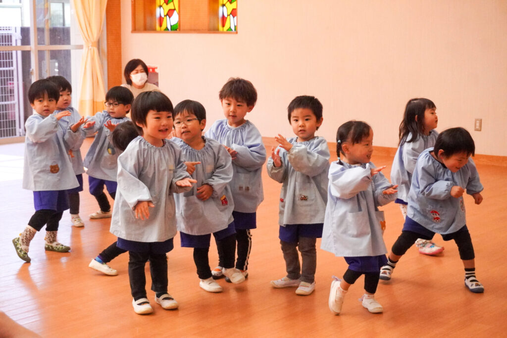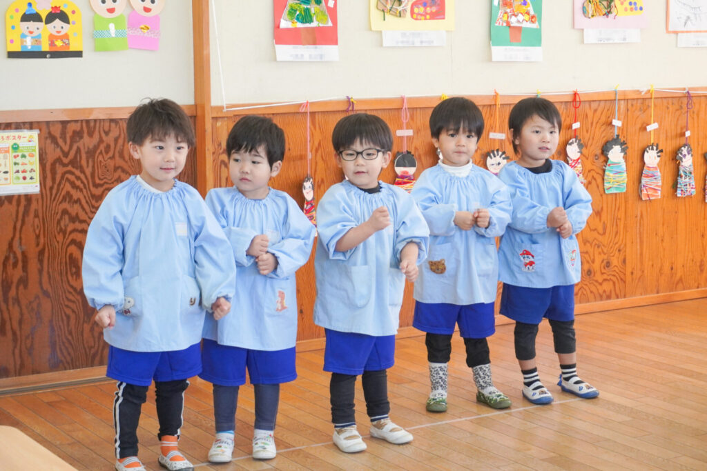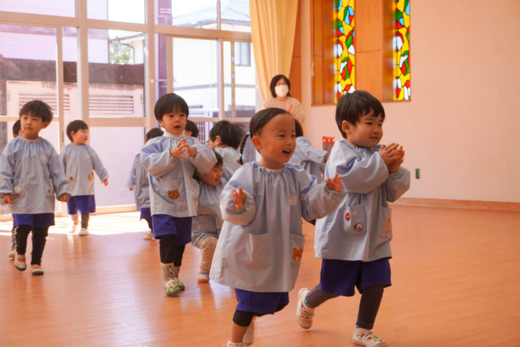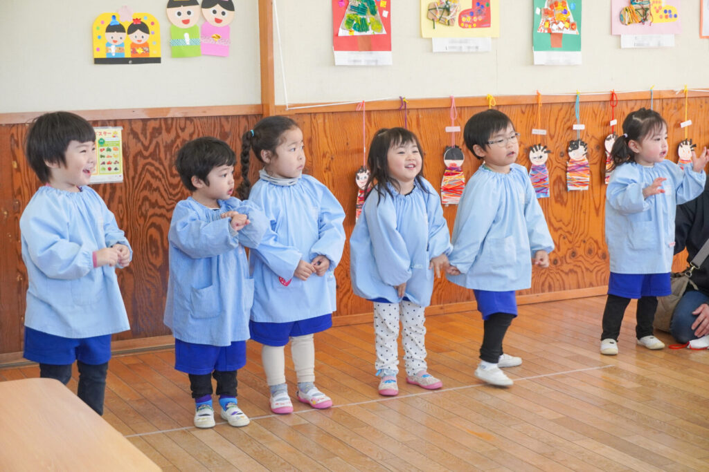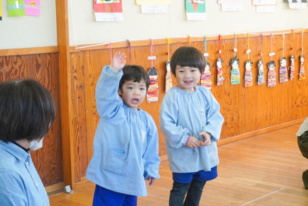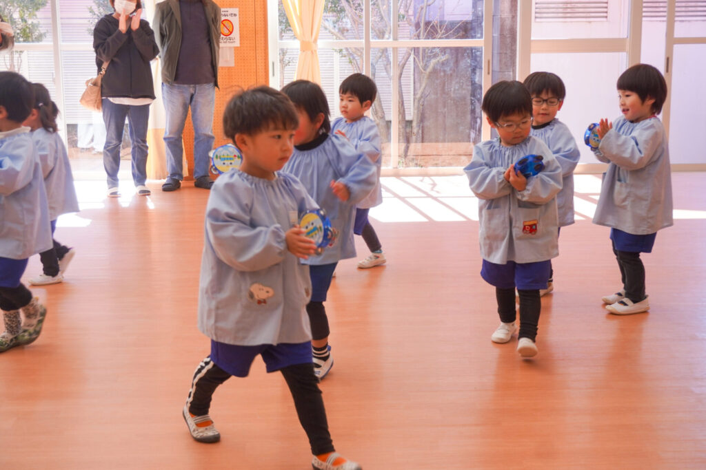 園での様子 参観会(満3歳) madokahp 2026年2月18日 満3歳児バンビ組の今年度最後の参観会を行いました。バンビ組の生活を楽しんでいる姿をたっぷりとおうちの方々に見ていただきました。 朝の会の流れも少しずつ覚えてきました。自分の道具棚や席を覚え、出席カードを広げて待てるようになりました。最近は前で出て名前が言えるようになったり、いろいろな場面で成長を感じます。今日はグループごと前に出て「手遊び」の発表をしました。これまで、たくさんの「手遊び」に親しんできたことがよく分かりました。 バンビ組さんはダンスや歌が大好きです。「忍者ダンス」では足しゅりけん、チョップ…まねっこがとても上手にできました。「おおかみさん」も大好きですね。捕まらないようにホールを元気に走り回ることができました。 楽器遊びも大好きで、今日はタンバリンを持って「おさんぽマーチ」の曲に合わせて鳴らしながら歩くことができました。「はらぺこあおむし」の大型絵本では、すてきな音楽に合わせてお話を聞くことができました。 そして今日は造形作品の展示も行い、バンビ組さんが作った作品を見ていただきました。顔が描けるようになり、バンビ組さんそっくりな人形の完成です。描画作品では、絵の具やスタンプ遊び、シール遊び…それぞれの入園月からの経験を生かした作品を見ていただきました。たくさん誉めてもらえて嬉しかったですね。 4月からは年少組に進級ですね。体調には気をつけて毎日元気に登園してくださいね。バンビ組保護者の皆様、参観会にお越しいただき、ありがとうございました。