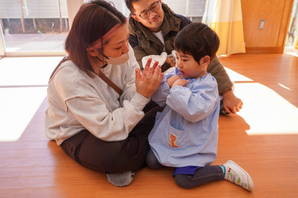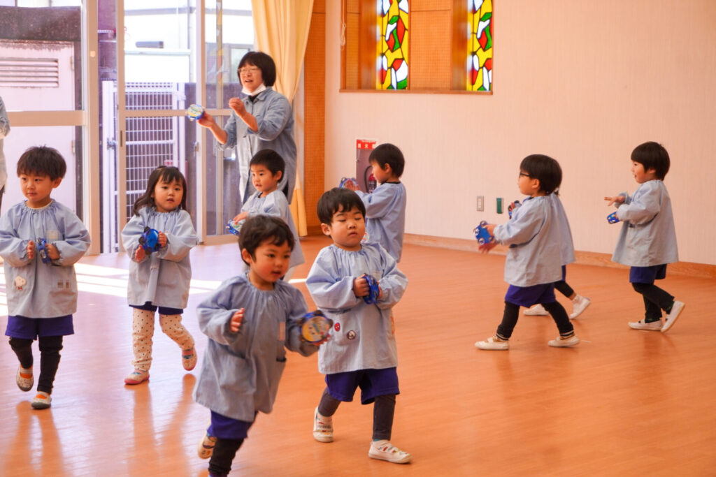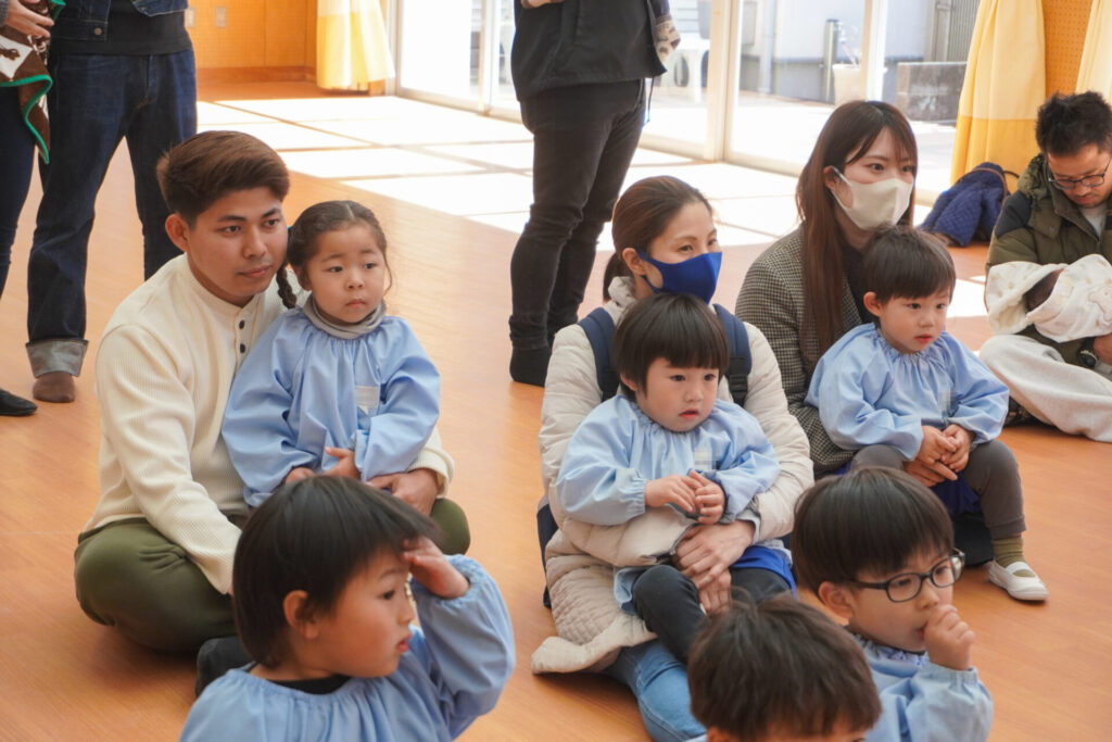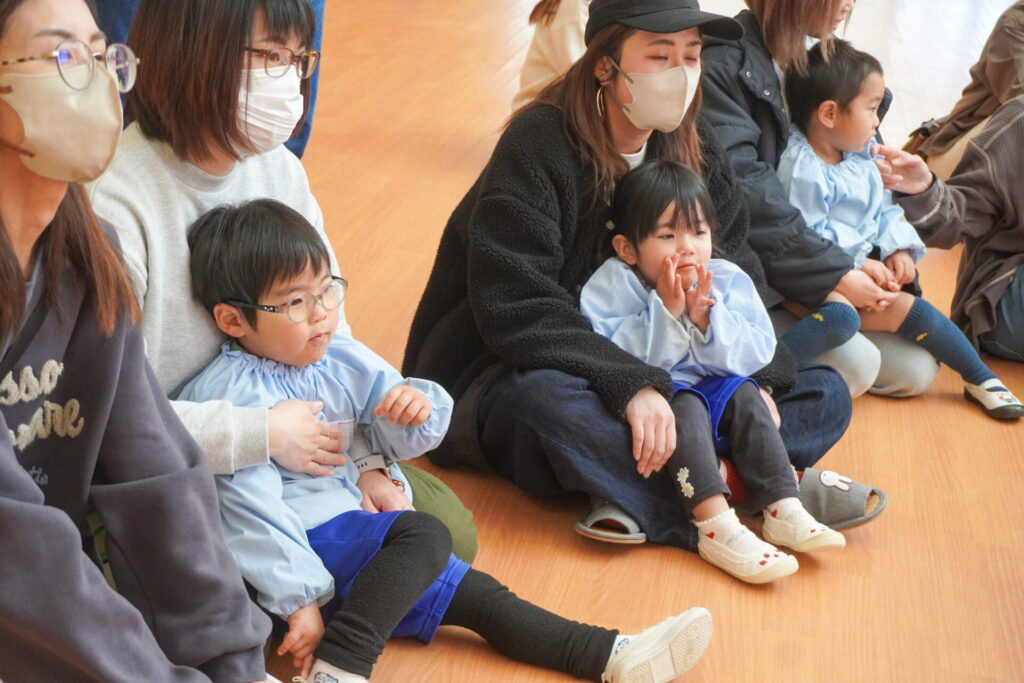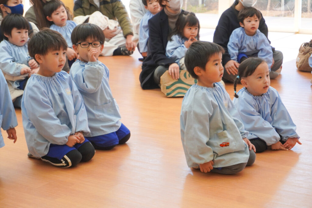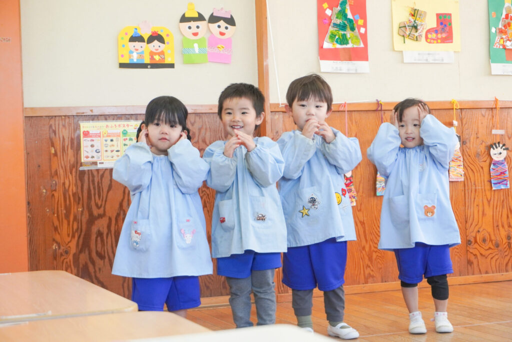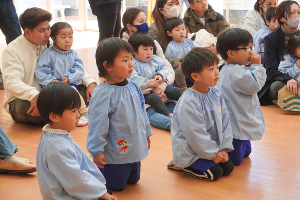 園での様子 参観会(満3歳) madokahp 2026年2月18日 満3歳児バンビ組の今年度最後の参観会を行いました。バンビ組の生活を楽しんでいる姿をたっぷりとおうちの方々に見ていただきました。 朝の会の流れも少しずつ覚えてきました。自分の道具棚や席を覚え、出席カードを広げて待てるようになりました。最近は前で出て名前が言えるようになったり、いろいろな場面で成長を感じます。今日はグループごと前に出て「手遊び」の発表をしました。これまで、たくさんの「手遊び」に親しんできたことがよく分かりました。 バンビ組さんはダンスや歌が大好きです。「忍者ダンス」では足しゅりけん、チョップ…まねっこがとても上手にできました。「おおかみさん」も大好きですね。捕まらないようにホールを元気に走り回ることができました。 楽器遊びも大好きで、今日はタンバリンを持って「おさんぽマーチ」の曲に合わせて鳴らしながら歩くことができました。「はらぺこあおむし」の大型絵本では、すてきな音楽に合わせてお話を聞くことができました。 そして今日は造形作品の展示も行い、バンビ組さんが作った作品を見ていただきました。顔が描けるようになり、バンビ組さんそっくりな人形の完成です。描画作品では、絵の具やスタンプ遊び、シール遊び…それぞれの入園月からの経験を生かした作品を見ていただきました。たくさん誉めてもらえて嬉しかったですね。 4月からは年少組に進級ですね。体調には気をつけて毎日元気に登園してくださいね。バンビ組保護者の皆様、参観会にお越しいただき、ありがとうございました。