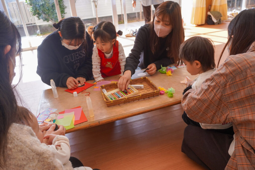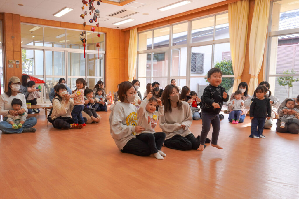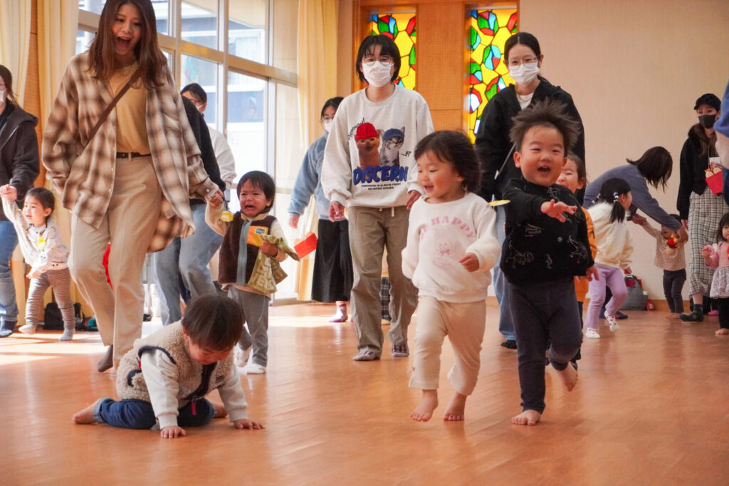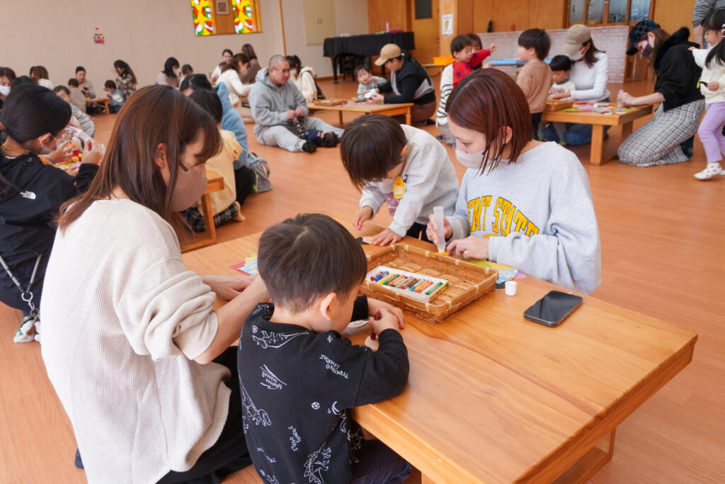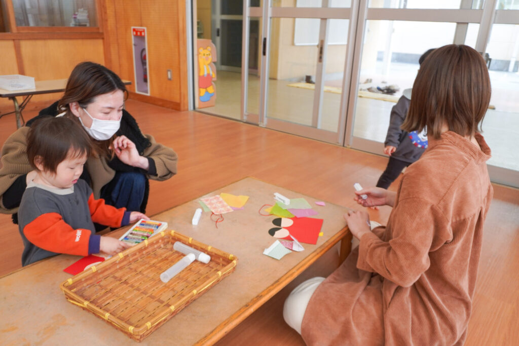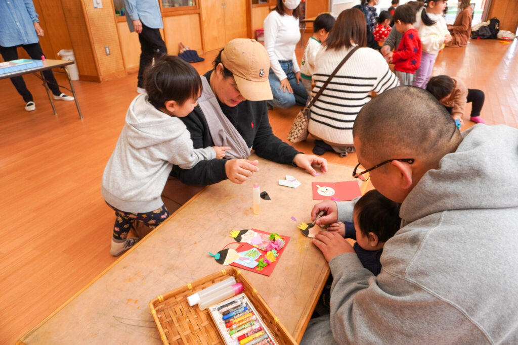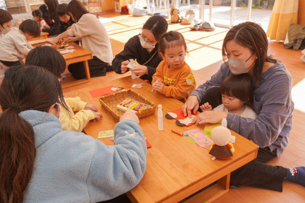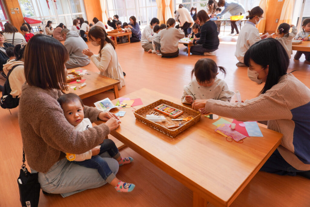 未就園児 ひな飾り作り(にこぴよちゃん) madokahp 2026年2月24日 ♪あかりをつけましょ ぼんぼりに~ ホールにひなまつりの音楽が流れています。今日の「にこぴよちゃん」は親子で「ひな飾り作り」を行いました。描いたり、貼ったりしながら、とてもかわいらしい「おだいりさま」と「おひなさま」が完成しました。 2人並んだかわいらしい「ひな飾り」に、にこぴよちゃんの益々の健康を願わずにはいられません。これからもよく遊んでよく食べて、すくすく大きくなってくださいね。 手遊びやダンスも大好きで、「エビカニクス」の音楽が流れると、楽しく体を動かす姿が見られ、嬉しく思いました。今日のお土産は「絵本」でした。大事に手に取っていた姿がとてもかわいらしかったです。暦の上ではもう春です。ぽかぽか暖かい春が待ち遠しいですね。 次回は来週3/3(火)10:00~「にこぴよちゃん おしまいの会」です。年少ゆり組・ばら組がにこぴよちゃんの前でお楽しみの発表をする予定です。初めての方、大歓迎です!ぜひ遊びに来てください!