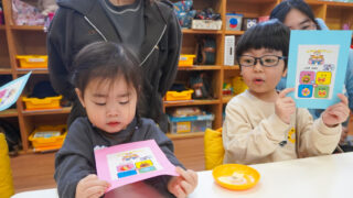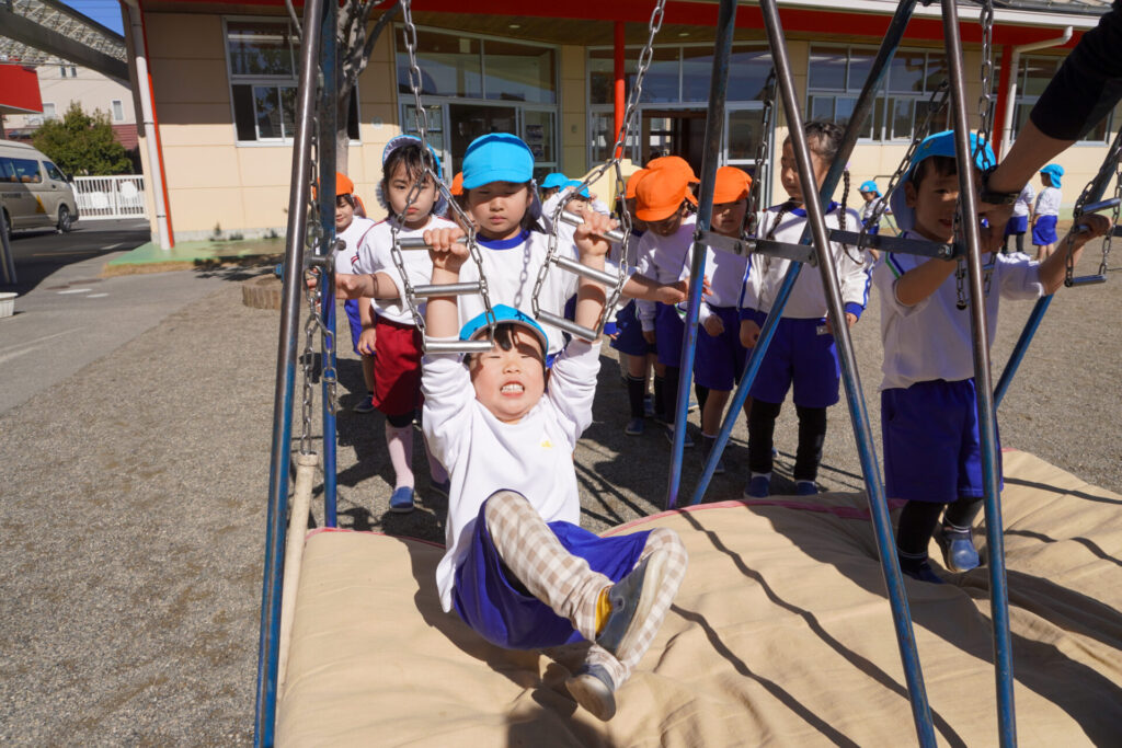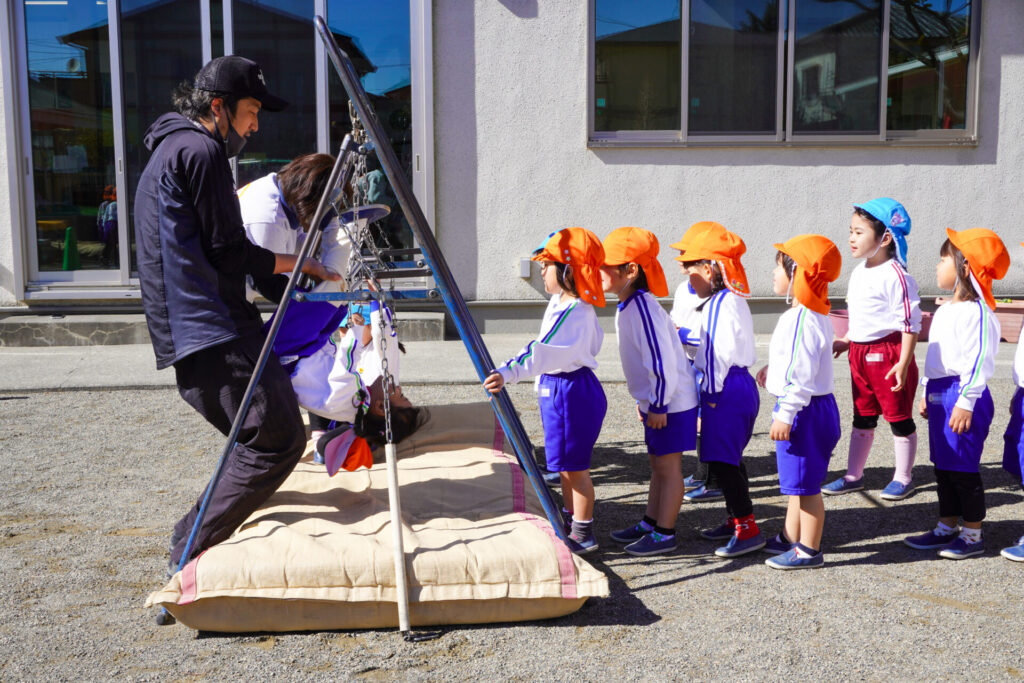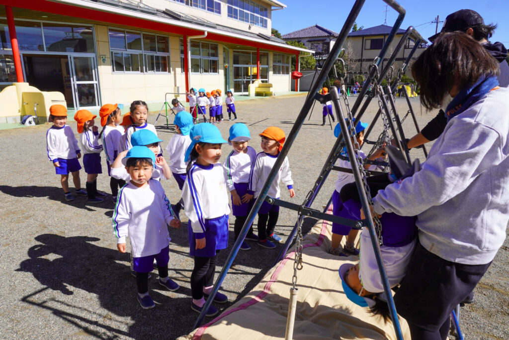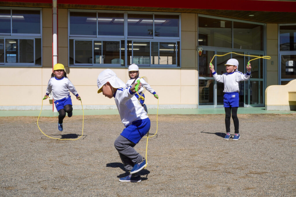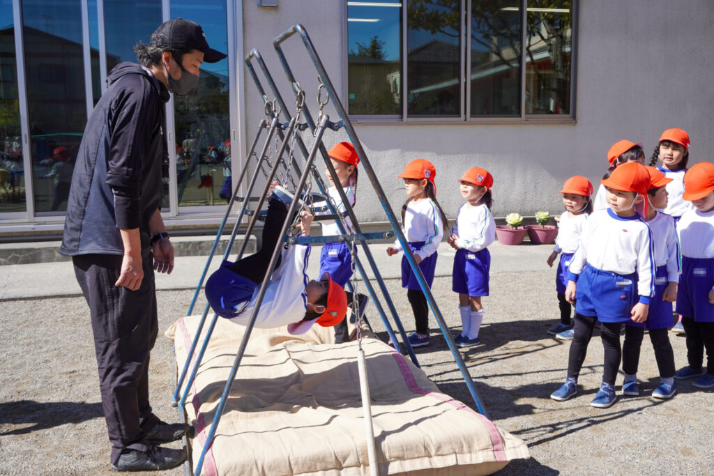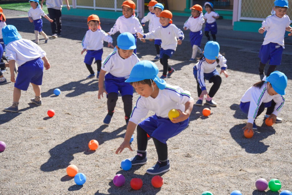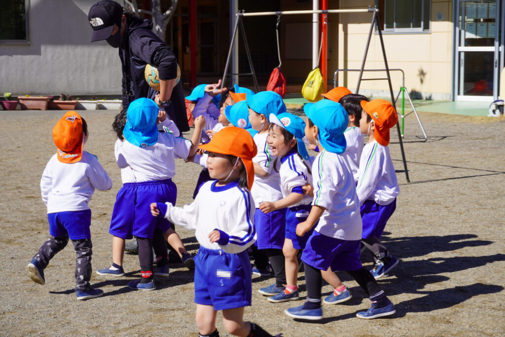 園での様子 体育遊び(講師保育) madokahp 2026年2月26日 今日は課外教室講師のスマイルキッズ・大村哲平先生による「体育遊び」を行いました。 年少ゆり組・ばら組は、集団での約束を守れるようになりました。ボール集め競争では、1個でも多く集められるよう、あっという間にたくさんのボールをマットへ集めることができました。 器具のサーキット遊びでは、吊り輪、跳び箱ジャンプ、マットゴロゴロ、パンチング、鉄棒ぶら下がりのトレーニングを回転よくできました。 年中さくら組は、逆上がりができる子が増え、諦めずに挑戦することが増えてきました。跳び箱、マットの前転など、スピーディーにきれいに器具遊びができました。ペアの友だちとのボール遊びでは、キャッチしたり、投げたり、パンチ落としをしたり、遊びのルールをすぐに理解して取り組めました。 年長つき組は、園生活の集大成に近づいてきました。跳び箱は自分の跳べる高さ、跳んでみたい高さを選んで跳んだり、ボールのパンチングではパンチ力も強くなりました。 縄跳びも、後ろ回し、ケンケン跳び、あや跳びなど、多岐に渡りできる子が増えてきました。 今日は真っ青な空が広がり、クラス帽子もきれいに映えていました。園庭で元気に「体育遊び」へ参加できて楽しかったですね。明日も幼稚園で元気いっぱい遊びましょうね。