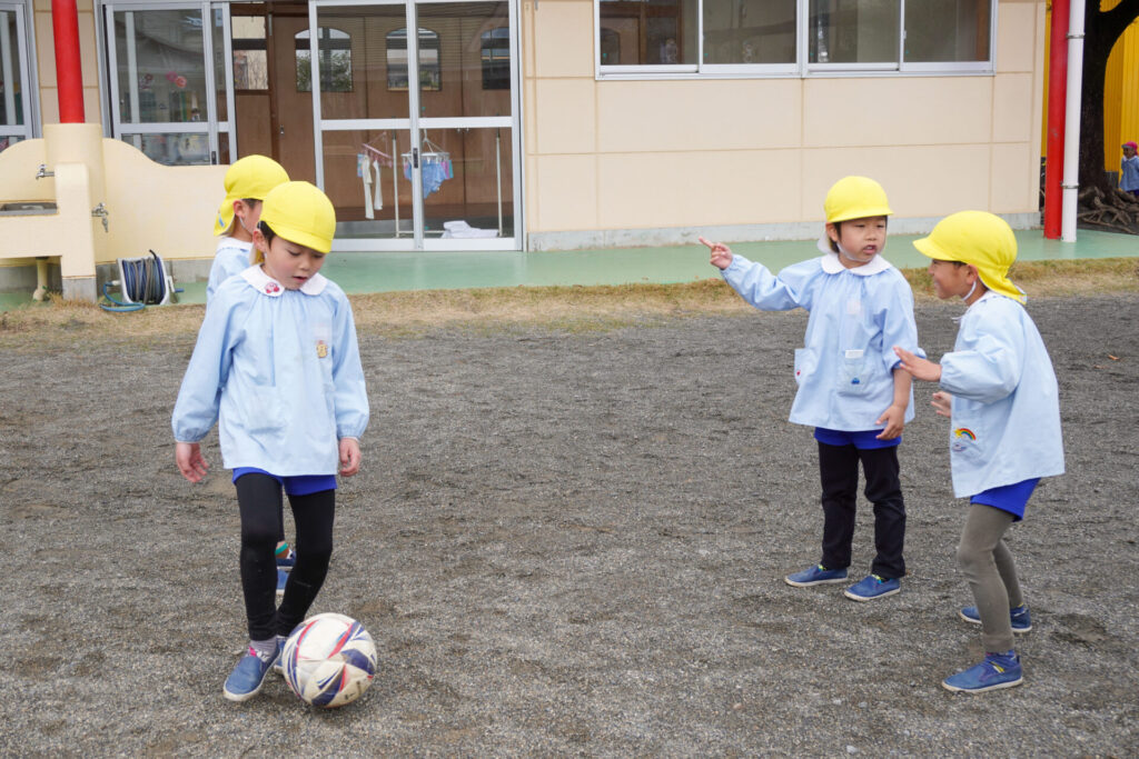 サッカーも大好きです!ドリブルも上手になってきました。明日も幼稚園で元気いっぱい遊びましょうね。
