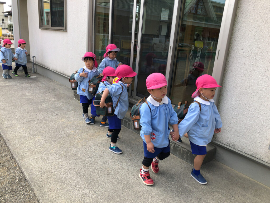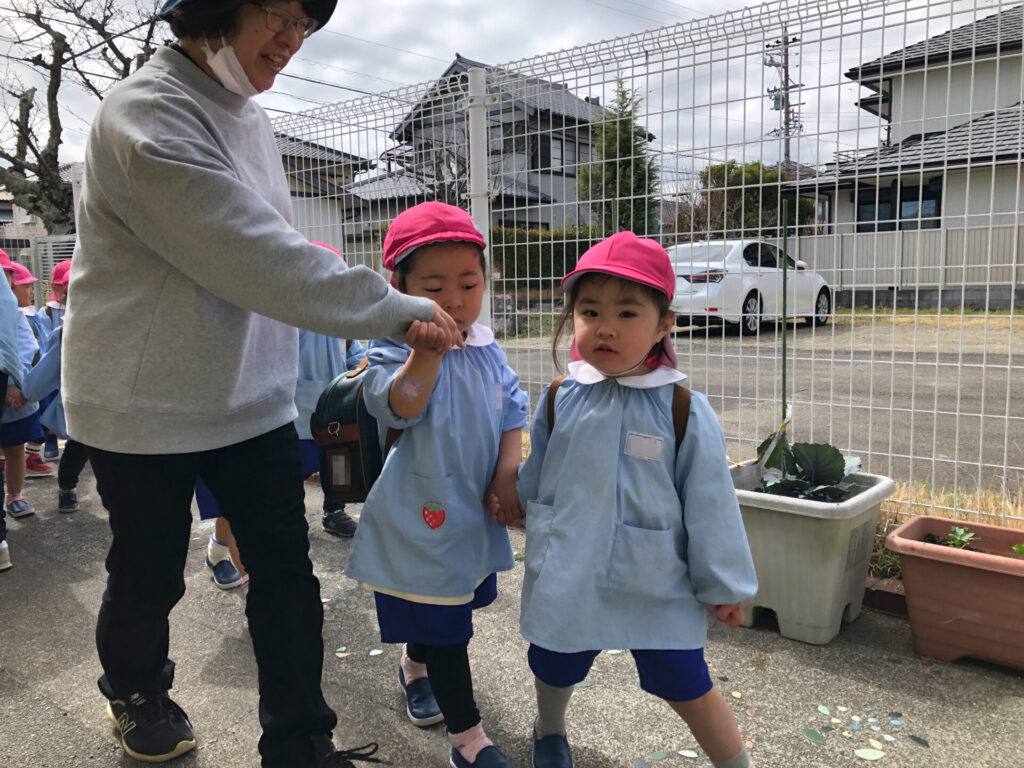 もうすぐ年少組へ進級します。バンビ組に入園してできることも増えてきました。連休はゆっくり休んで、来週も元気いっぱい遊びましょうね。