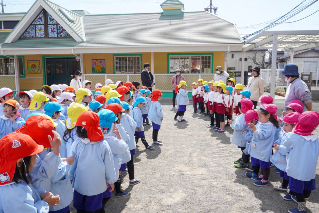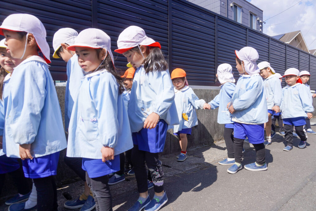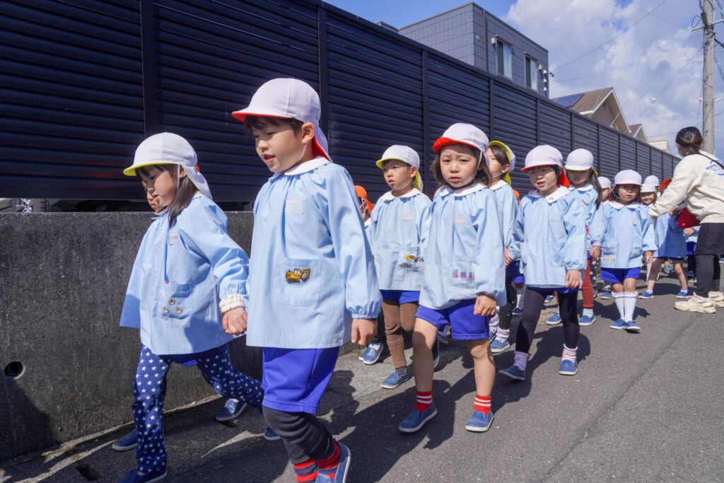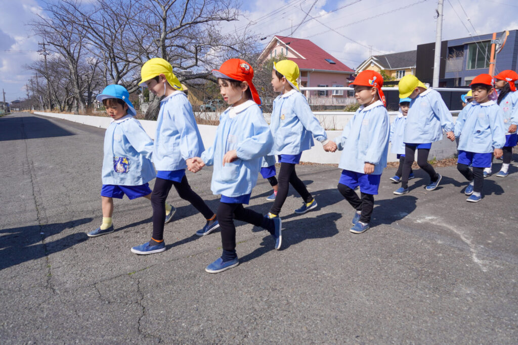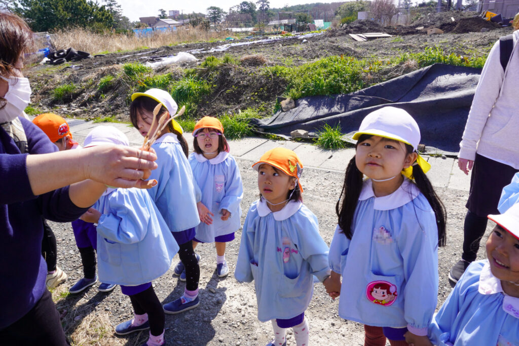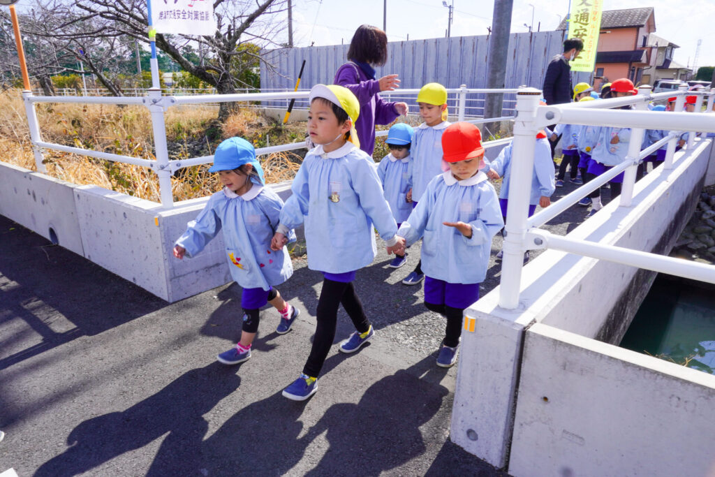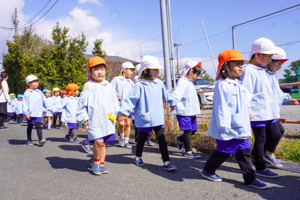 園での様子 ハイク~春探し~ madokahp 2026年3月10日 年長つき組・年中さくら組・年少ゆり組・ばら組で園近くへハイクへ行きました。今日は「春探しのハイク」です。「いちまるグランド」では、藤枝MYFCの選手が練習中でした。「頑張ってー!」と、大きな声で応援しました。 道中には「春」が少しずつ顔を出し始めました。まどかっこを歓迎してくれたかのように、「つくし」がたくさん顔を出していました。ぽかぽか陽気に誘われて、まどかっこの笑顔も満開です! 卒園・進級まであと少し…今しかないかかわりを通して、年長つき組はひとつでも多くのすてきな思い出作りを、年中さくら組・年少ゆり組・ばら組は、進級への期待が膨らむことを願っています。明日も幼稚園でいっぱい遊びましょうね。