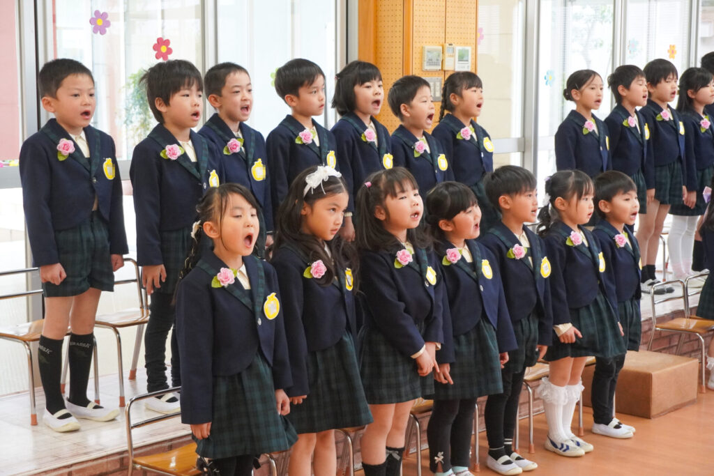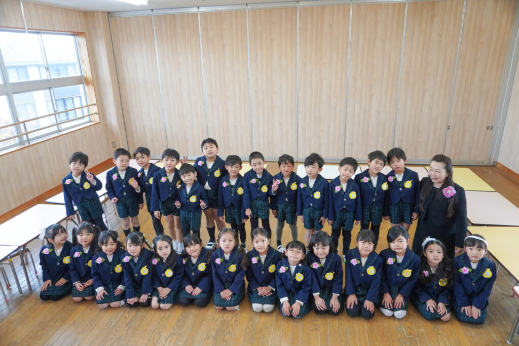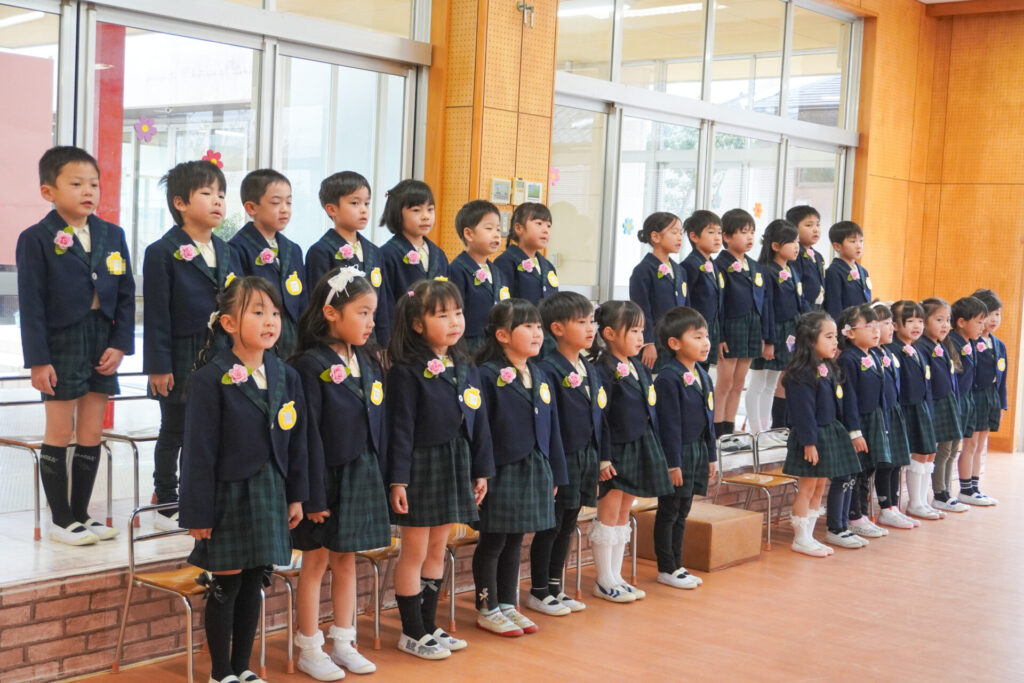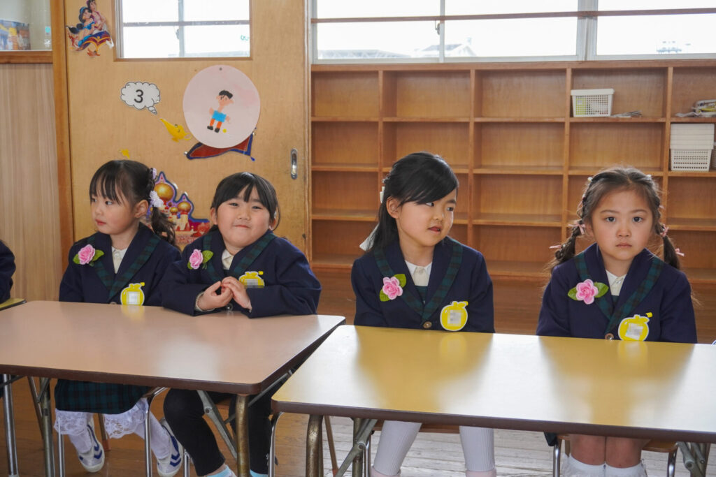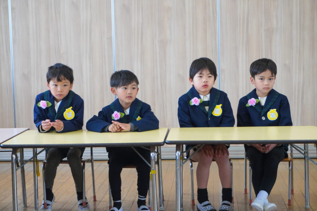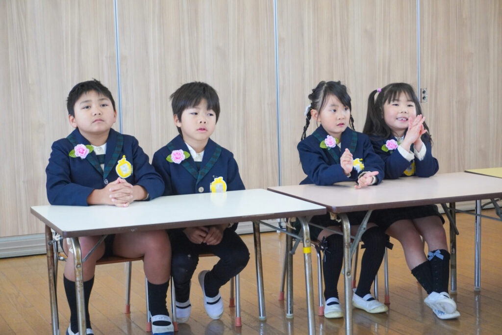 入園当初は、椅子に座ると足が床に届かず、ぶらぶらさせていた子どもたちが、今では堂々とした姿で式に臨んでいる様子に、改めて成長の大きさを感じました。