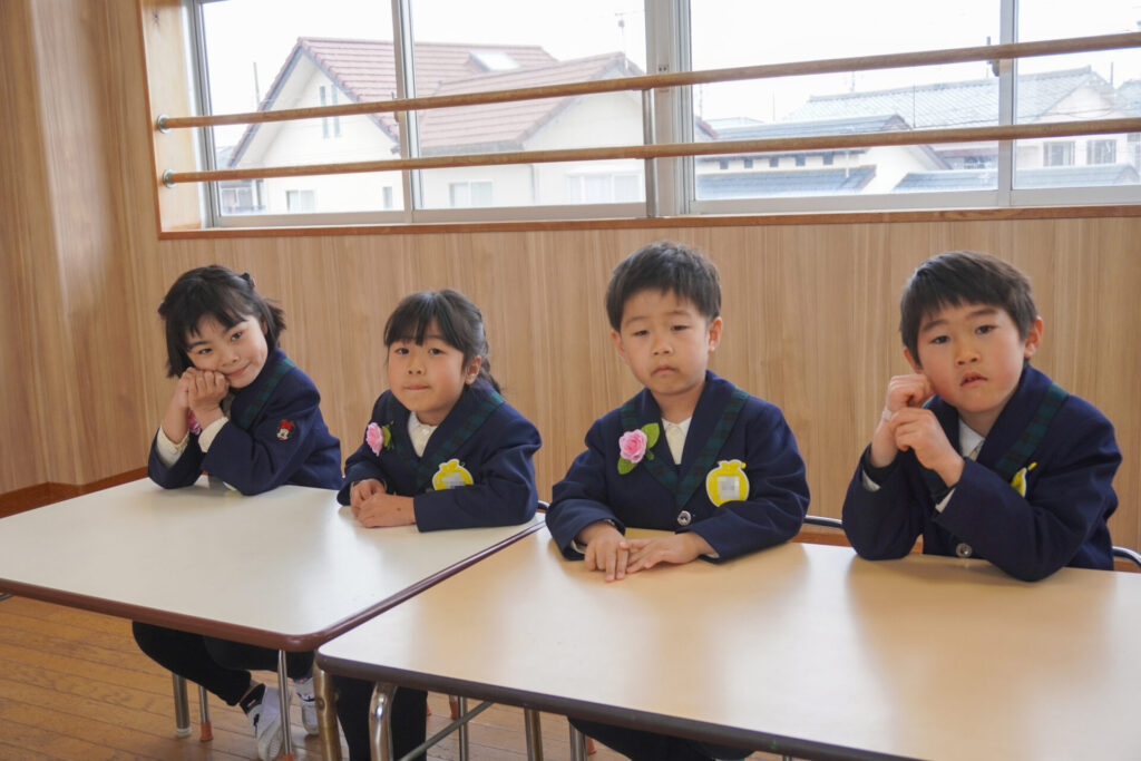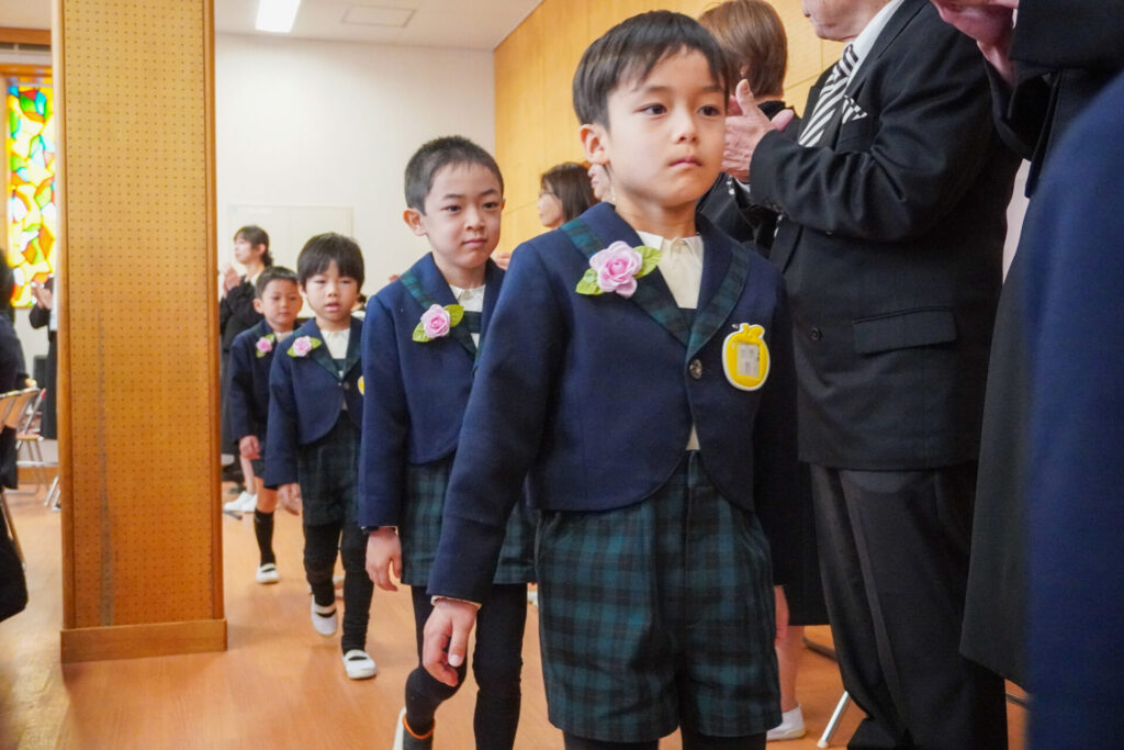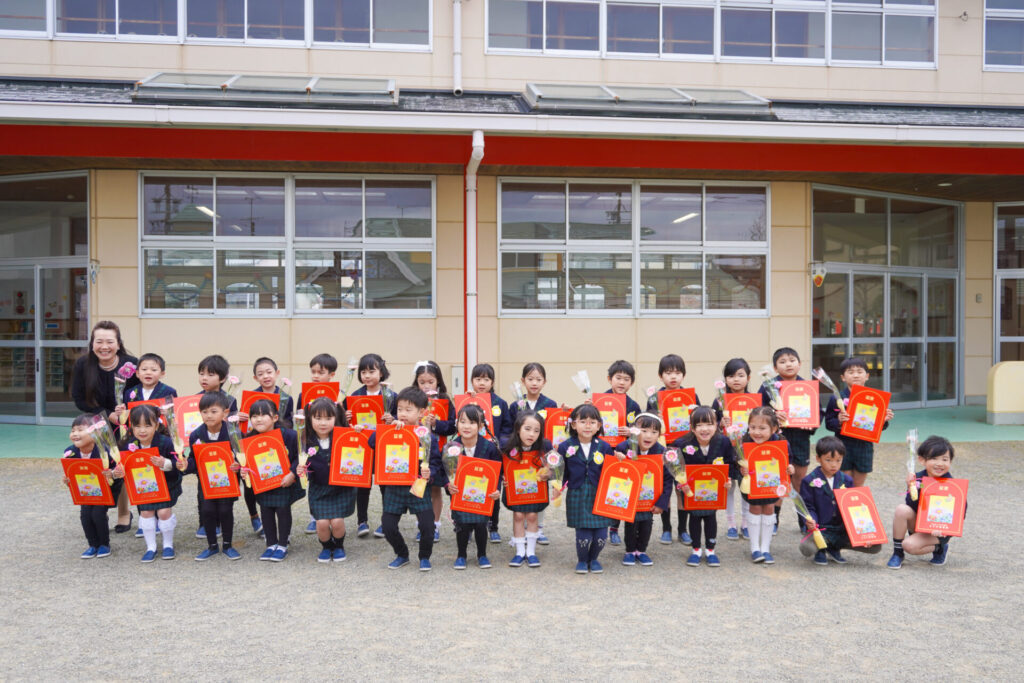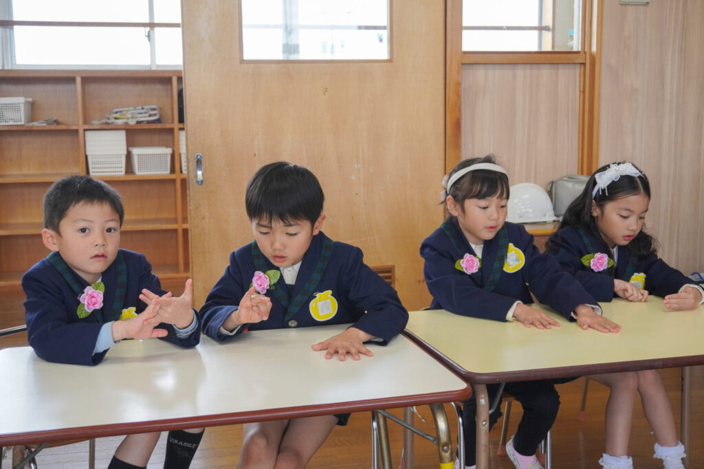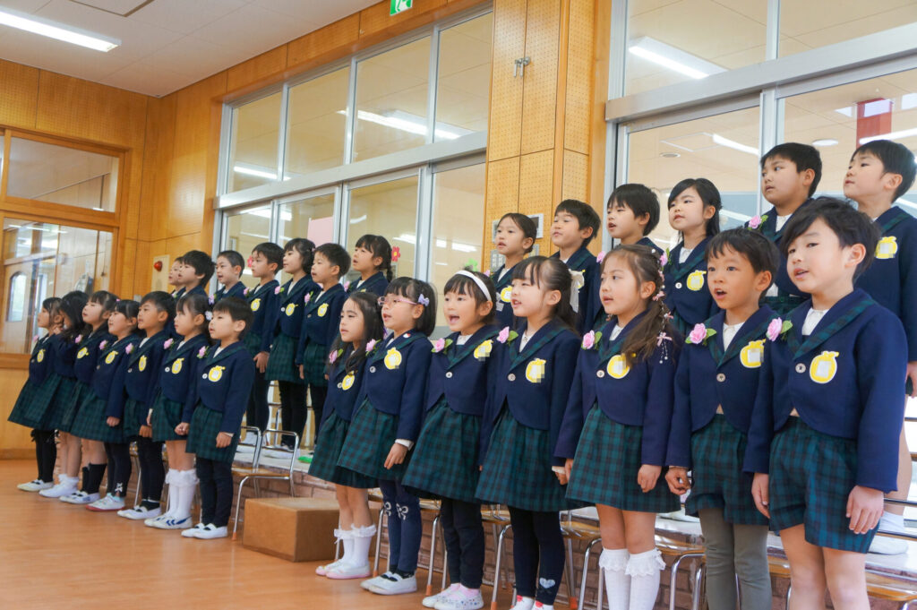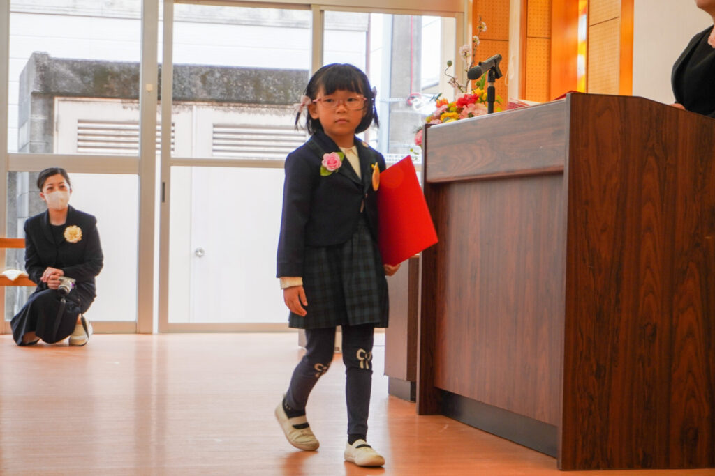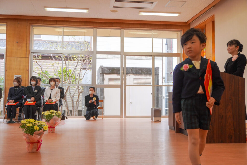 入園当初は、椅子に座ると足が床に届かず、ぶらぶらさせていた子どもたちが、今では堂々とした姿で式に臨んでいる様子に、改めて成長の大きさを感じました。