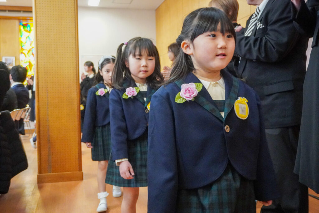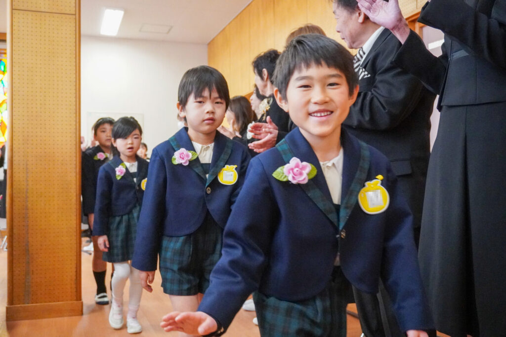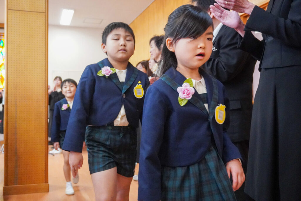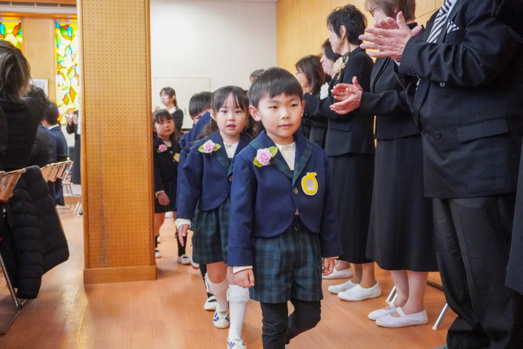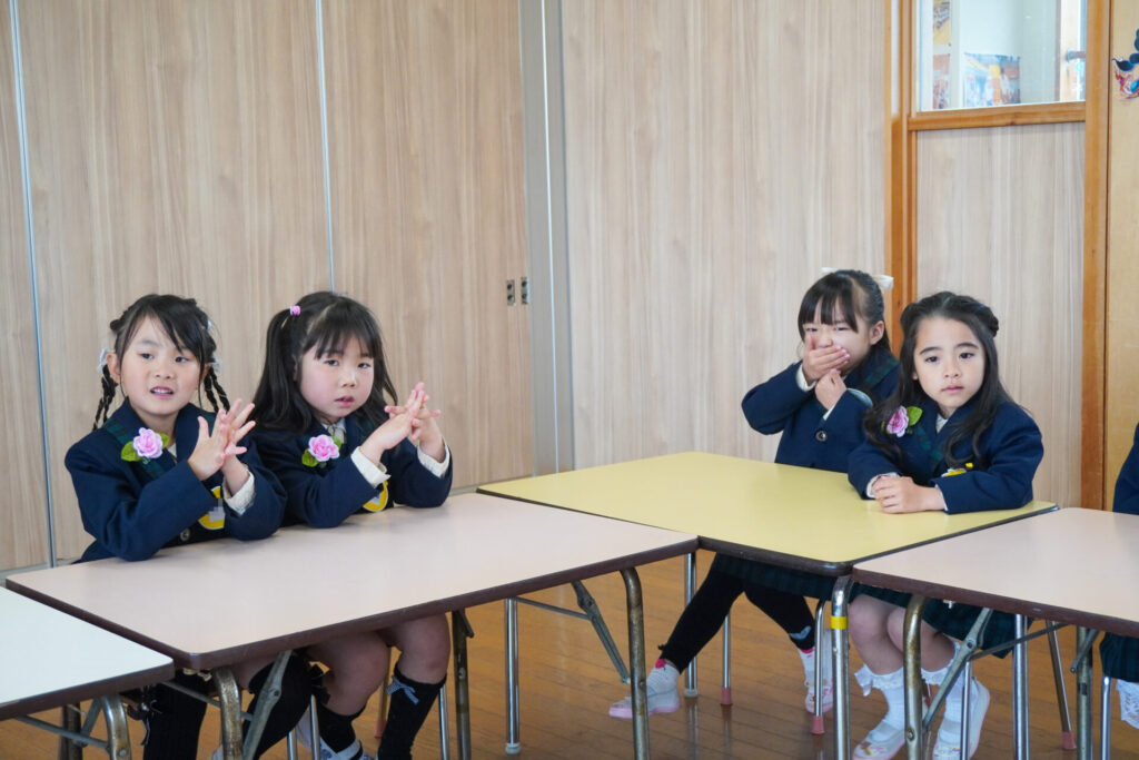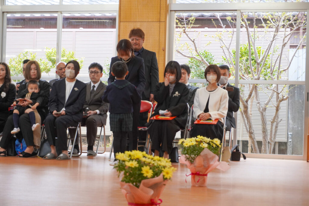 入園当初は、椅子に座ると足が床に届かず、ぶらぶらさせていた子どもたちが、今では堂々とした姿で式に臨んでいる様子に、改めて成長の大きさを感じました。