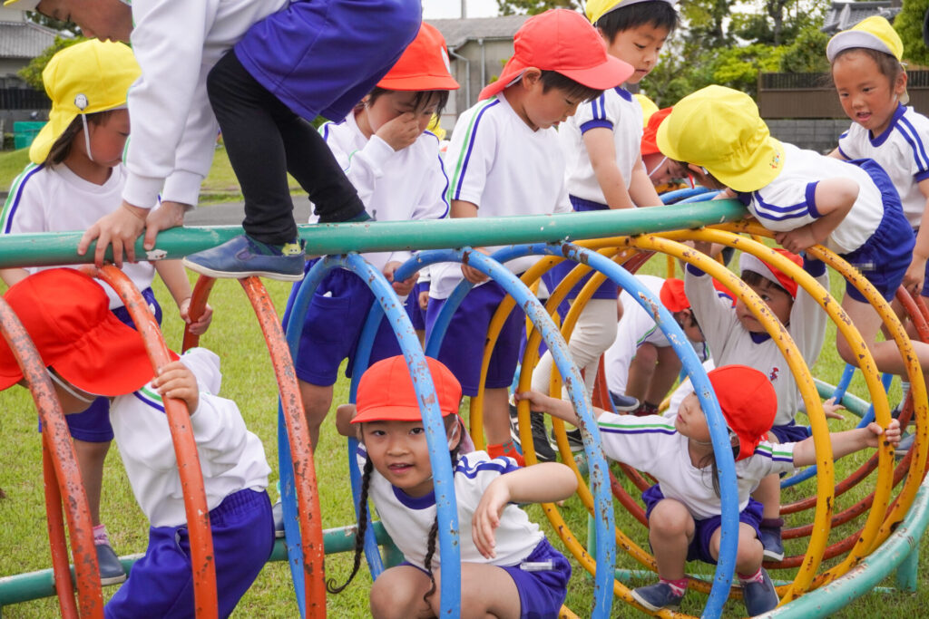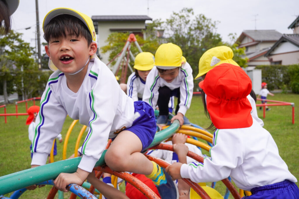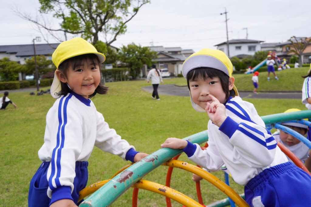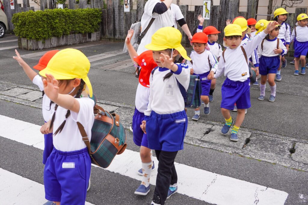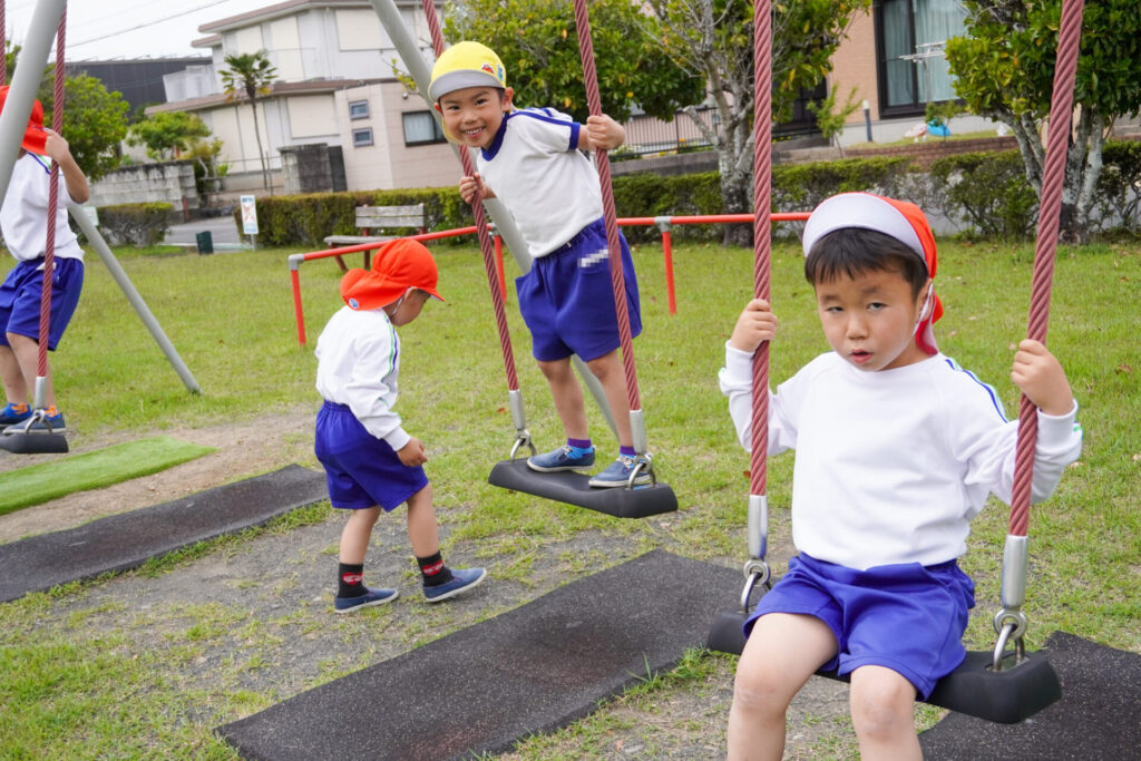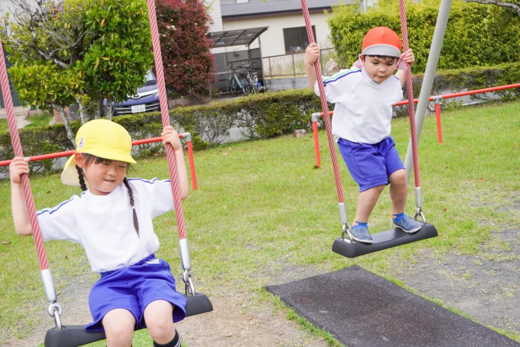 園での様子 ハイク(年長・年中) madokahp 2026年4月21日 今日もいい天気になり、年長つき組・年中さくら組が園近くの「港公園」へハイクへ行きました。 道路を渡る時は手を挙げます。そして歩く時はできるだけ右側を歩きます。交通ルールをきちんと守って歩くことができ、あっという間に到着です。 公園では「園内から出ないこと」「ペアの友だちと一緒に遊ぶこと」の約束をして、遊び始めました。 ブランコでは横並びで漕いだり、滑り台では先にさくら組へ譲ったり、あちこちで微笑ましい関わりが見られました。さくら組もつき組のペアに一緒に遊ぼうと伝えたり、ペア同士でのやり取りが聞かれました。楽しい時間はあっという間でした。 「また行こうね」「楽しかったね」と、ペアの友だちと話す子もいました。こうした小さなかかわりを大切に、異年齢での活動もたくさん計画していきます。